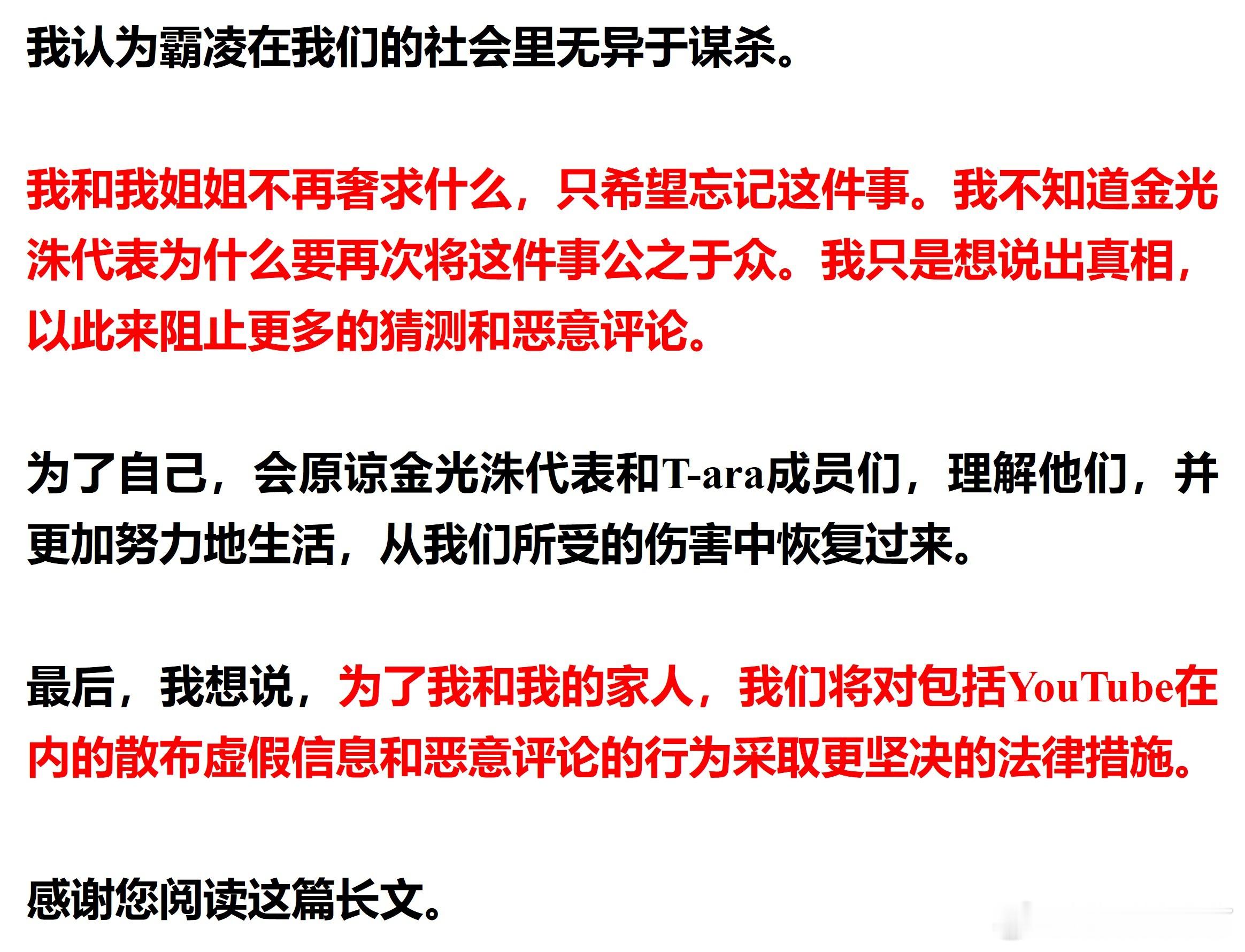 4,自己只想忘掉这件事,将对包括YouTube在内的散布虚假信息和恶意评论的行为采取更坚决的法律措施。