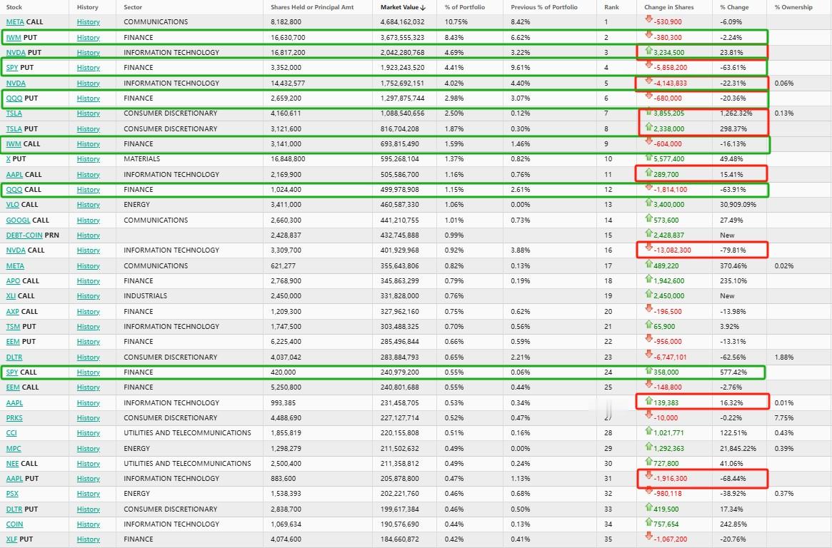 前五大卖出标的包括:SPDR标普500指数ETF看跌期权、英伟达看涨期权(NVDA.US,CALL)、美元树(DLTR.US)、高知特(CTSH.US)、纳指100ETF-InvescoQQQTrust看涨期权(QQQ.US,CALL)。