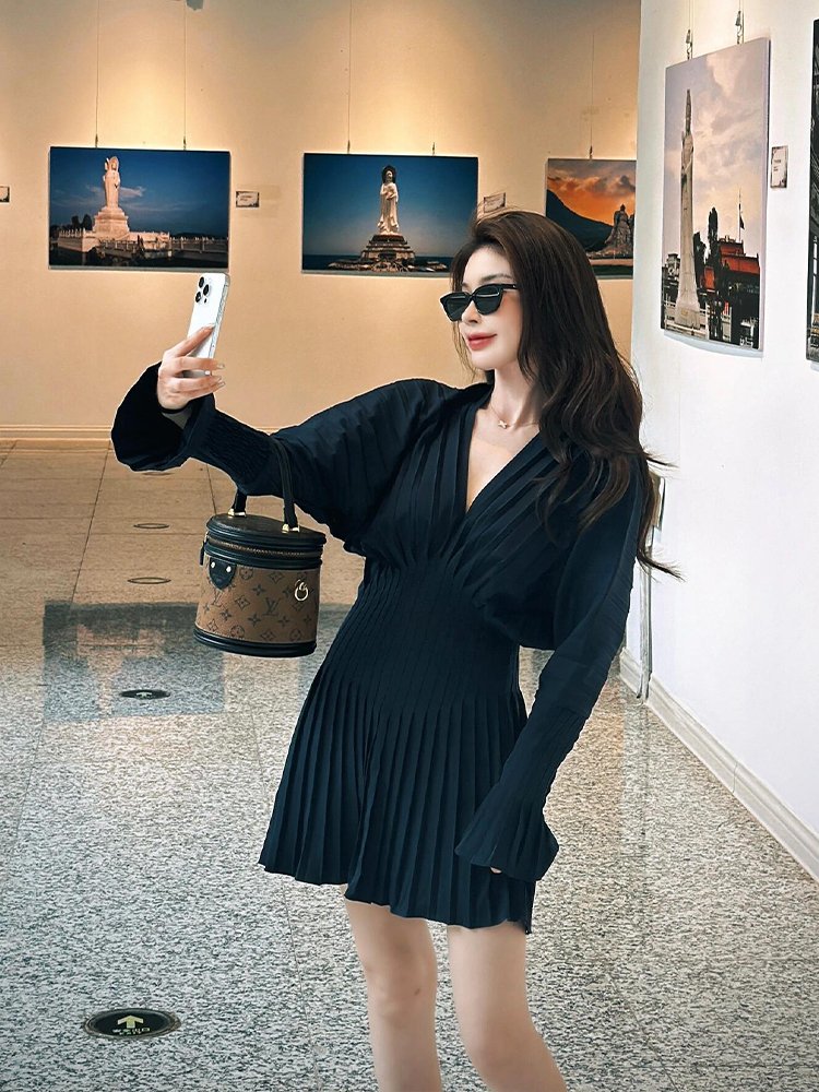 2024新款早秋韩系氛围感穿搭钓系约会小众不撞款气质长袖连衣裙女