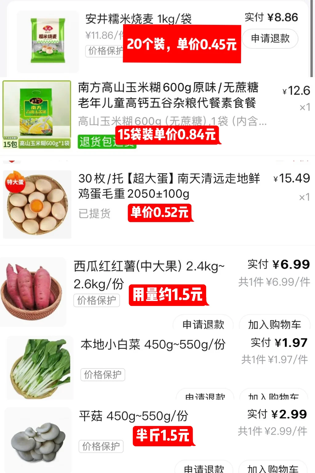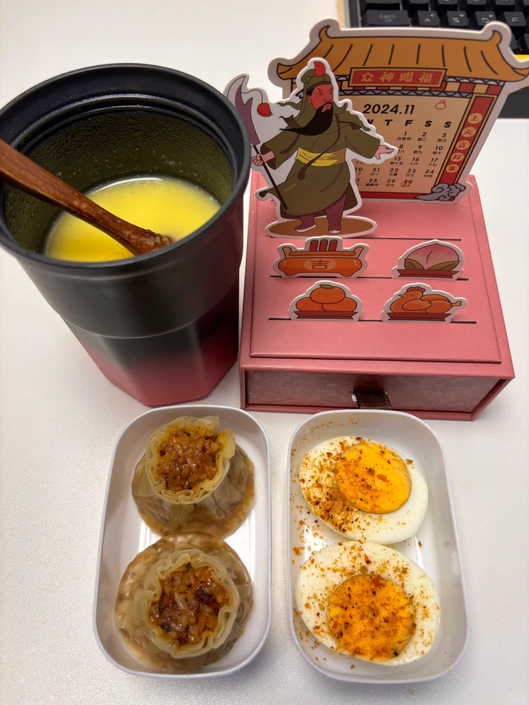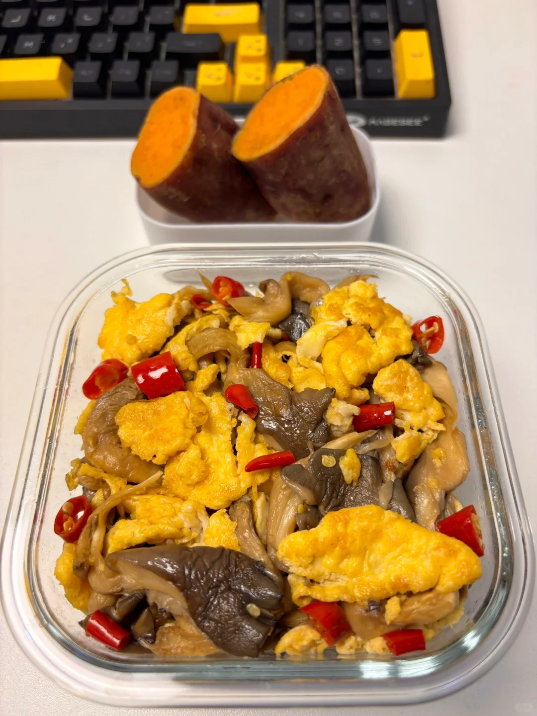 1⃣️早:烧麦、鸡蛋、玉米糊(2.3💰) 2⃣️中:五花肉炒小白菜、红薯(4.7💰) 3⃣️晚:平菇炒鸡蛋、红薯(3.3💰) 猪肉菜市场买的约2💰小米辣自己阳台种的0💰 合计:10.3💰