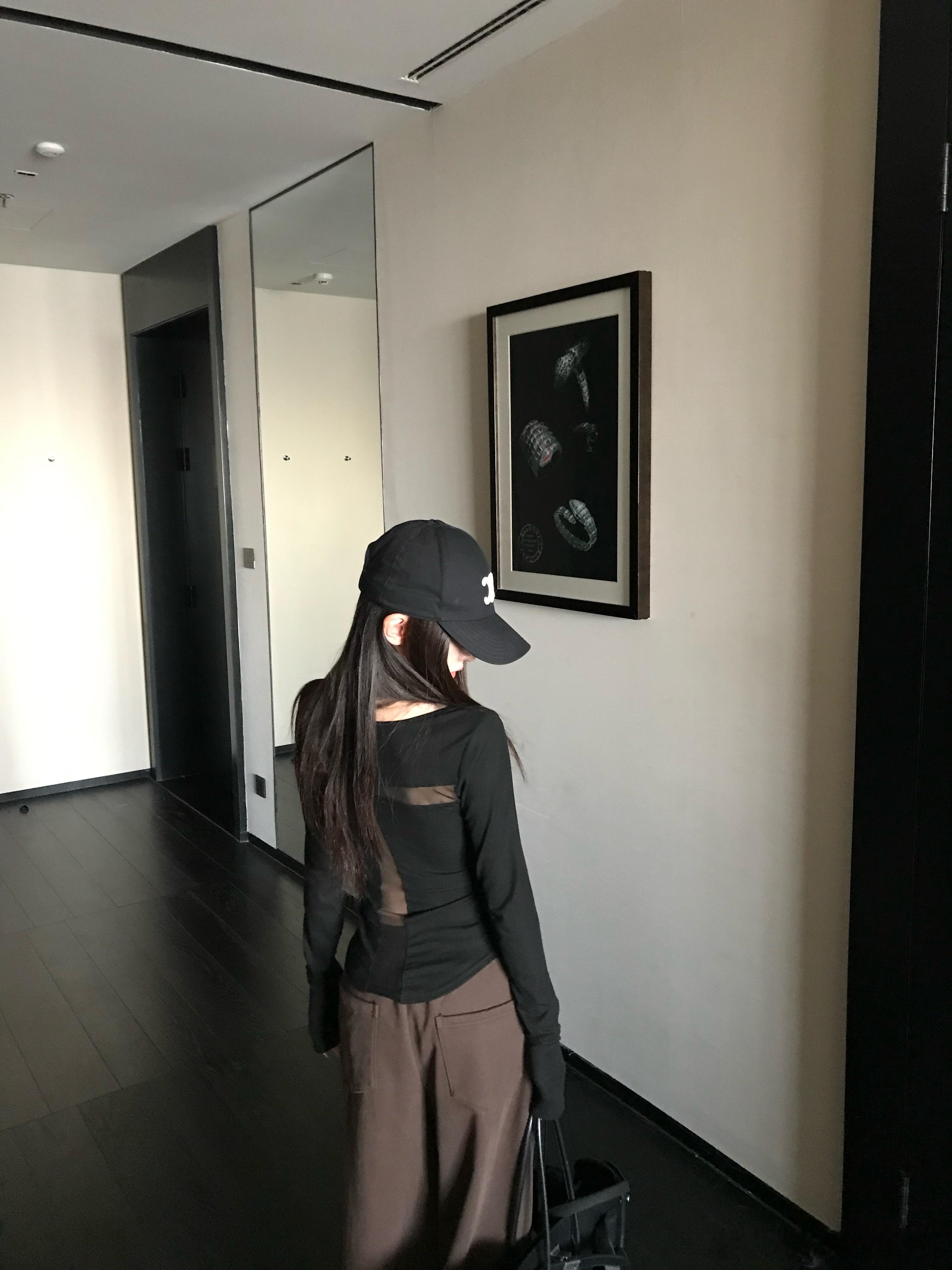 延续秋季新品的设计感天丝打底衫[酷]身后的十字架微透网纱将包裹住的肌肤若隐若现很