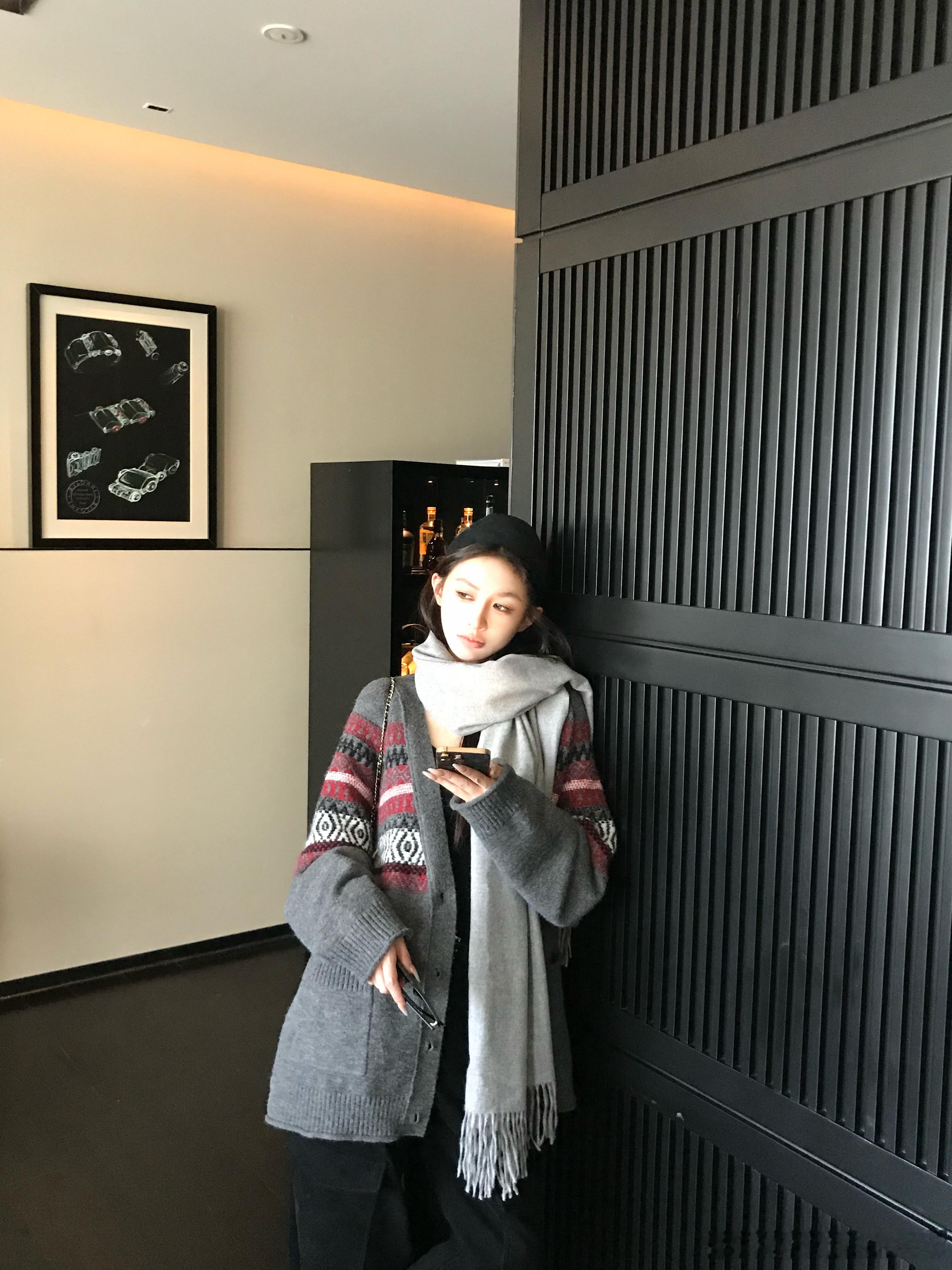 上身效果又飒又随意 慵懒的毛衣开衫简直是秋冬的绝佳单品 轻松拿捏韩女穿搭精髓