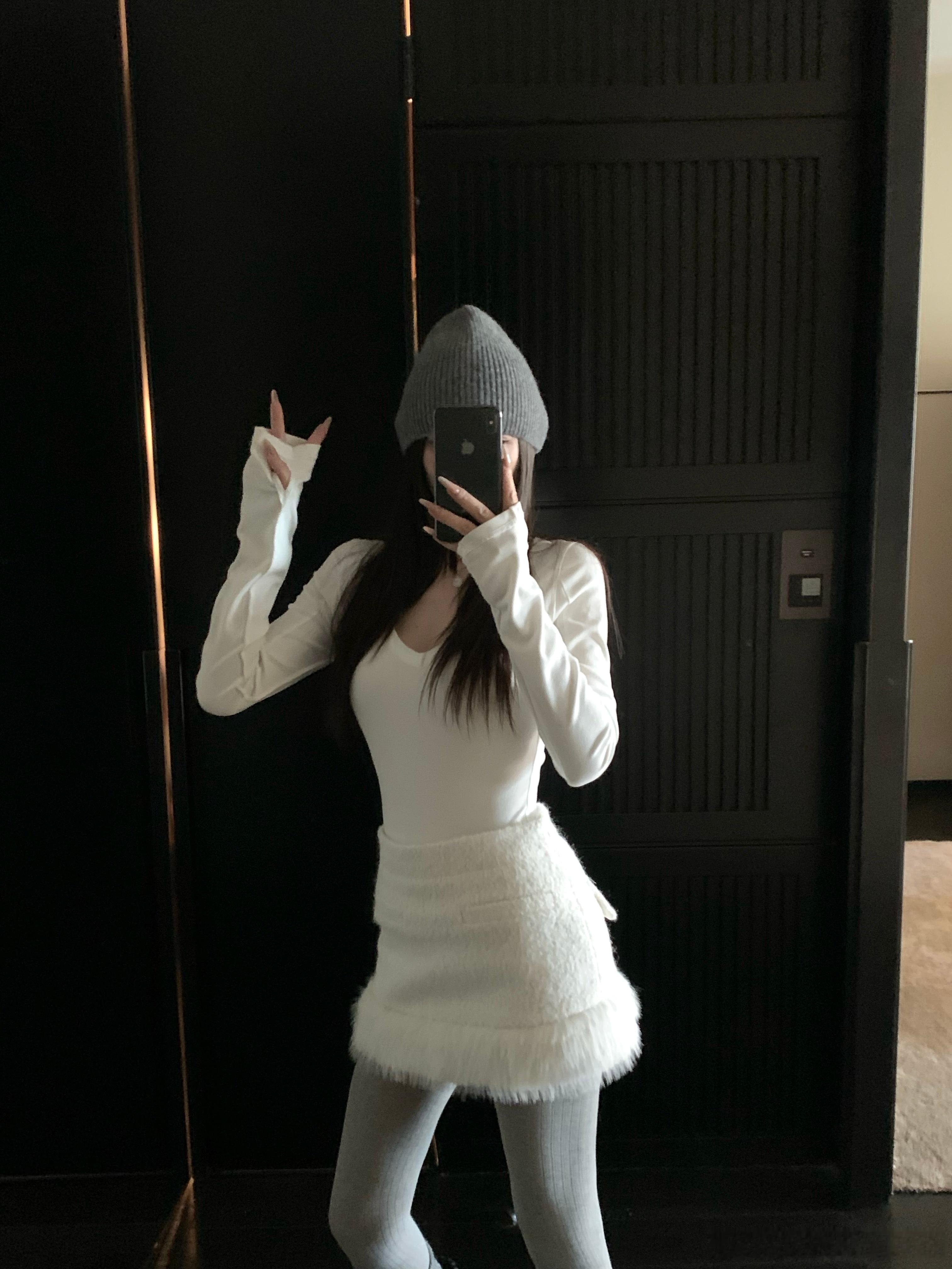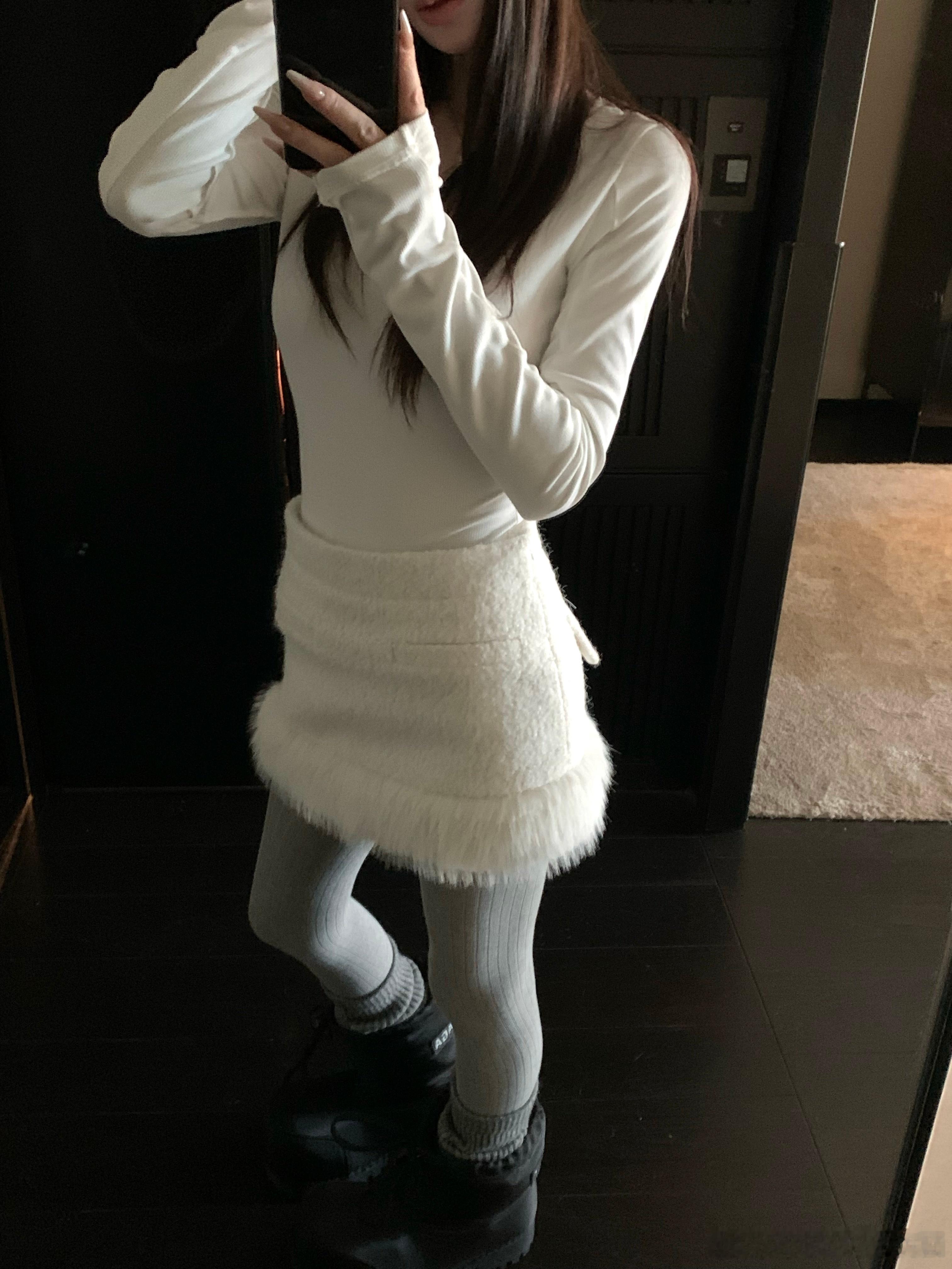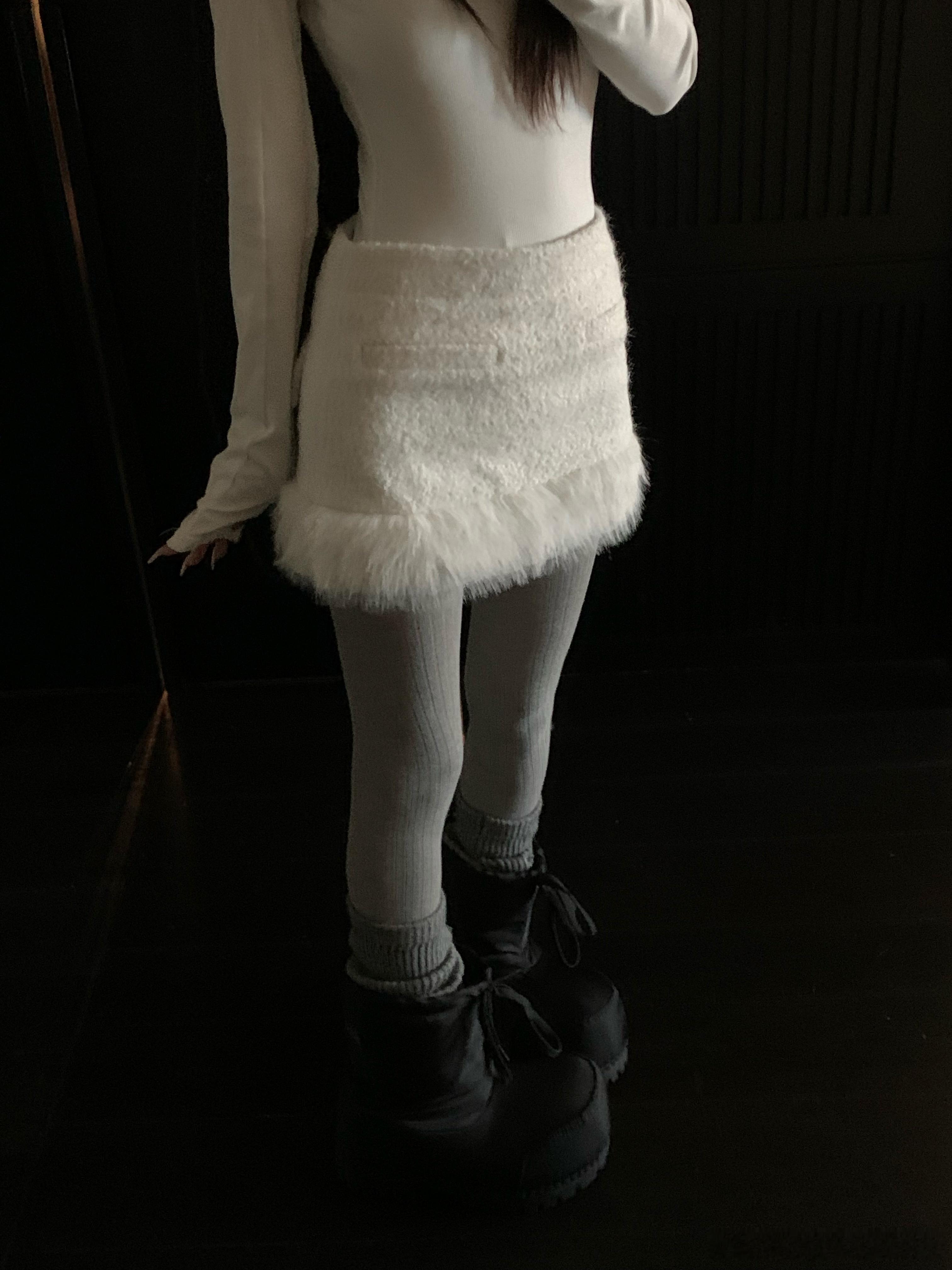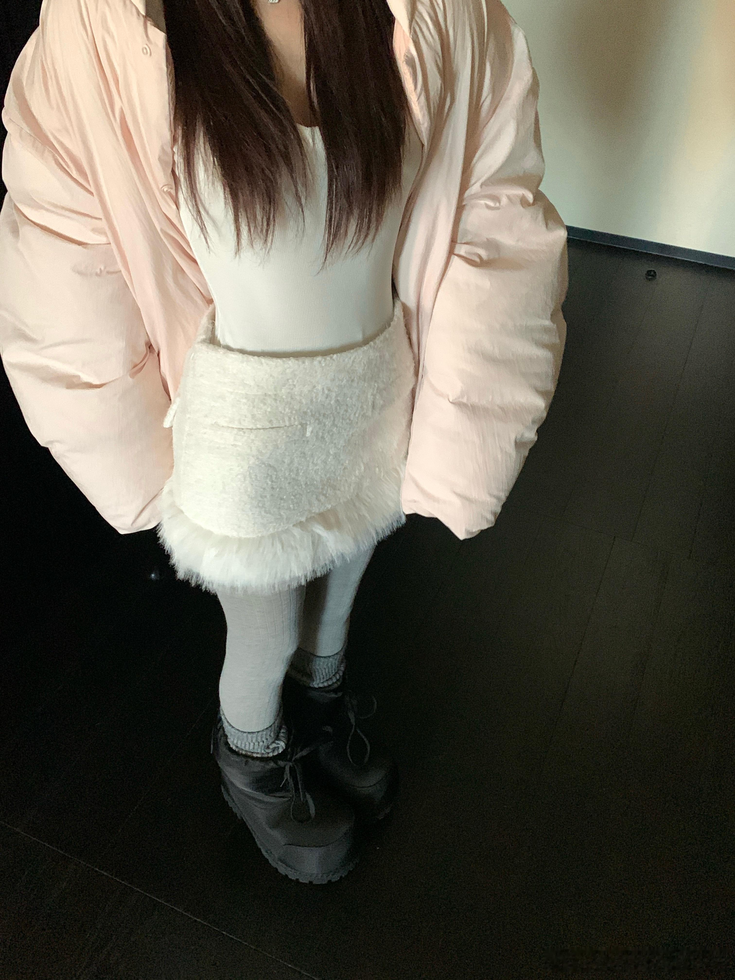 上身气质展露无疑的小香风半身裙🤍蓬松毛毛与呢料拼接碰撞 和各种外套简直就是辣妹
