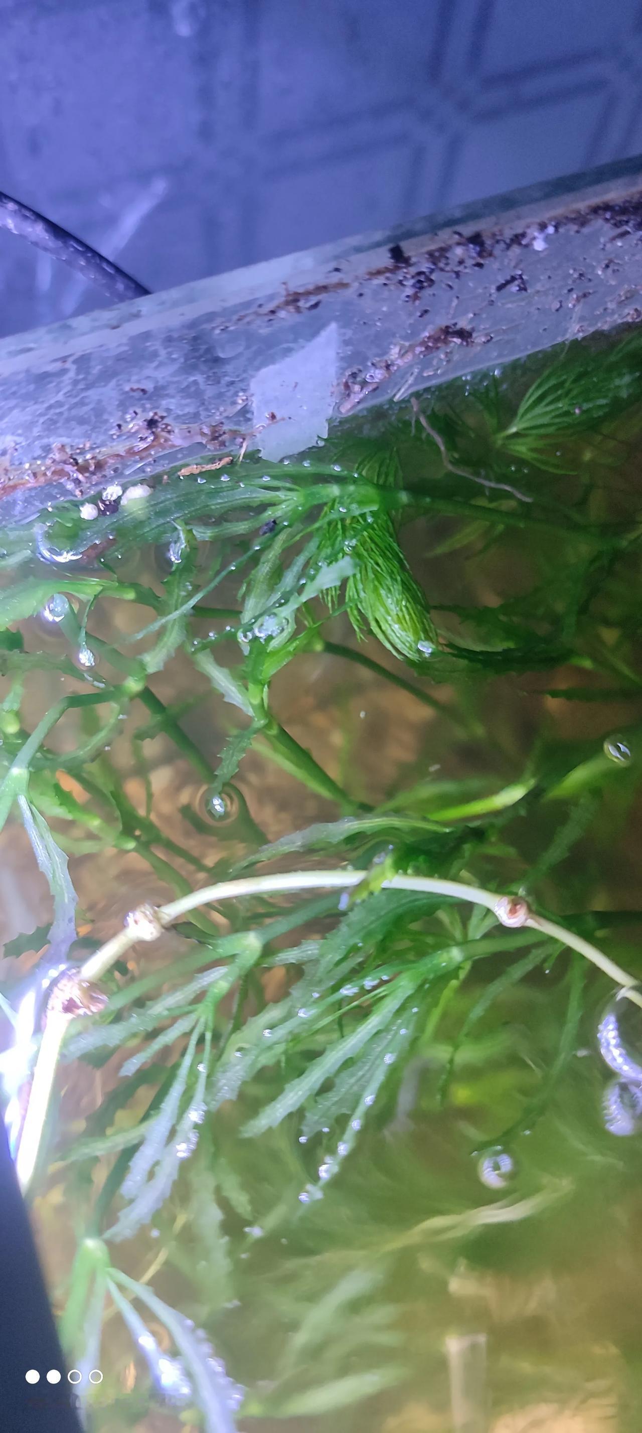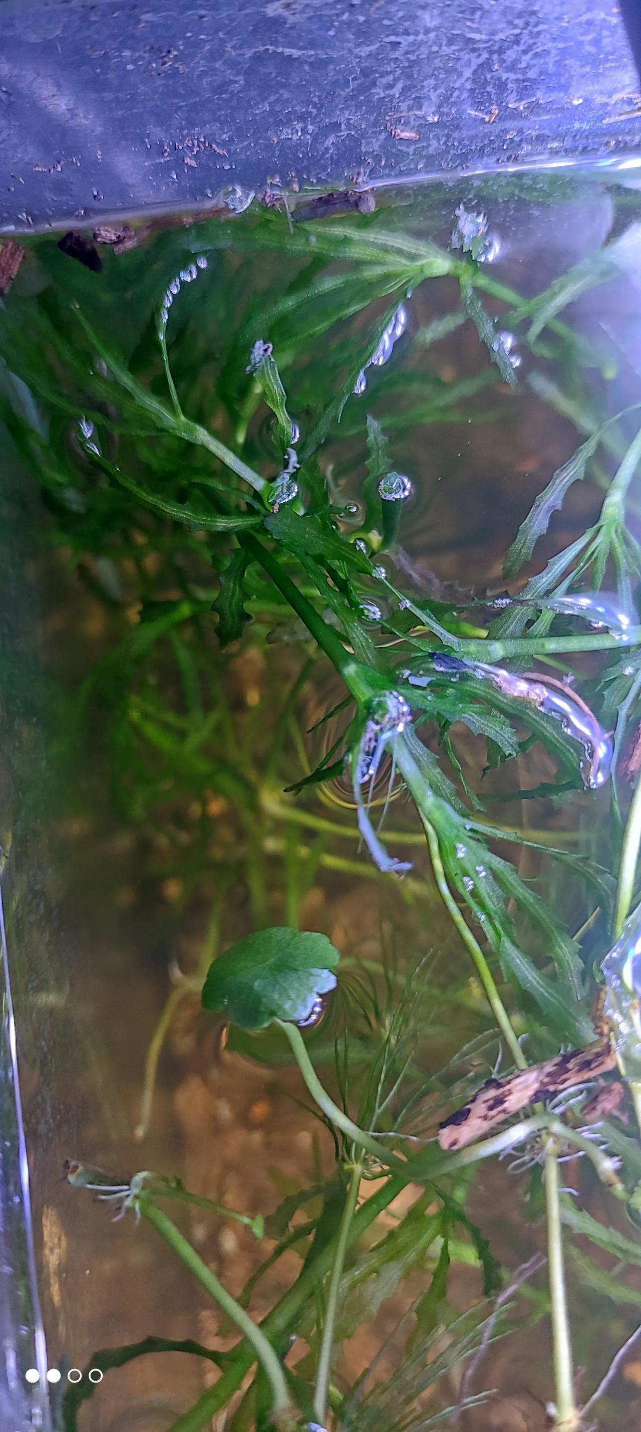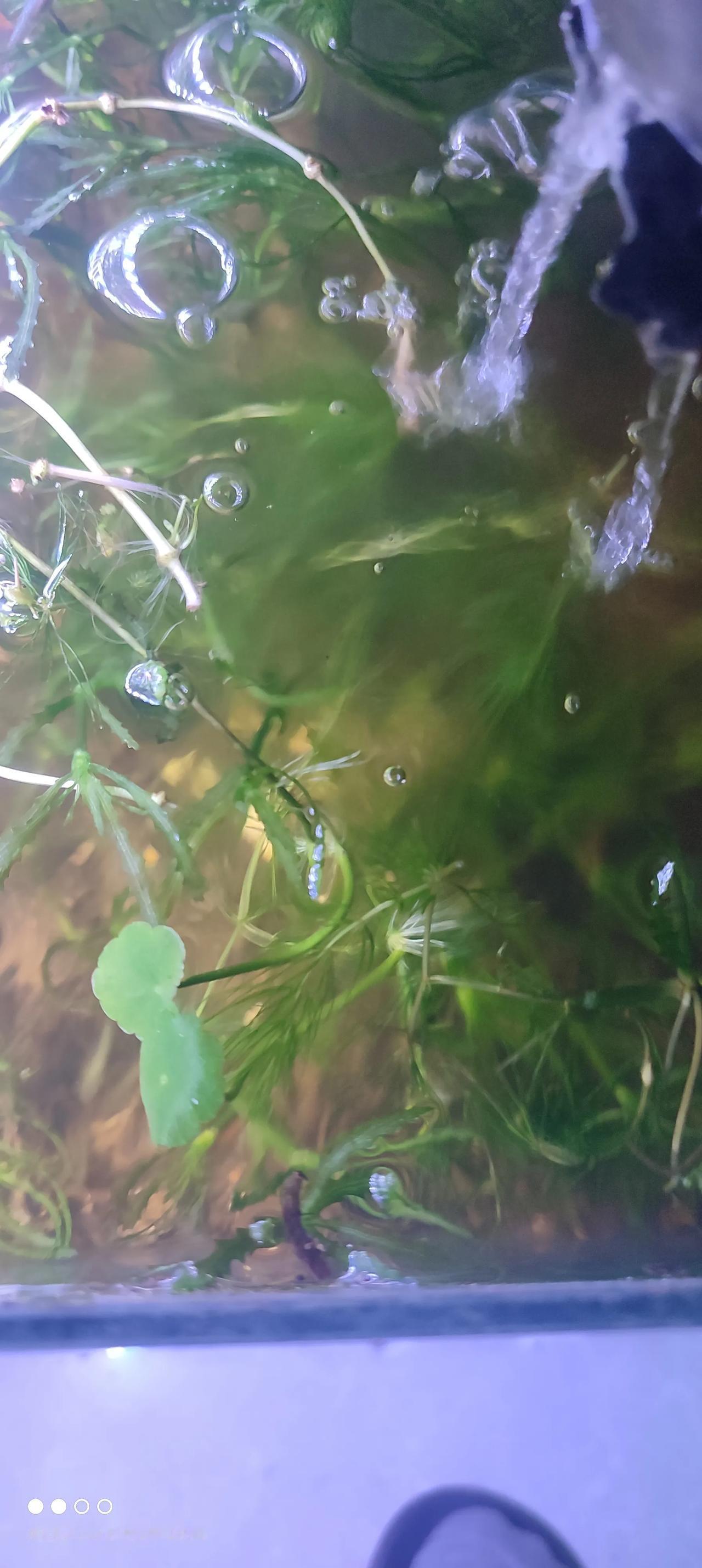 小河里抓了几只黑壳虾,顺便薅了几支水草枝,没想到几天后水草爆缸,每天晚上回家都得把新长出水面的草头剪掉,防止过于茂密坏缸。 一种水草是金鱼藻,另一种不知道叫什么名字。