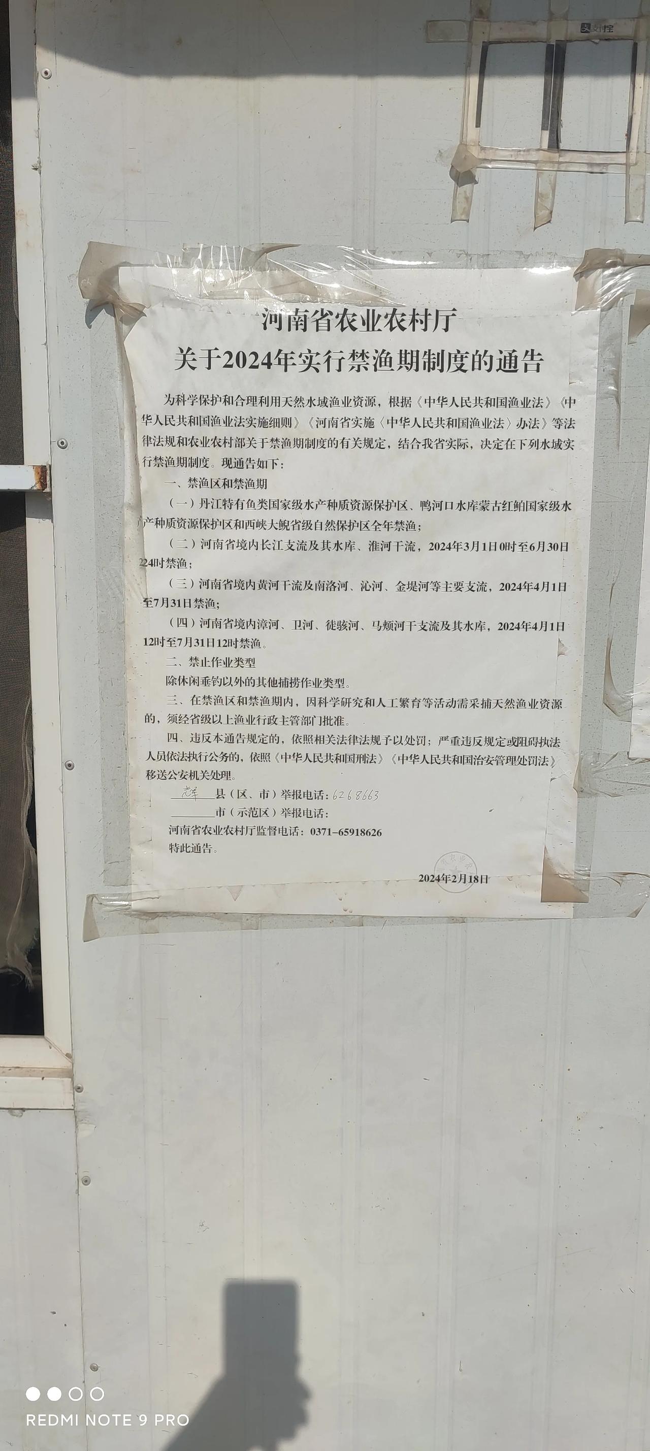 最近到共海湿地公园钓鱼,往往空军而回。钓鱼人也就聊聊数人。通过聊天得知,这两年共海捕鱼的人太多了,粘网,拖网,地龙,迷魂阵,无所不用其极,近段时间甚至开始有人药鱼。 我在网络上查“辉县休渔”,仅查到一张宣传照片,后来在一处游船乘坐处,找到了一张公告。公告中的举报电话是6268663,希望在共海湿地游玩的,发现有人违法捕鱼的及时举报。同时也希望农业执法部门到现场管理一下。