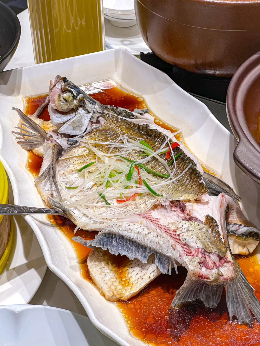 应该是武汉最爱的一家老字号了 主打一个好吃分量足 装修风格都很大气 卡座包间都特别宽敞 确实是一个聚会宴请的好地方 今年的团年饭就安排在这了! 大中华清蒸武昌鱼 他们家的一绝武昌鱼🐟 一整条分量真的巨扎实! 肉质鲜嫩可口,不需要过多调味 吃的就是一个新鲜[爱吃] 洪湖菱角烧鸭 湖北特色菱角烧鸭子真的巨好吃 是那种微辣的口味 酱汁特别浓郁 鸭肉很紧实,下饭一把好手 中华红烧肉 真的拒绝不了浓油赤酱的红烧肉 微甜的口味特别喜欢 还搭配了鹌鹑蛋 一口下去香迷糊了!