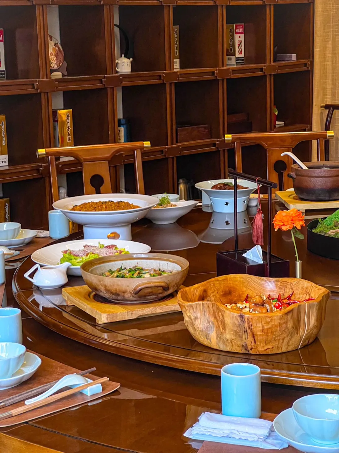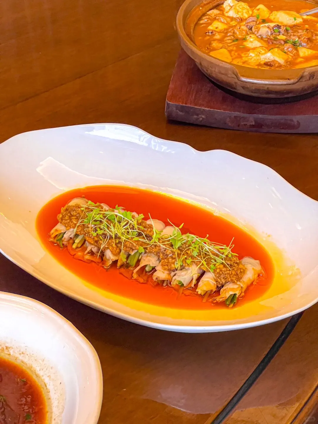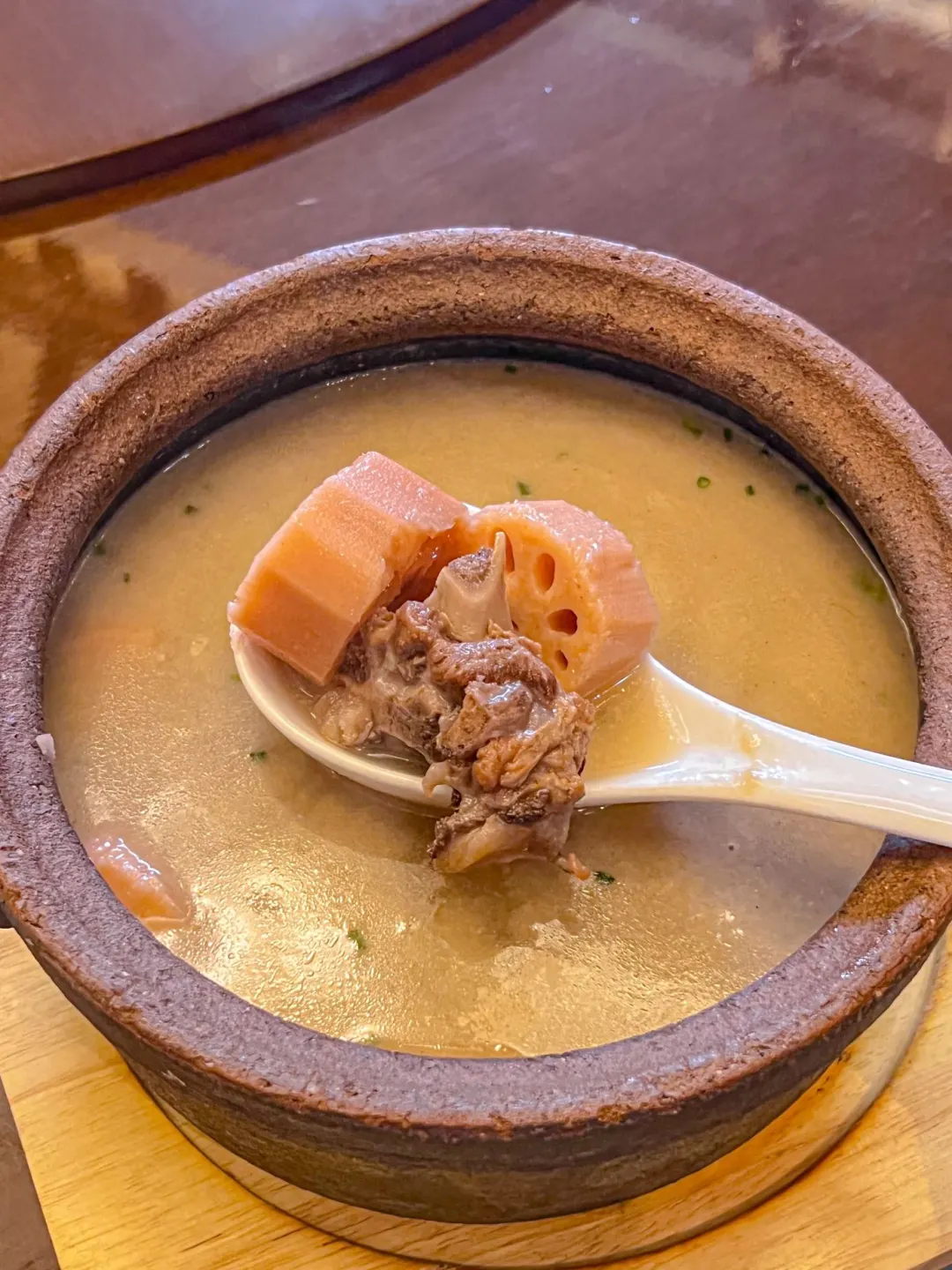 应该是光谷天地最好的宴请地了 位于北辰光谷里的藏娇广府 古风的装修氛围特别有意境 卡座宽敞,包房大气 服务也是让人有宾至如归的感觉 确实是一个多人聚会好地方! 生啫清远鸡 武汉也能吃到这么地道的广式风味 清远鸡的品质很不错 搭配啫啫煲的做法真的绝 鸡肉鲜嫩多汁,清淡又很有味道[爱吃] 罗氏虾拼烧臭豆腐 饱满的罗氏虾🦐搭配臭豆腐 满满一层酱汁特别有食欲 虾肉鲜甜Q弹 臭豆腐吸收了汤汁也特别入味! 筒子骨洪湖藕汤 大块的筒子骨搭配粉藕 炖出来的汤那叫一个鲜 排骨肉很扎实 来一碗藕汤泡饭就很舒服!