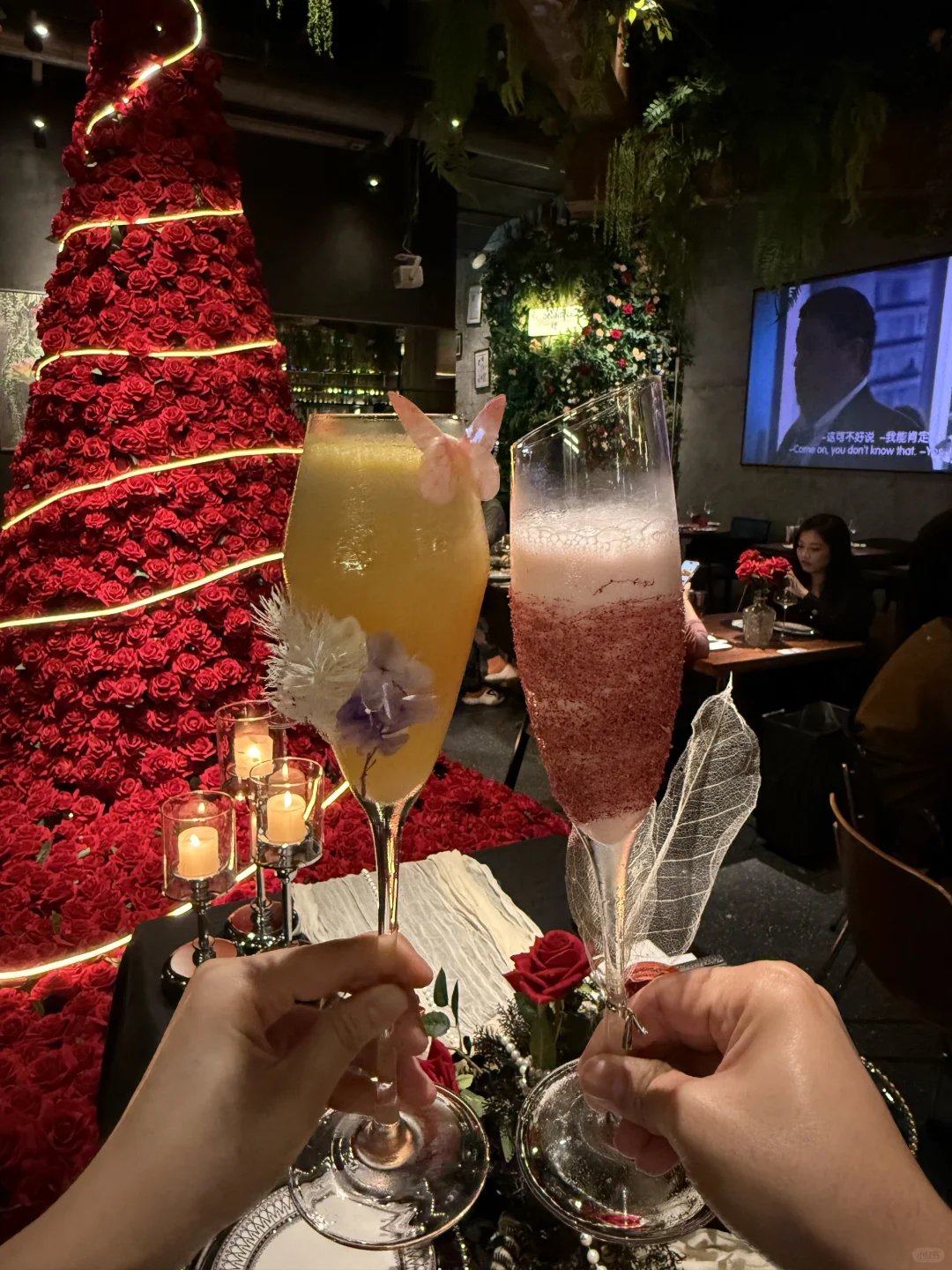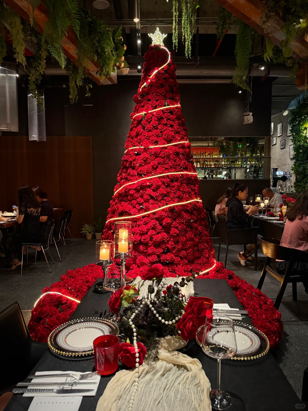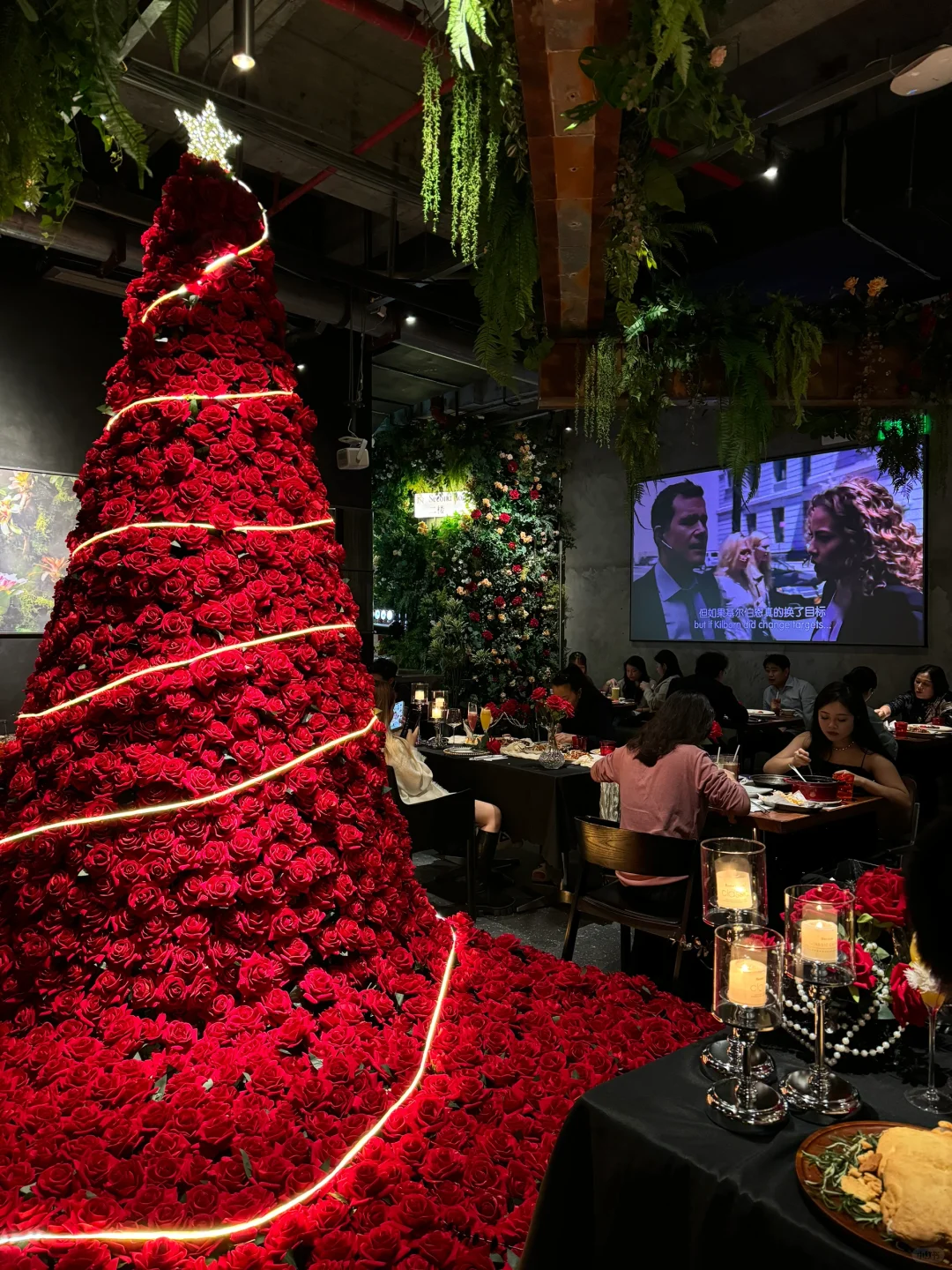 巨型玫瑰花圣诞树!!!也太浪漫了💕 花小钱吃大餐嘿嘿😁提前把圣诞照拍了