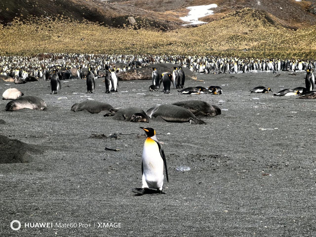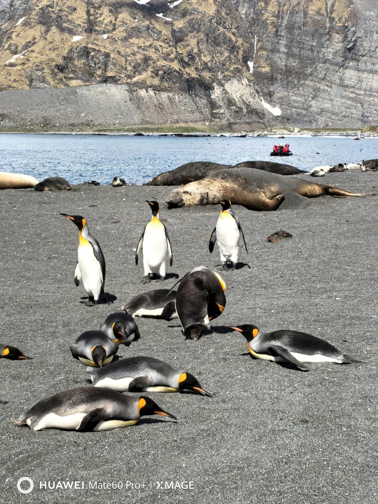 20241122上午登陆南乔治亚岛,看巨大象海豹、海豹、王企鹅等,南极游仿佛到了人生的高潮……,到了王企鹅王国,太多了,还有白眉企鹅。王企鹅和我们家鹅差不多大,比澳大利亚企鹅、南非企鹅、加岛企鹅都大一些,这三种和我们鸭子差不多大。
