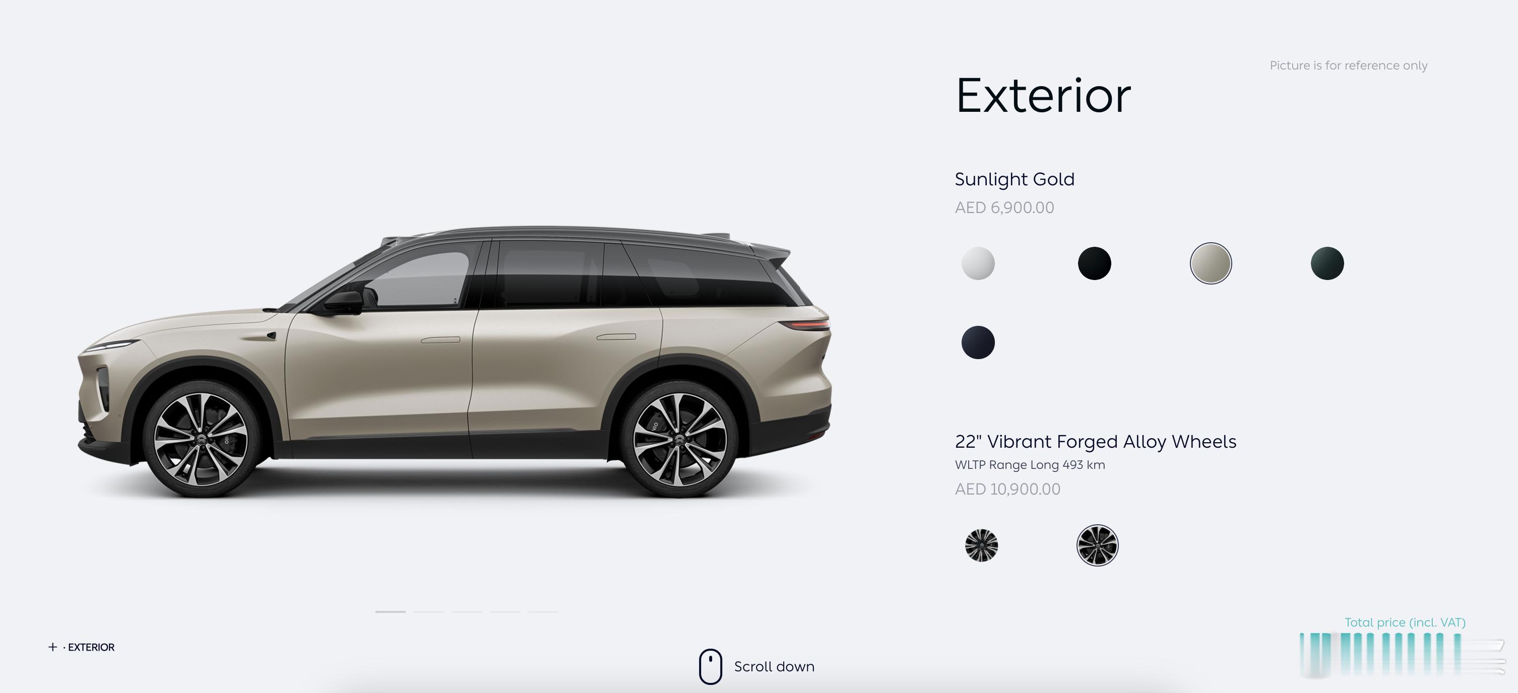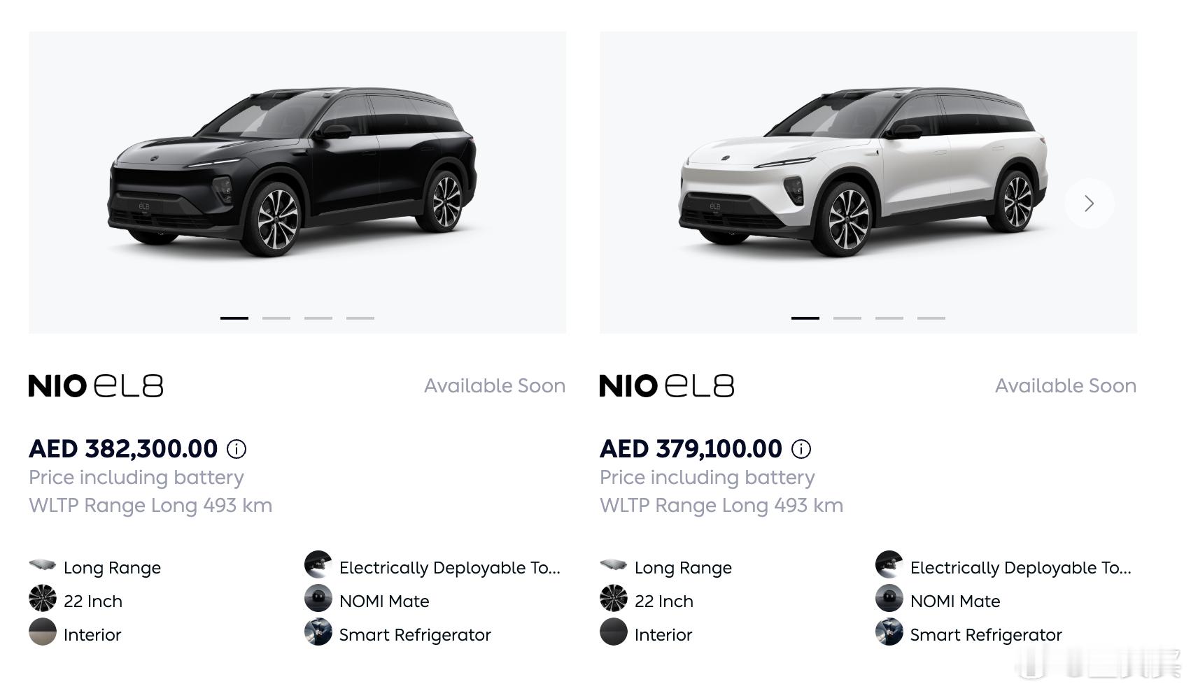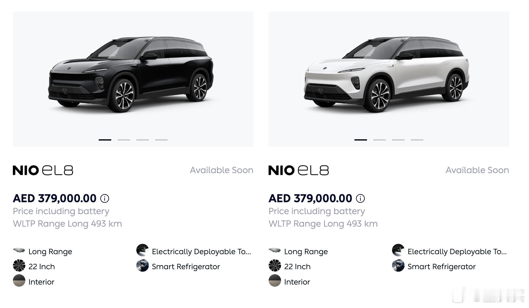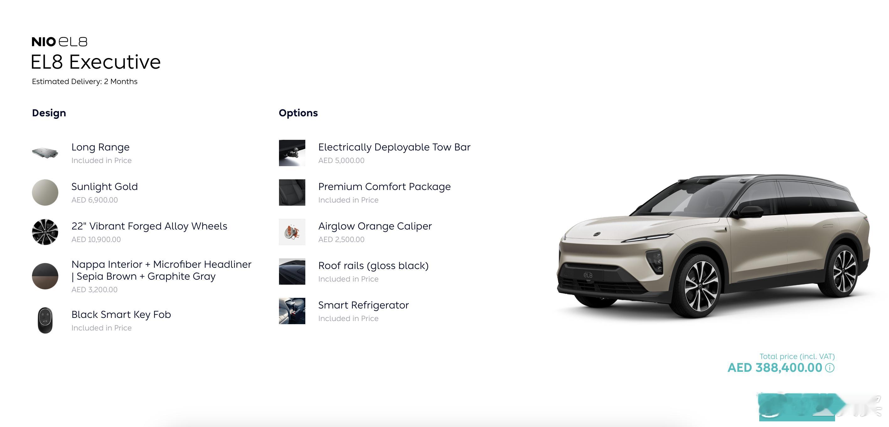 NIO EL8(ES8)在阿联酋的定价以及配置价格: