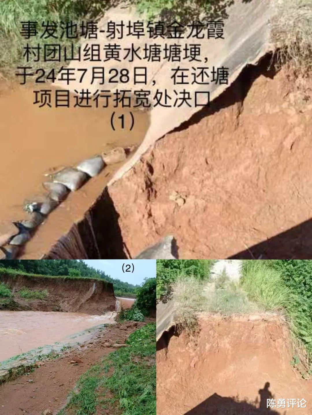 其三是2024年7月28日,新修才五年,号称防渗保安的塘堤在拓宽处决口,半年后才得以修复,但依然没有对路面进行铺装、设置警示标志,安全防范措施。