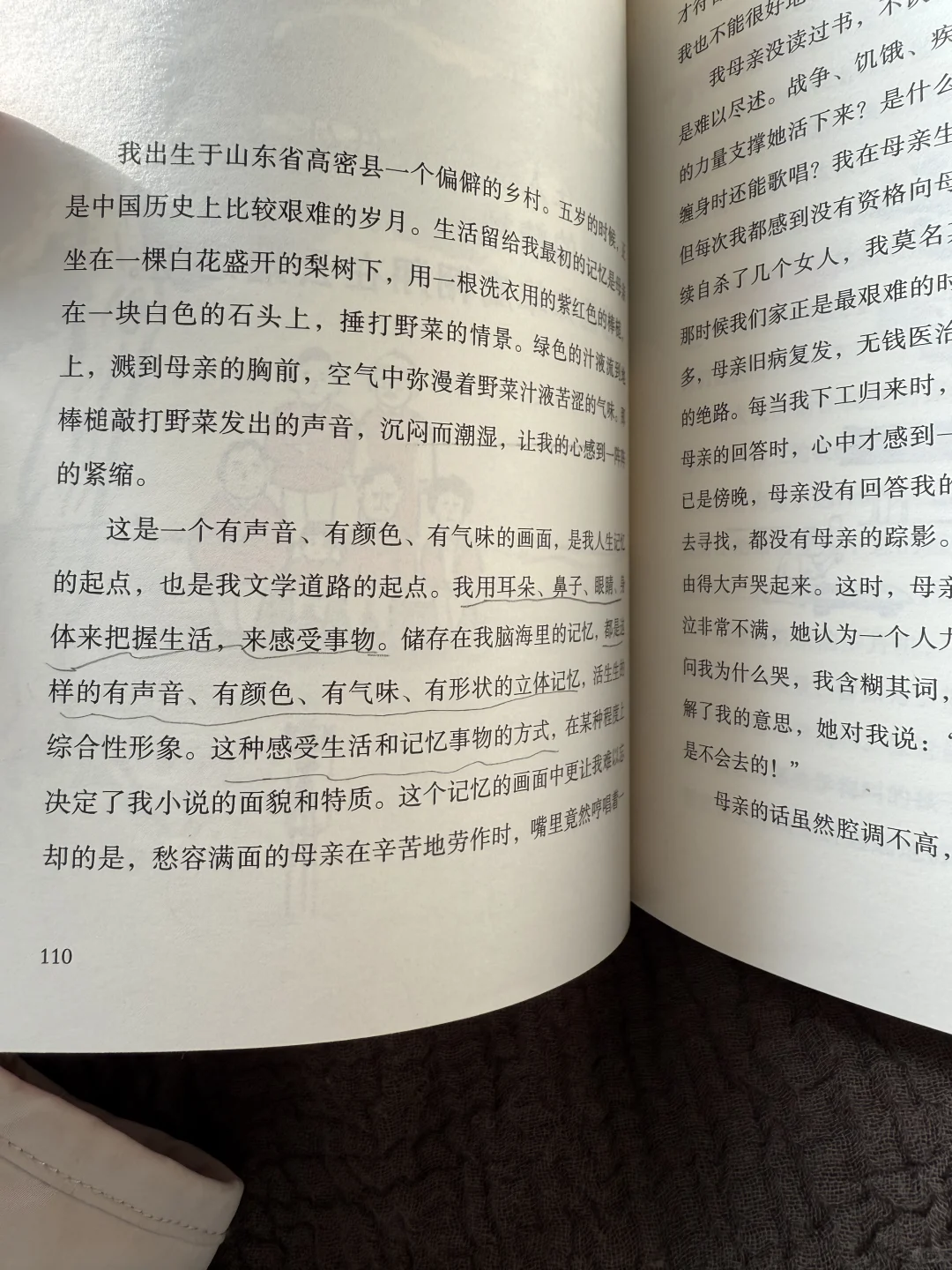 “我用耳朵、鼻子、眼睛、身体来把握生活,来感受事物。这种感受事物的方式,在某种程度上决定了我小说的面貌与特质。”