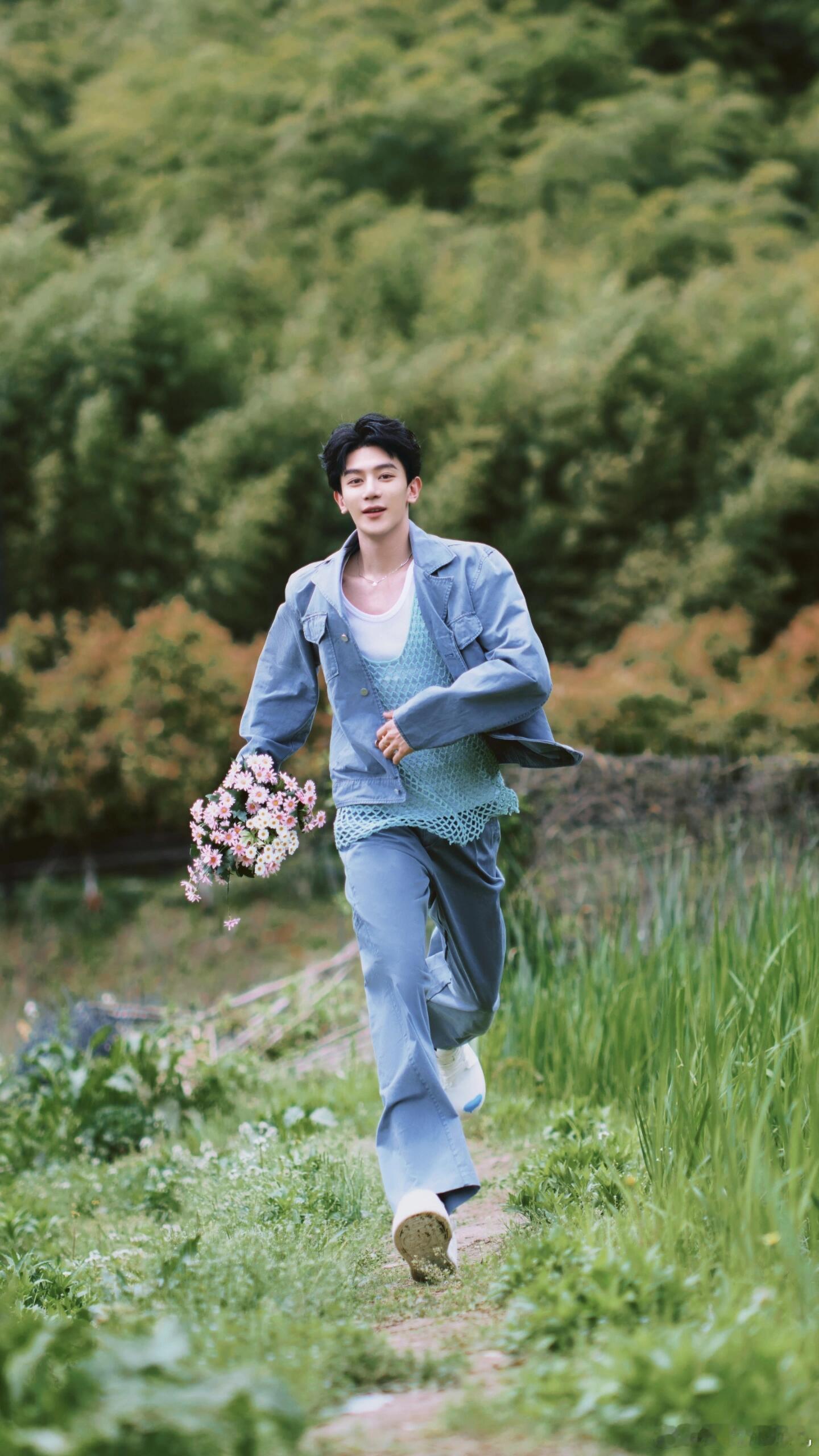 夏之光[超话] 超喜欢这组图片,拿着花跑过来真的很明媚,阳光大男孩诶,这一身也