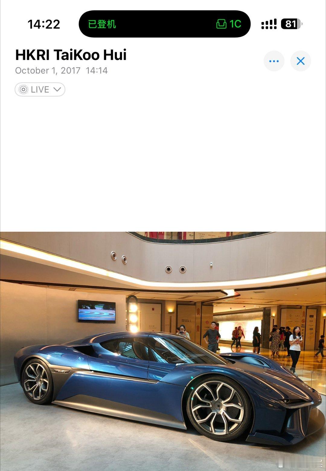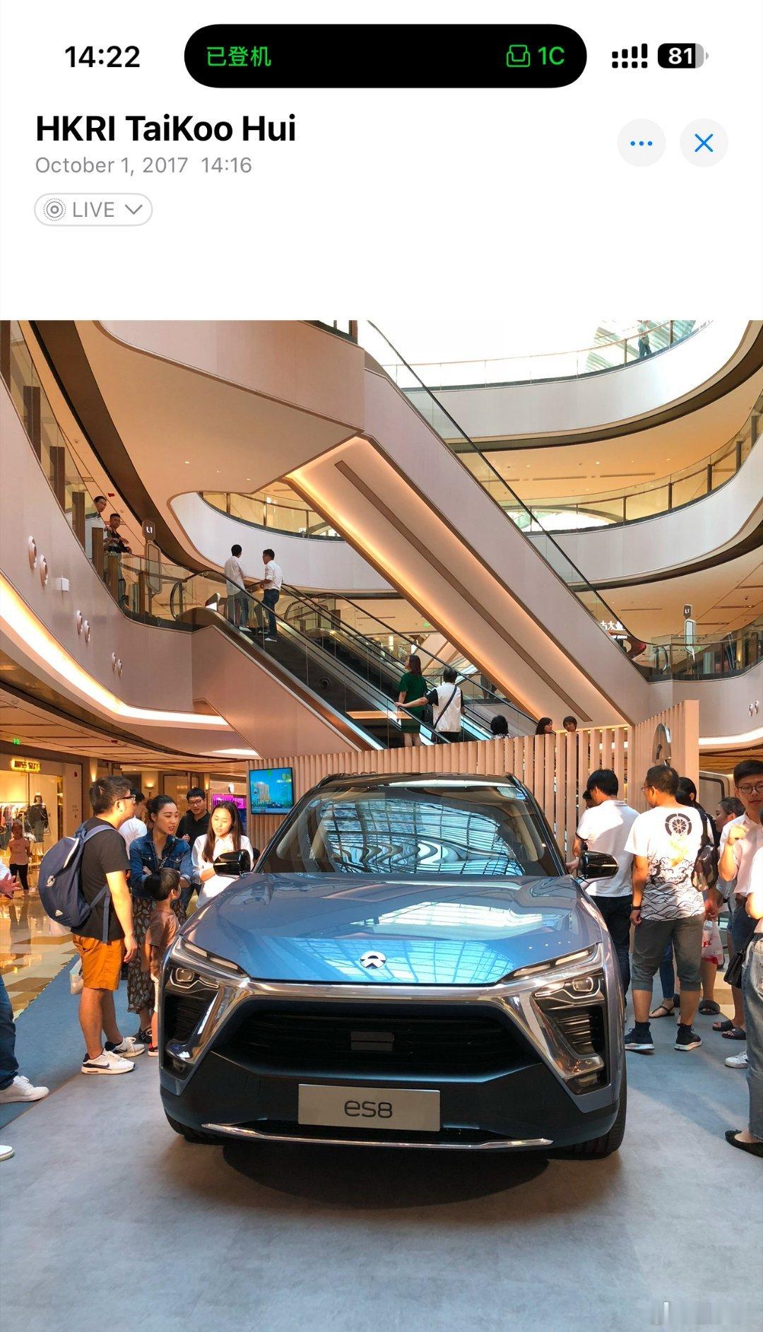 第一次见NIO是2017年10月1号,当时我已经是特斯拉车主啦,因为太古汇买的车,所以在太古汇有一个高级会员,可以免费停车,我就经常去这。