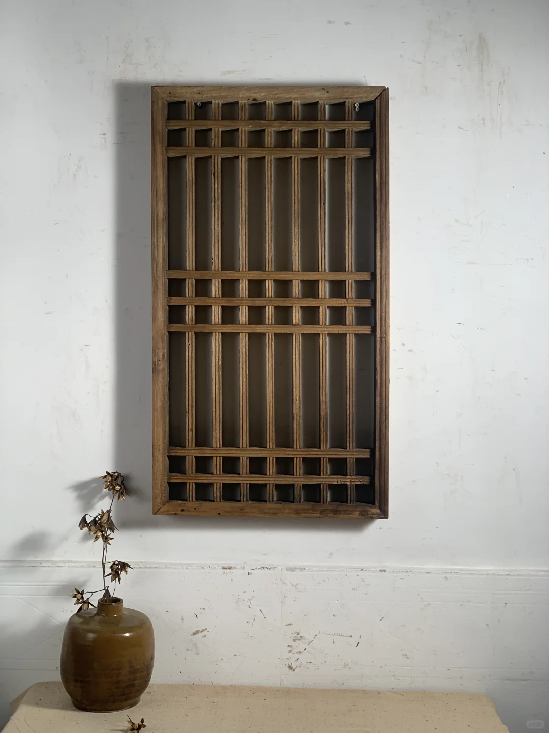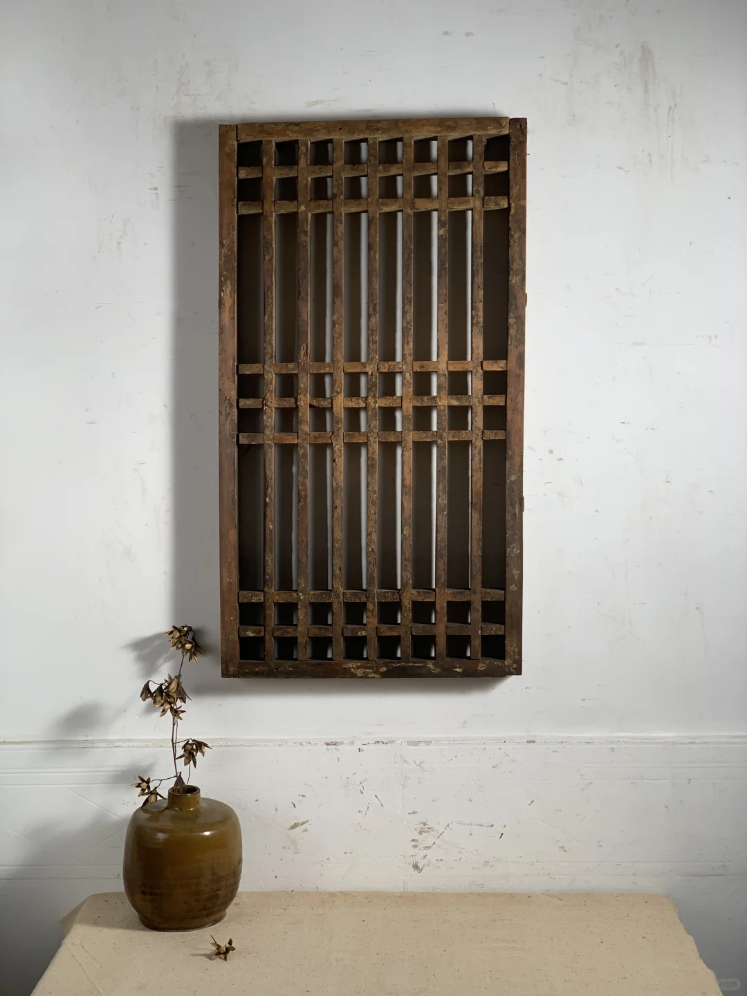 老窗花,窗格、屏风;摄影造景道,民宿、茶室极简侘寂摆件壁挂;90*43*5厘米厚。