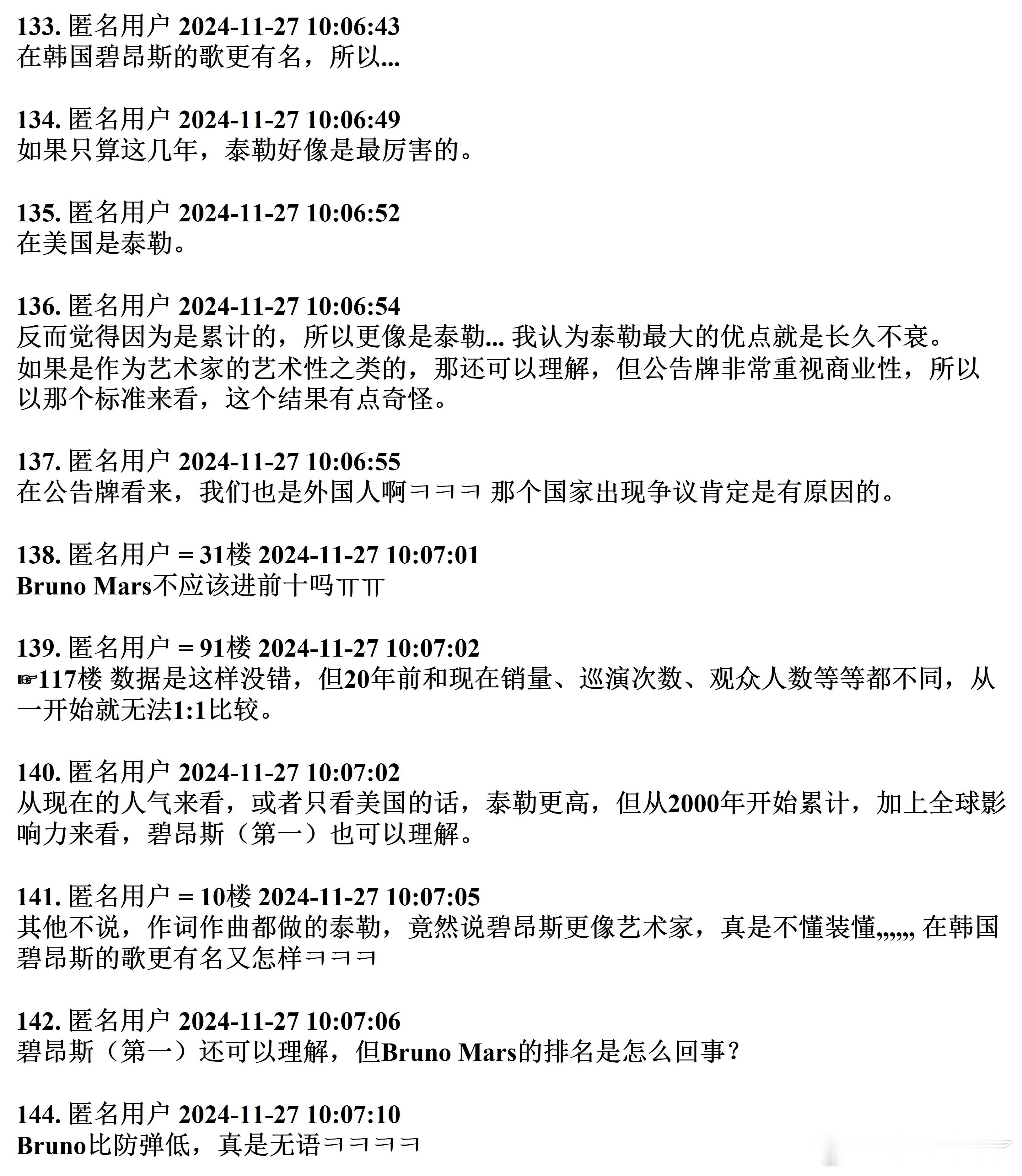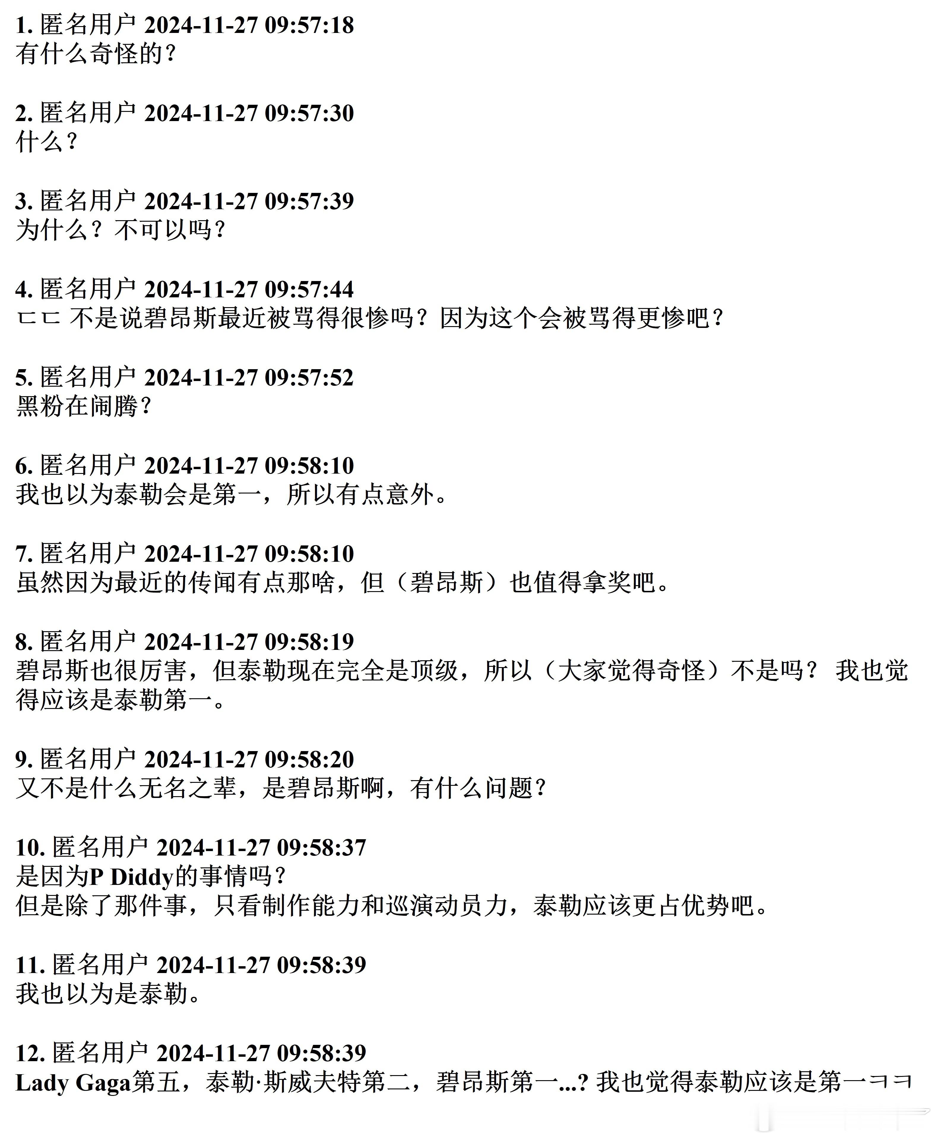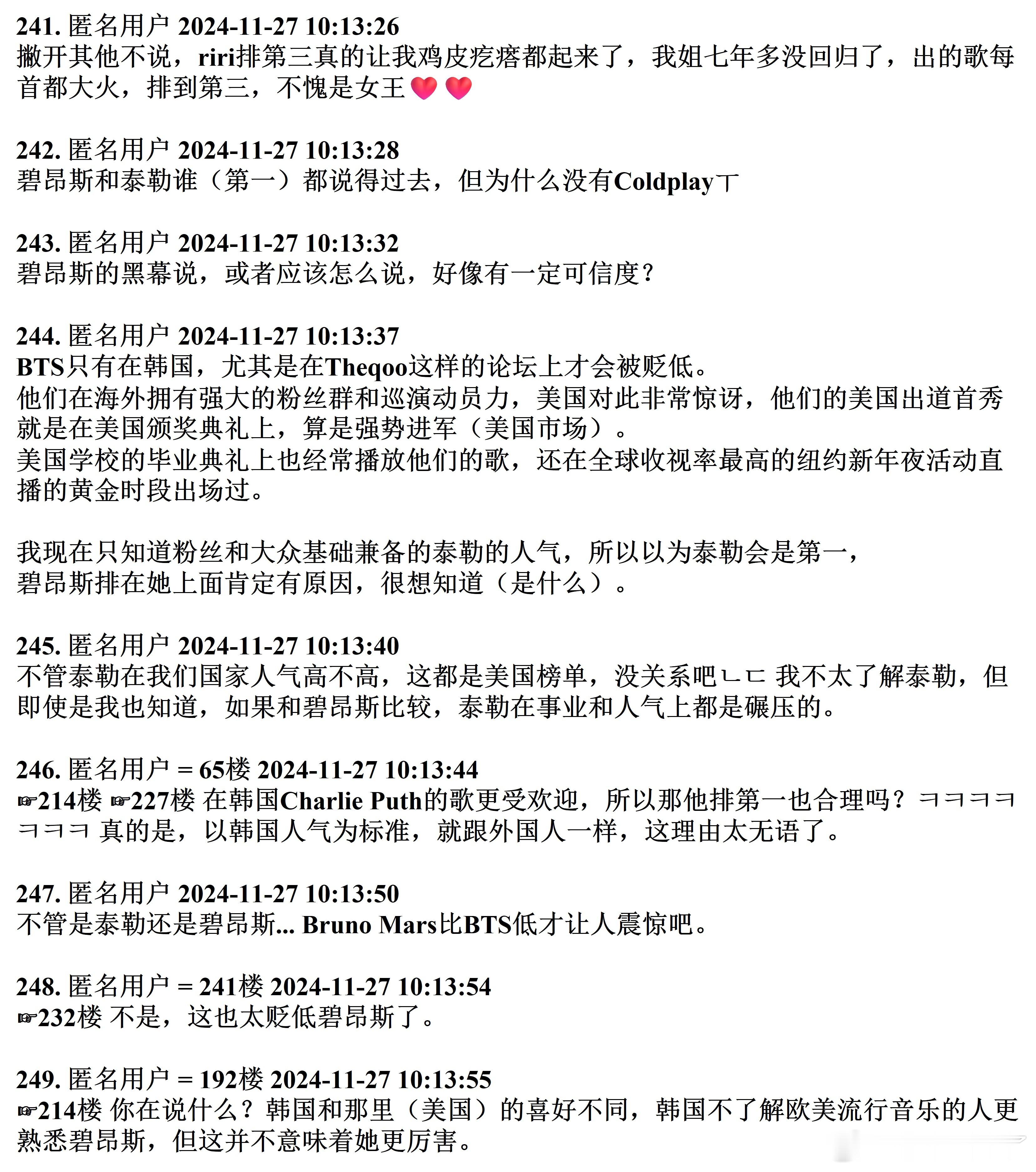 原楼主说因为泰勒第二,碧昂斯第一,外网吵起来了