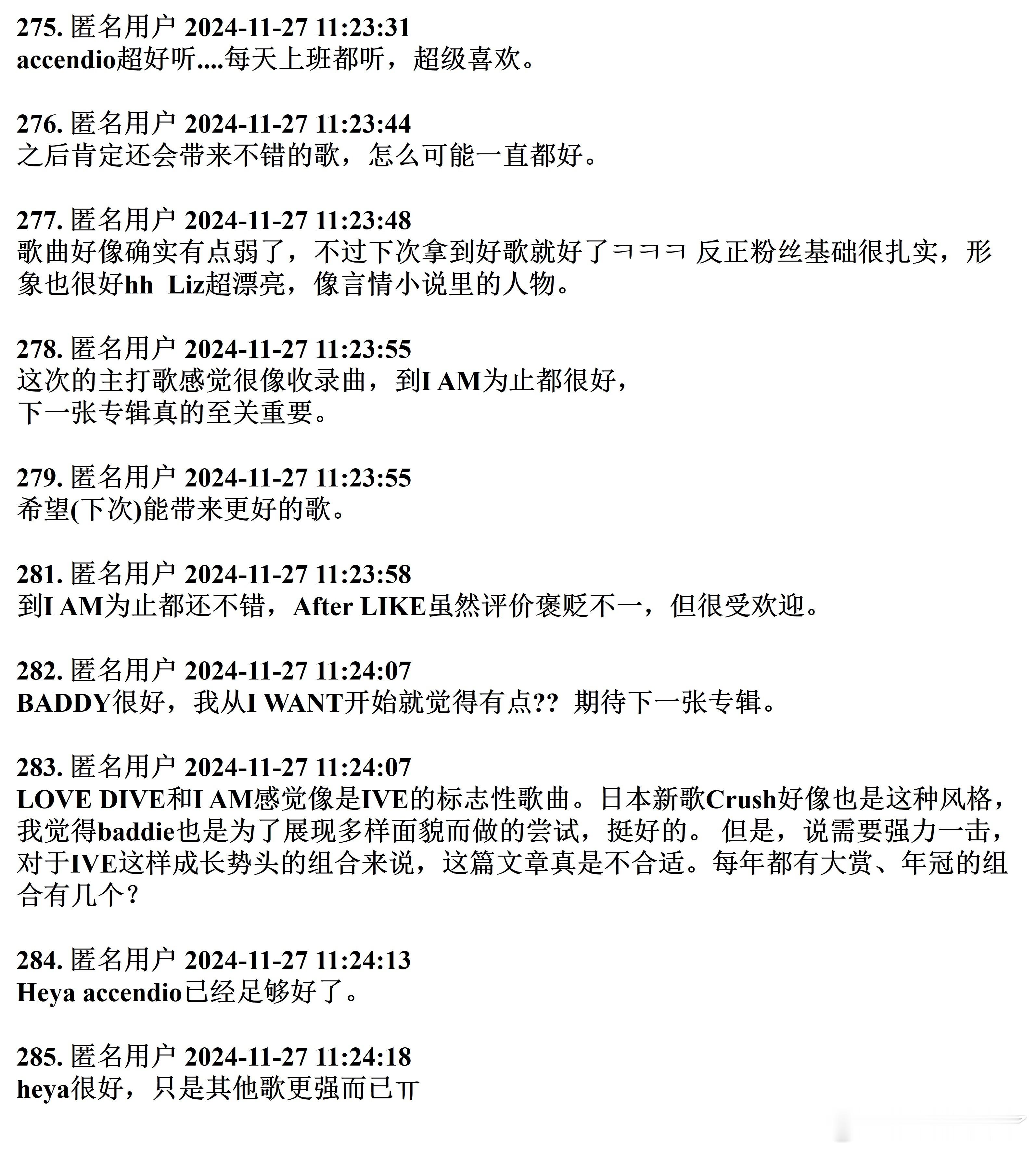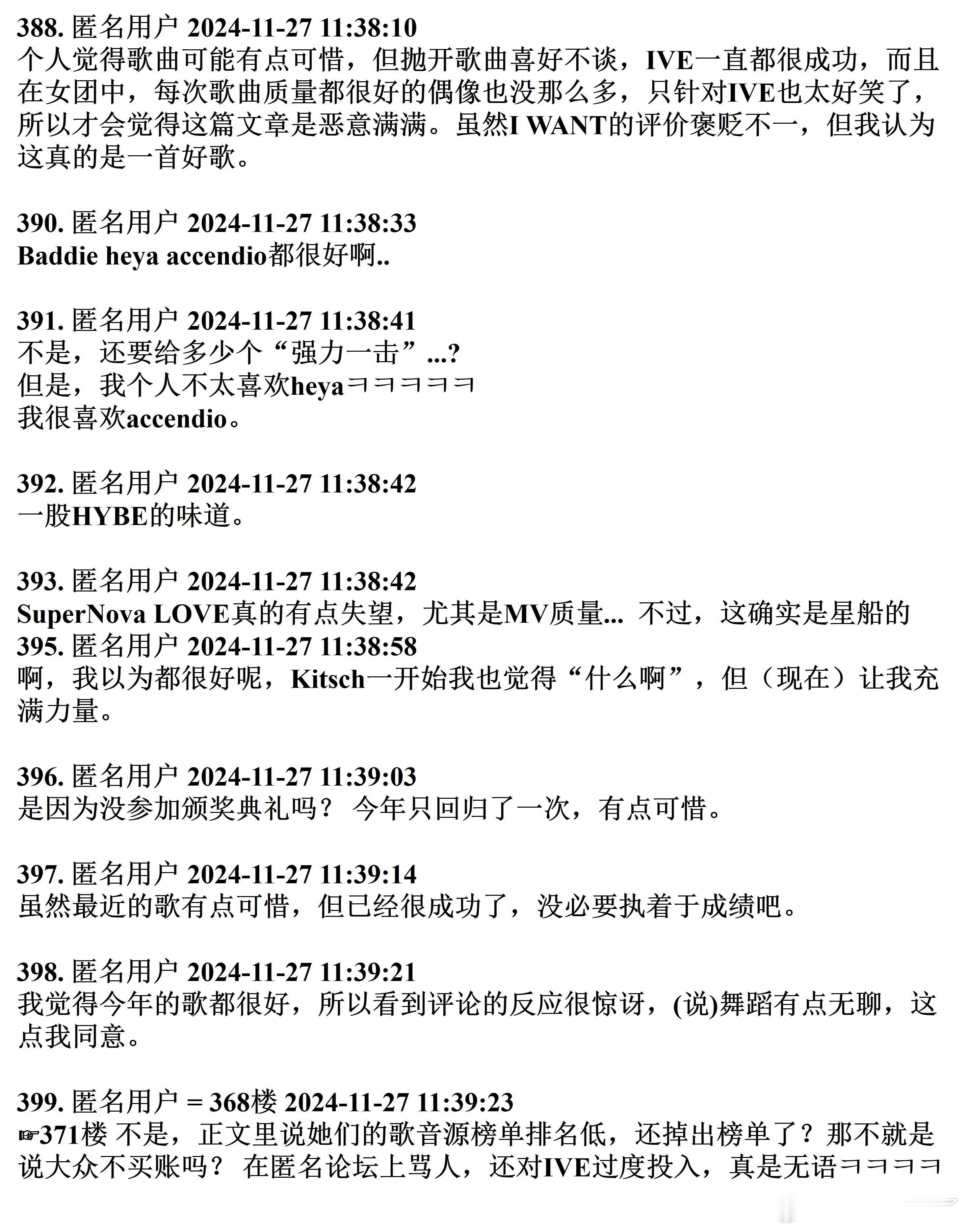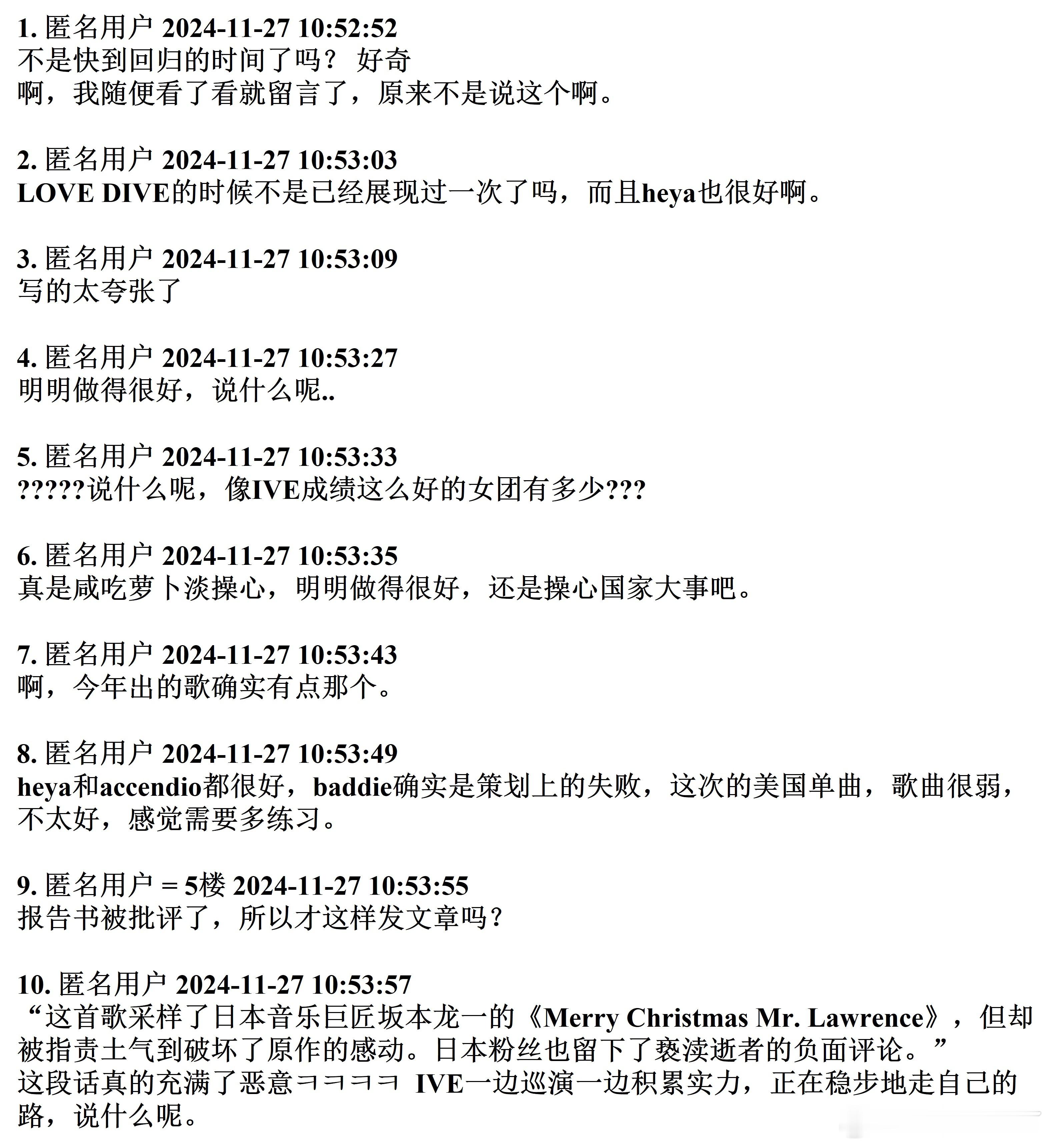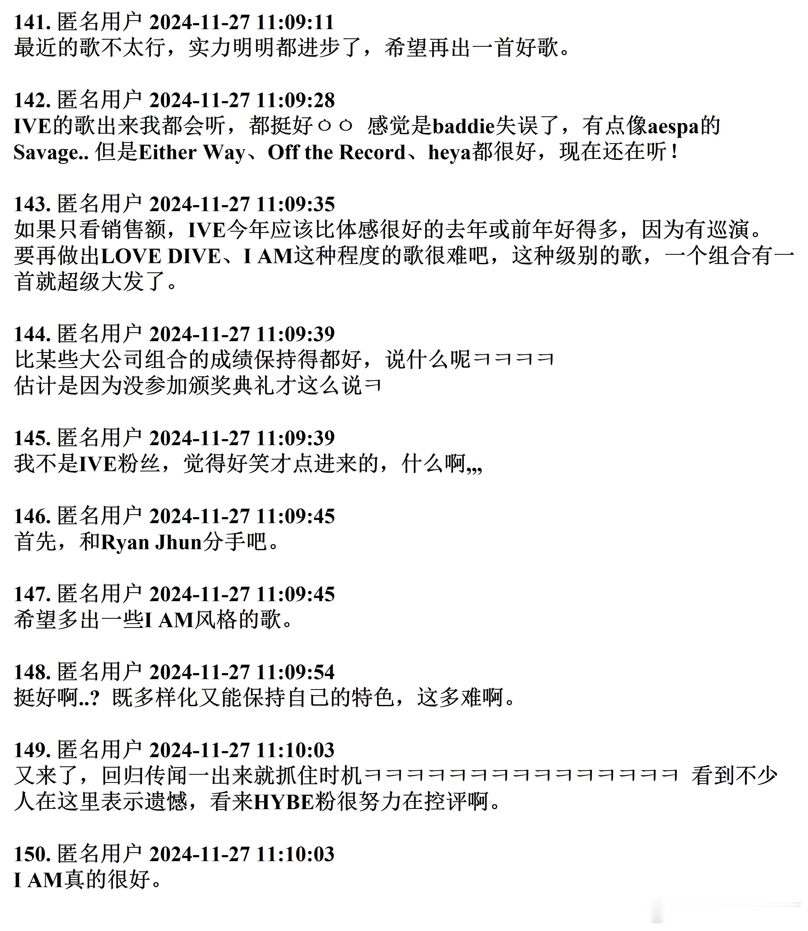 评论区有觉得是HYBE写的(不过其实这家媒体经常狙击HYBE),蛮多人表示I AM之后得质量不比从前,不过要求每年歌曲都是love dive I AM级别也不太现实,总体上感觉评论对芙今年表现还满意的?基本上都觉得只要有好歌就能再回去