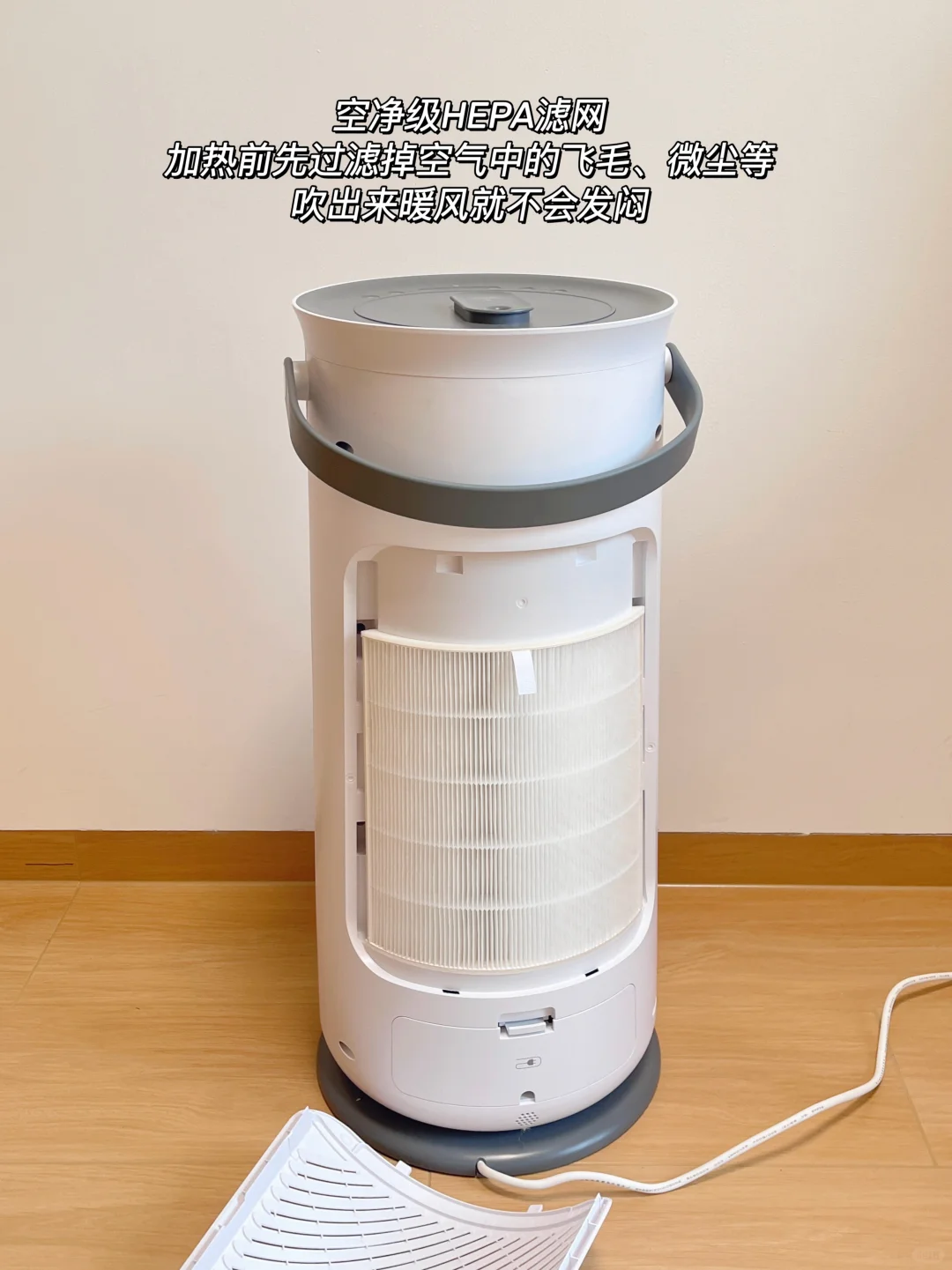 🟢nada取暖器自带空净功能!底部进风口设有空净级HEPA滤网,加热前先过滤掉空气中的飞毛、微尘等污染物。
