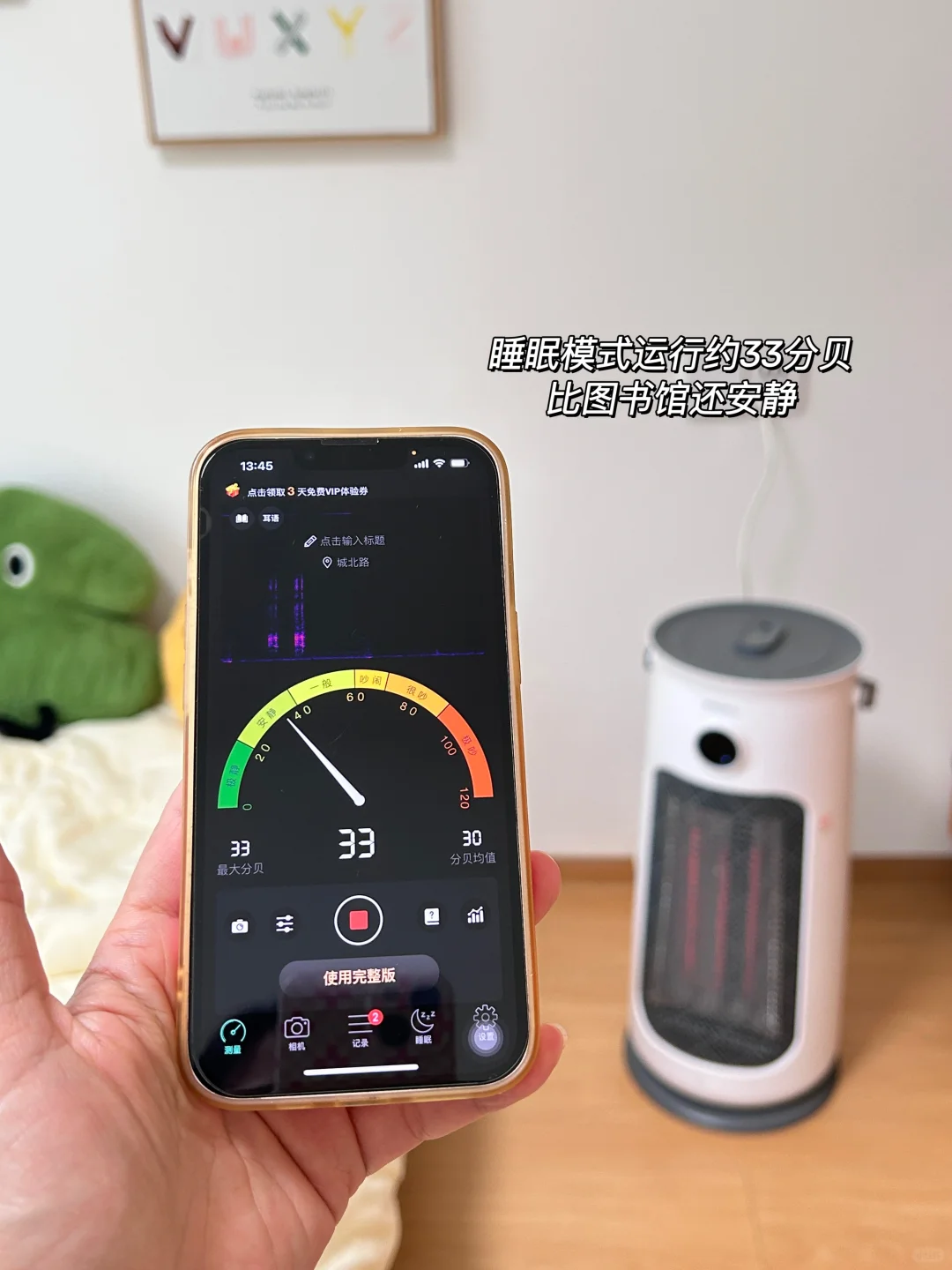 打开睡眠模式,运行噪音约33分贝,比图书馆还安静,睡眠浅也不影响。