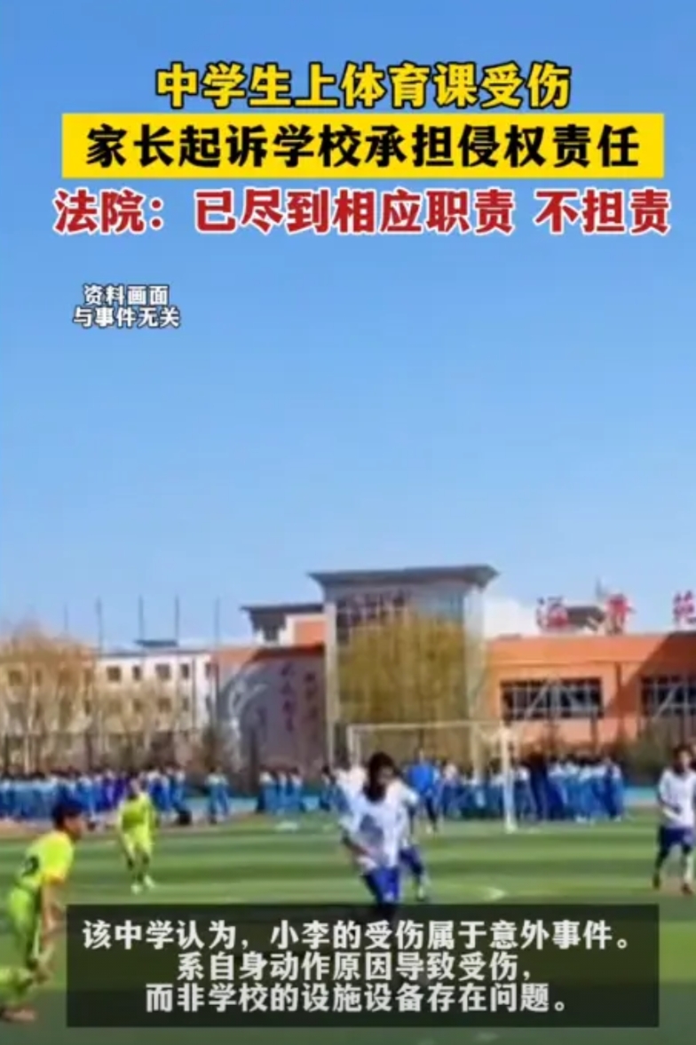北京,一初中生在体育课打球时不小心摔倒受伤,老师得知后第一时间拨打120急救电话、及时通知学生家长、陪同学生前往医院检查、垫付部分医疗费用。没曾想学生家长还是将老师告上法院,称学生打球时老师没有进行指导和保护,就是认为孩子在校出事,一切由学校负责。法院该如何判决? 打球,本就是一项危险的运动,哪怕是摔倒了,也怨不得别人,但总有家长觉得,自己花钱把孩子送进学校里,只要是孩子在学校里出了事,学校都得负责。 事发当天,初三学生小李正上着体育课,由于体育考试即将到来,因此在训练着一项球类活动。 他平日里就热爱运动,对篮球更是情有独钟,这次还特意换上了新买的篮球鞋,想要在同学们面前大展身手。 果不其然,小李凭借凭借灵活的脚步和精准的投篮,赢得了阵阵掌声。 可就在一次投篮时,因为脚下一滑身体失去了平衡,整个人也重重地摔倒在地,疼的无法站起身。 同学们见状纷纷围拢过来,有的扶起小李,有的则大声呼喊老师。 体育老师王老师听到呼救声,立刻从操场的另一端跑来,并迅速检查了小李的伤势。 发现小李的脚踝已经红肿,无法站立,王老师立刻拨打了急救电话。 等待救护车过来的途中,王老师又询问了小李家长的联系方式并给他们打去了电话说明了情况,并告知他们救护车正在路上,请家长尽快赶到医院。 不久,救护车呼啸而至,将小李抬上救护车送往医院。 王老师担心小李孤身一人在医院会感到害怕,便决定陪同前往。 在医院的急诊室里,王老师忙前忙后,帮助办理各种手续,还垫付了一部分医疗费用。 经过检查,医生诊断小李脚踝处扭伤,休养几日便可。 听到这个消息,王老师松了一口气,还好不算太严重。 可让他始料未及的是,几天后竟然接到了法院的传票。 原来小李的家长认为,孩子在学校上体育课时受伤,完全是老师疏忽职守,没有进行足够的指导和保护造成的。 在他们眼里,既然孩子在学校出了事,一切责任都应由学校承担,于是将王老师告上了法庭,要求赔偿医疗费、精神损失费等共计数万元。 王老师傻眼了,这是小李打球时不小心摔倒的,和他有什么关系呢? 庭审当天,小李家长主张孩子受伤时,王老师正在处理其他同学之间的纠纷,没有对正在练习打球的小丽进行指导和保护,存在缺席行为。 但王老师认为,小李摔倒是自身原因,而且动作发生在一瞬间,即便自己一直在他身边,也无法贴身保护,自己不应承担责任。 法院审理后认为,小李训练的项目早在初一初二时便接受训练了,对已经训练两年的他并不算危险,而且学校的运动场地以及运动器材也没有缺陷。 更重要的是,王老师在事故发生后所采取的措施是积极且有效的,他及时拨打了急救电话,通知了家长,并陪同学生前往医院,垫付医疗费用,这些行为都体现了教师的责任心。 法院也指出,体育活动中的意外伤害难以完全避免,关键在于教师的预防措施是否到位,以及事故发生后的应对是否及时有效。 最终,法院作出了公正的判决,认为王老师已尽到了合理的注意义务,对于小李的受伤不存在过错,无需承担赔偿责任。 无独有偶,2024年的一天傍晚,六年级学生小徐跟着老师和同学们下楼放学,下楼的过程中小徐不小心摔倒在台阶上,一颗牙齿被磕掉了。 老师见状立刻带着小徐去了医院并联系了家长,但后来家长还是将其起诉到了法院,认为学校对学生人身安全监管不力,要求赔偿各项损失共计8万元。 但家长无法指出学校事发时存在的具体过错,而老师也尽到了应有的义务。 最终,法院驳回了家长的诉求。 对此,你有什么看法? 信息来源: 人民日报2024年11月23日《中学生上体育课受伤,法院:学校不担责》