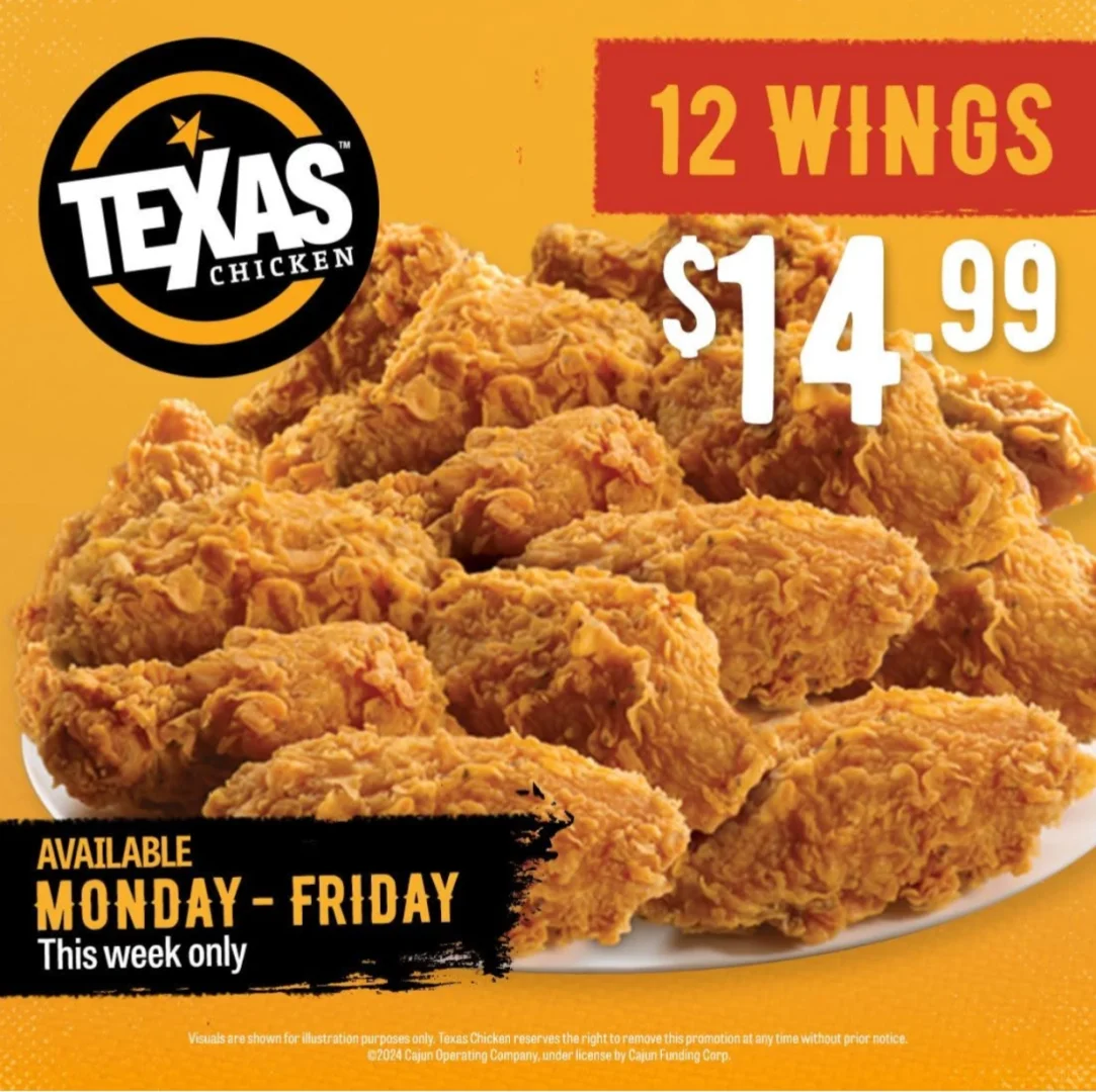 [拔草R]TEXAS,12炸鸡翅,💰14.99,周一~周五