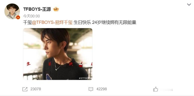 王俊凯王源卡零点给易烊千玺庆生 准时准点送上生日祝福,还特地给千玺p了应援色的