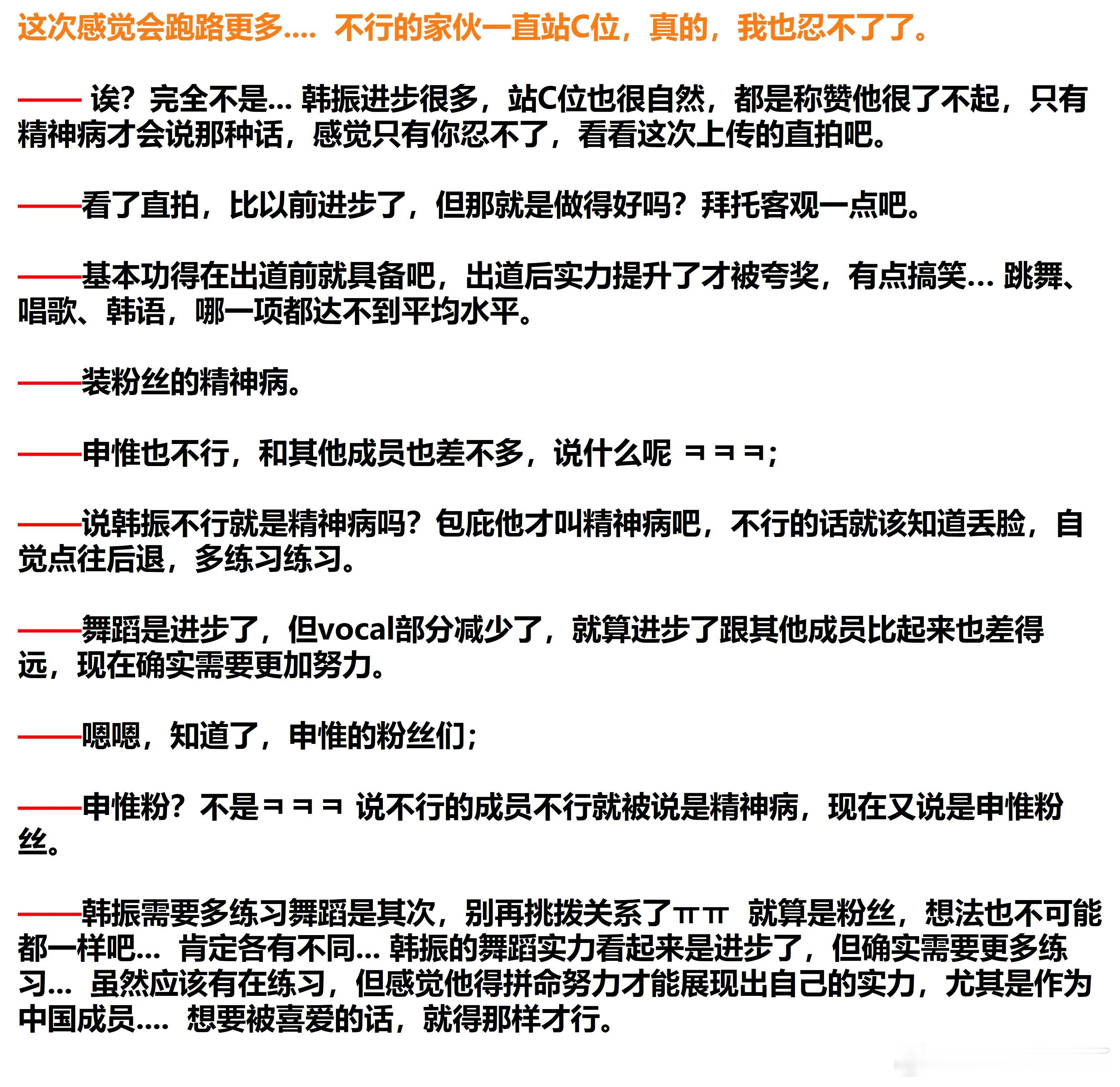 因为从来也不是大众PICK VS 因为太捧中国成员/能力不行的韩振跑粉了