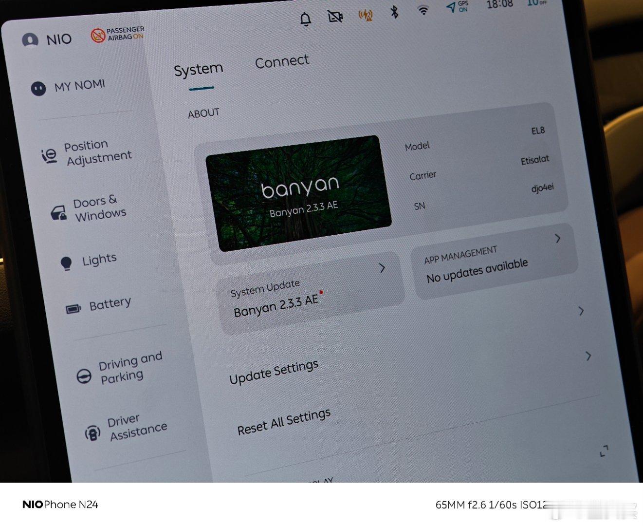车方面,即将要交付的是ES8,这边叫EL8,起步价格36万迪拉姆,约72万人民币。目前车机显示nedc续航455km,车机版本Banyan OS 2.3.3。