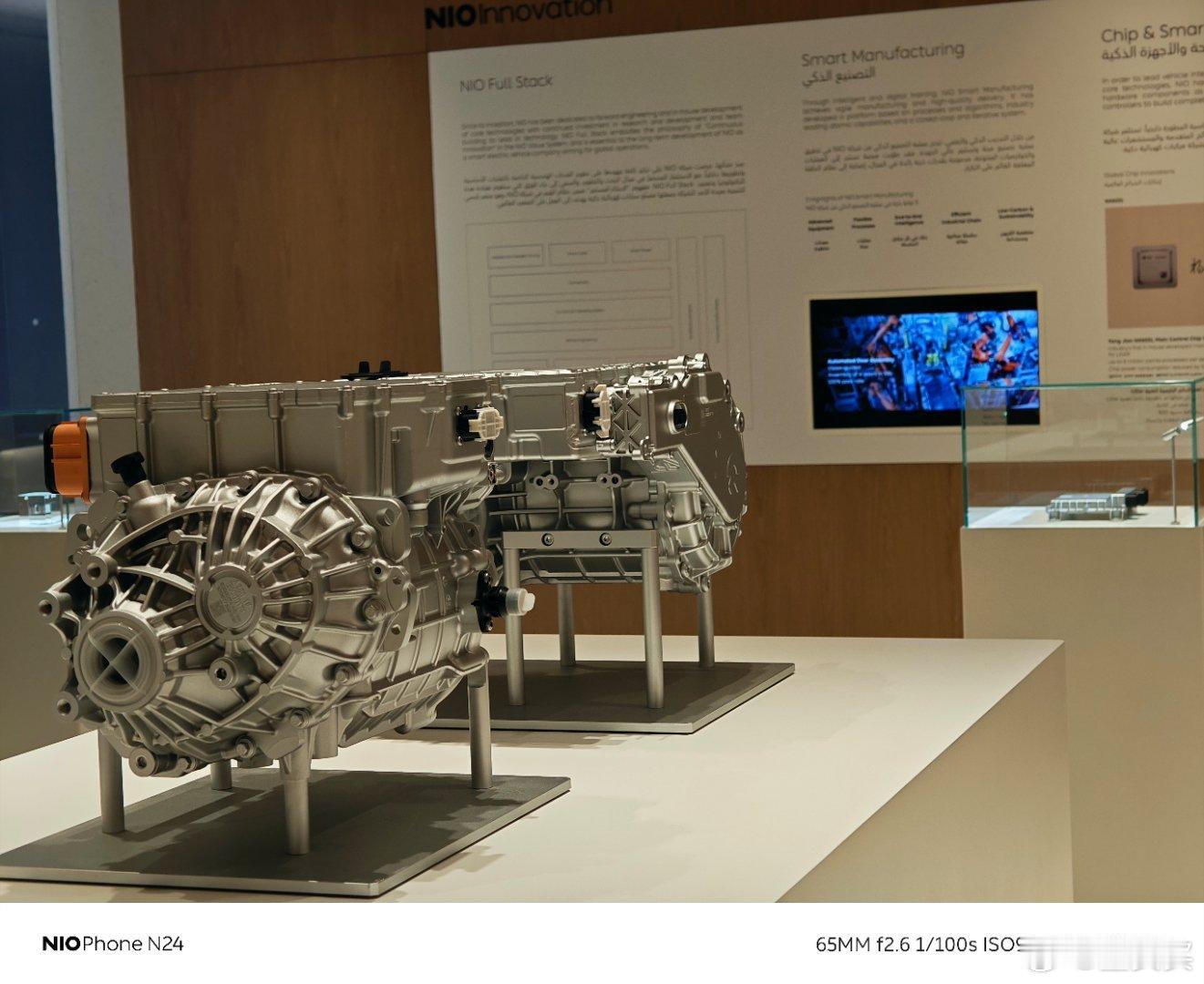 阿布扎比牛屋这关于科技的展厅也显得诚意十足,放了前后驱动电机,还展示了杨戬芯片、碳化硅模块、换电螺栓,还有高度集成的CCC,包含了四颗智能驾驶芯片。