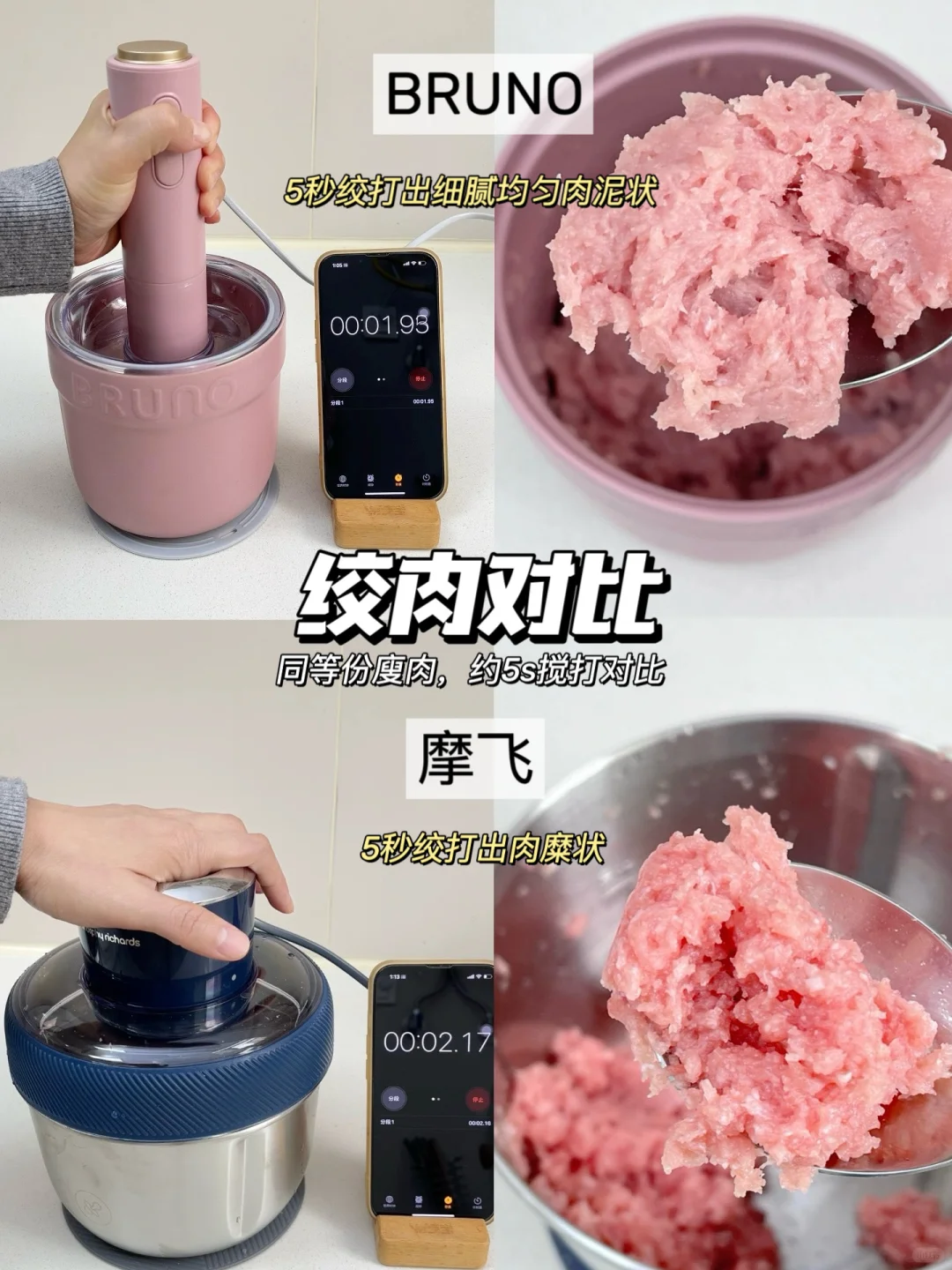 🌈我选了目前很火的新型佐料机:BRUNO佐料机,还有呼声也很高的传统绞肉机:摩飞绞肉机进行实测!详细测评结果可看图片哦~