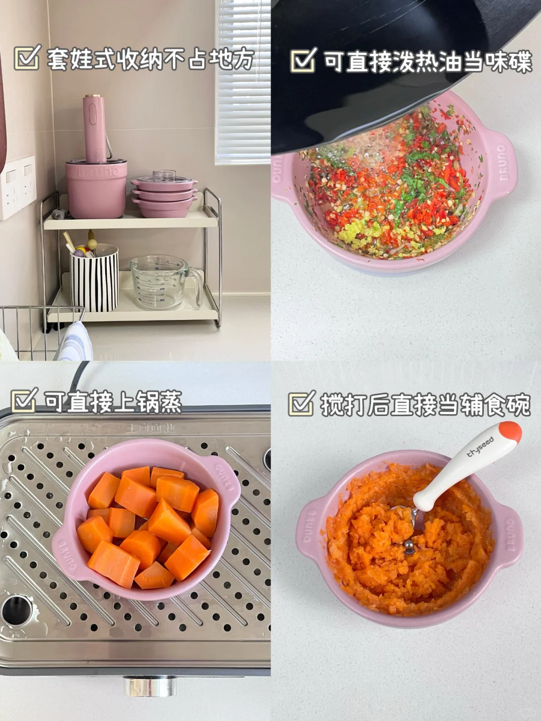 👉颜控党、有做辅食需求的有娃家庭,且对备餐品质、速度要求高的,可闭眼入BRUNO佐料机!