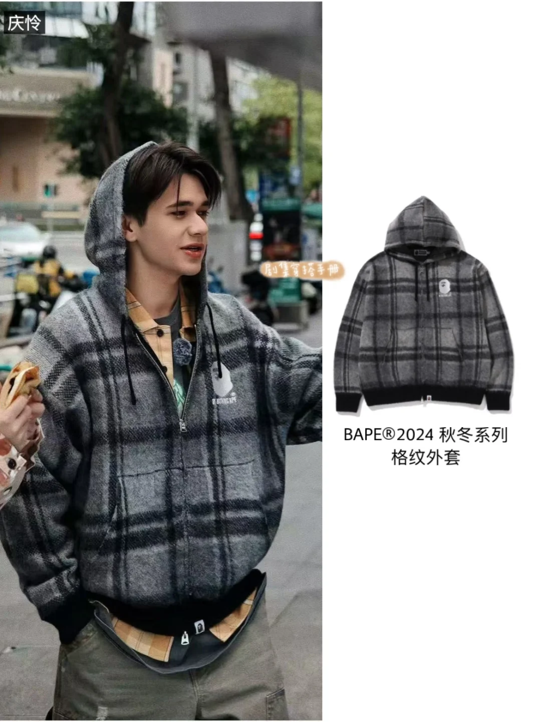 ✨近期,娱乐圈的时髦人士都纷纷上身了BAPE® 24秋冬系列新品,无论是加持新季高光图案的夹克、还是经典格纹外套,亦或是联名系列,都是令众星占据焦点的造型利器~