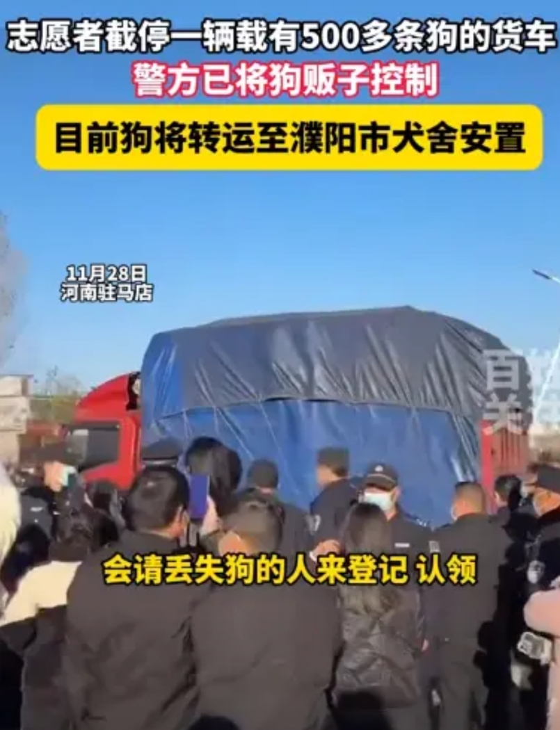 “必须判刑!”河南,志愿者截停一辆载有500多条狗的货车,警方已将狗贩子控制,呼吁丢狗人士前往濮阳现场登记认领!网友:“偷狗的狗贩子真可恶!” 这段时间,偷狗事件频繁发生,让不少狗主人都非常的身心,毕竟自己的宠物被偷走了谁都不好受,于是大批大批的志愿者开始跟狗贩子作斗争,其中不乏都是自己的宠物被狗贩子偷走的狗主人。 志愿者们在濮阳截停了一辆载有500只狗狗的车辆,成功让这批狗狗免除被杀的命运,狗贩子是真可恶啊,这些小狗不知道是多少主人的动物朋友。 消息来源:百姓关注官方账号,2024年11月29号发布——《志愿者截停一辆载有500多条狗的货车,警方已将狗贩子控制》 对此,你有什么看法?欢迎评论区留言讨论