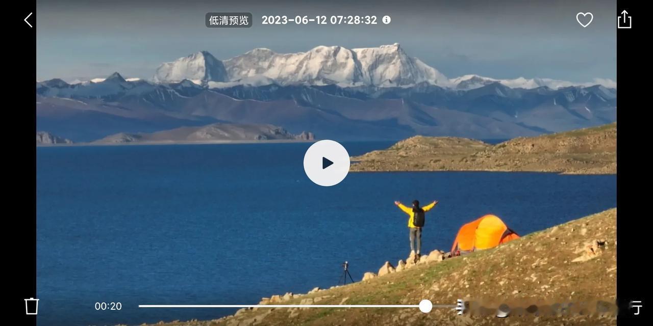在狂风中露营一晚,等来了纳木错早晨的火烧云+日照金山!