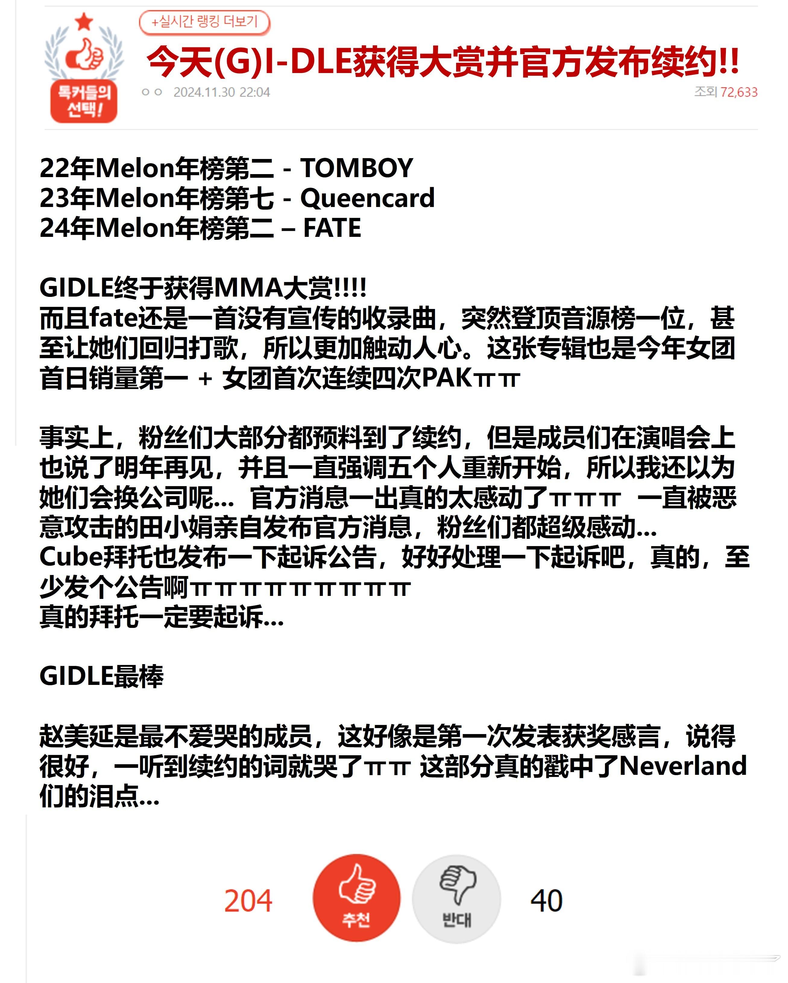 GIDLE是有故事感的女团,从中小公司到现在一路都不容易,终于拿到大赏了!