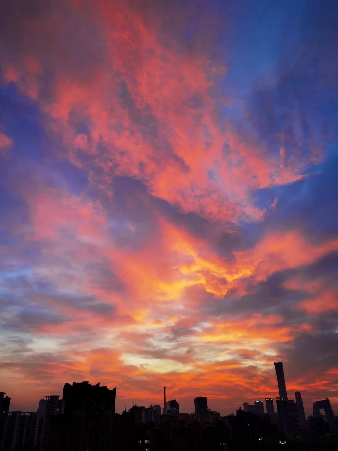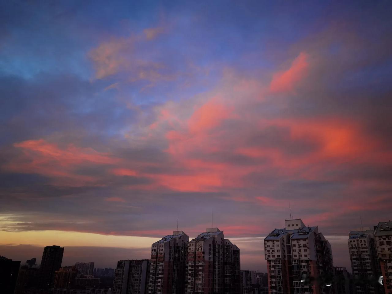 分享今日美好——京城喜见火烧云! 晴空一日晚升云 悄悄遮掩夕阳身 岂甘平平隐山外 激情如火耀乾坤 2024年12月1日的北京 一日天晴傍晚云升 夕阳早早没入云层际 图九拍摄时间 16:39 本以为就此结束 没再理会 想起时往窗外瞅了一眼 看到有一抹粉霞 赶紧跑到阳台拍摄 从16:54分开始基本是一秒一变 直至如血的霞色漫布了一半的天空 17:00达到鼎盛随即迅速减退 17:24分出现了第二波霞红 图十八 记录精彩瞬间 美好同分享 冬日生活打卡季 北京迎绚丽晚霞 晒晒北京的天空 北京的落日晚霞 火烧云北京 北京今天火烧云