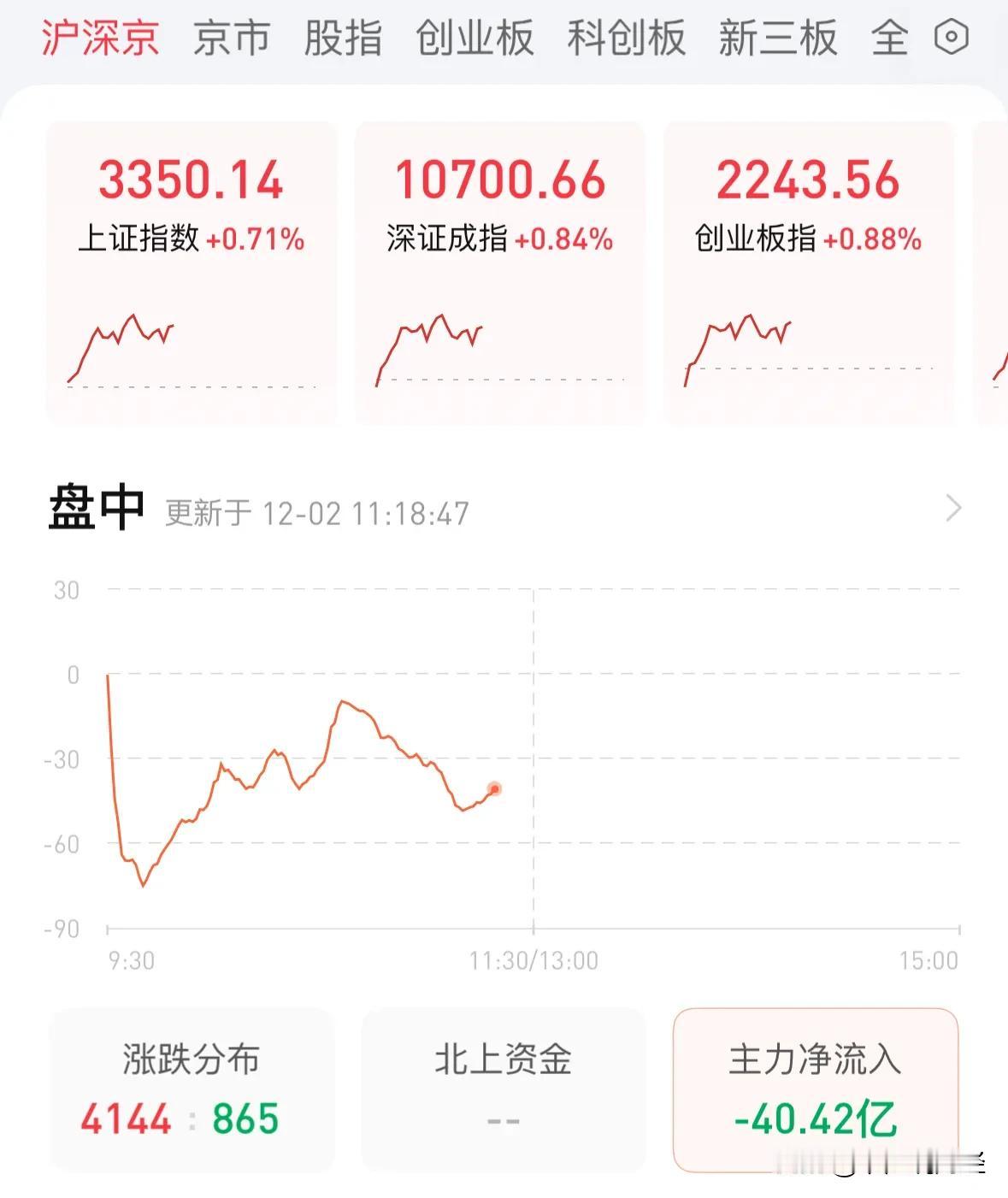 A股12月开门红今天微幅高开冲高回落,散户控制好风险:12月2日上午11点最新看盘,A股今天走势跟高手昨晚的精准预判几乎一样, 12月开门红,今天微幅高开,冲高回落,只不过散户比预期的还要热情,截至今天上午11点,成交量已经突破1万亿元,较周五放量2500亿元,A股今天冲高到3361点才回落,预计今天成交量将突破2万亿元,大幅放量希望不是诱多,今天这量要是一个大锅盖下来,追高的散户就会全部被埋,那机构真的就是丧尽天良:口口声声说要等经济数据好转,周末经济数据来了,PMI也好转了,A股可爱的散户也冲进来了,还让追高的散户全部被套,那明天走势就难看了。 从盘面走势上看,散户今天真的特别热情,敢打敢冲,看来年底了确实很多人想到股市搞点钱过年,如果下午A股量能突破2万亿元,指数不跌破3350点,那么12月行情可期。 但现实情况是,今天外资机构和内资机构都不太热情,一群口是心非的垃圾机构还是想着怎么割韭菜,冲高诱多,内资机构的主力资金还在净流出40亿元,所以散户的牛市赚钱梦还得靠自己:控制好仓位和风险再赚钱,不要追高,不要追高,不要追高,重要的事情我提醒三遍,震荡走势尽量做好跌吸高抛,尽量尾盘交易法控制好风险,在高点卖出后观察市场走势,顺势而为。我是书声说财经,只为股民和基民说真话,点赞关注评论区留言,说说你的看法!