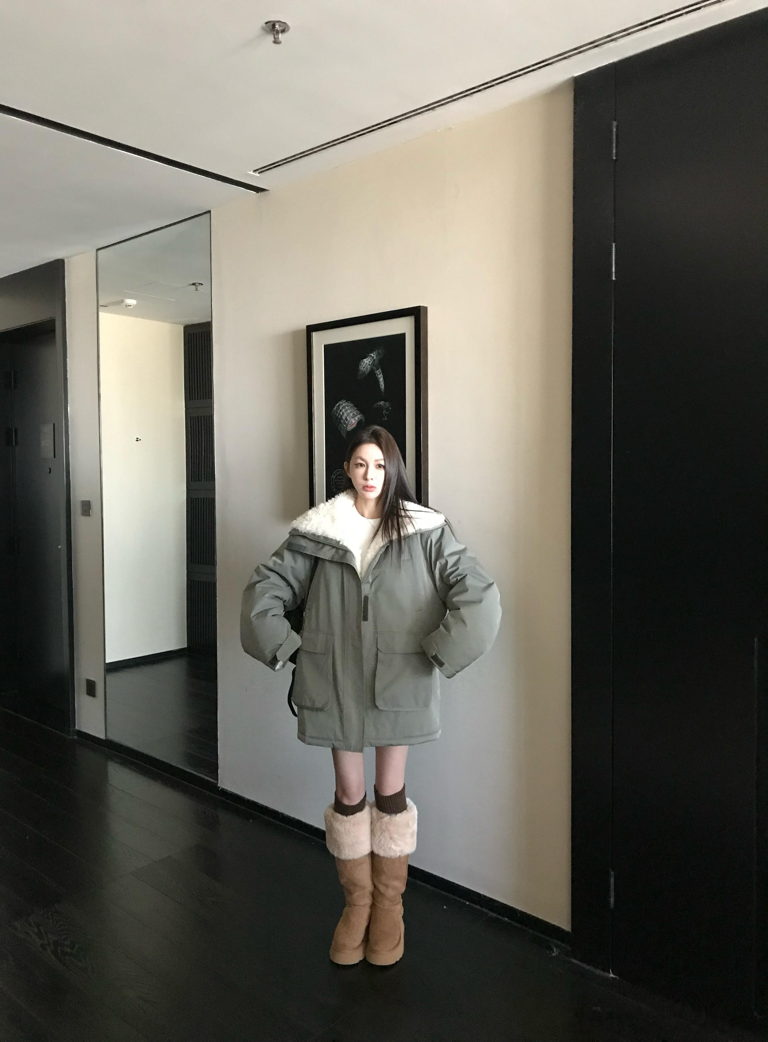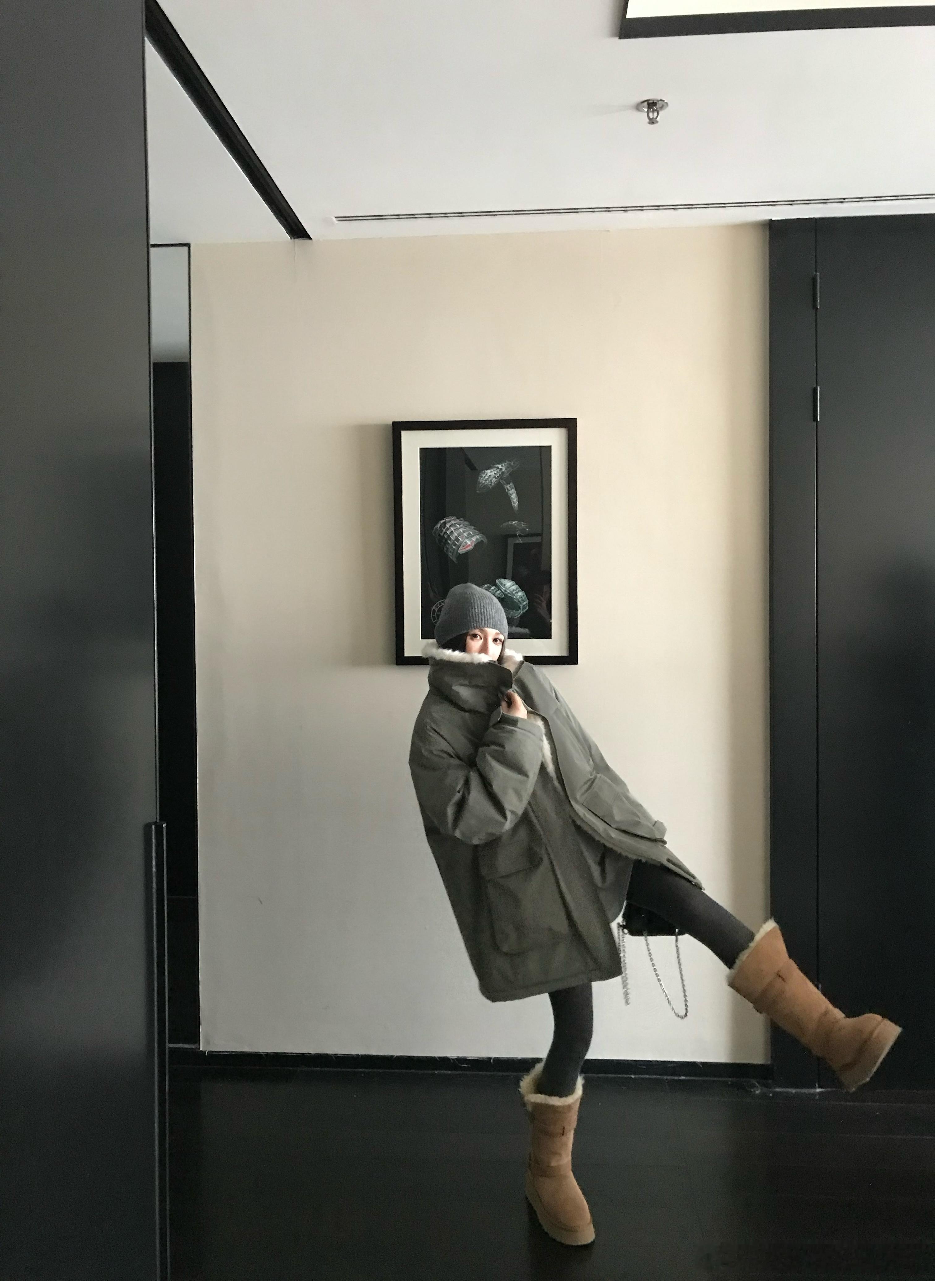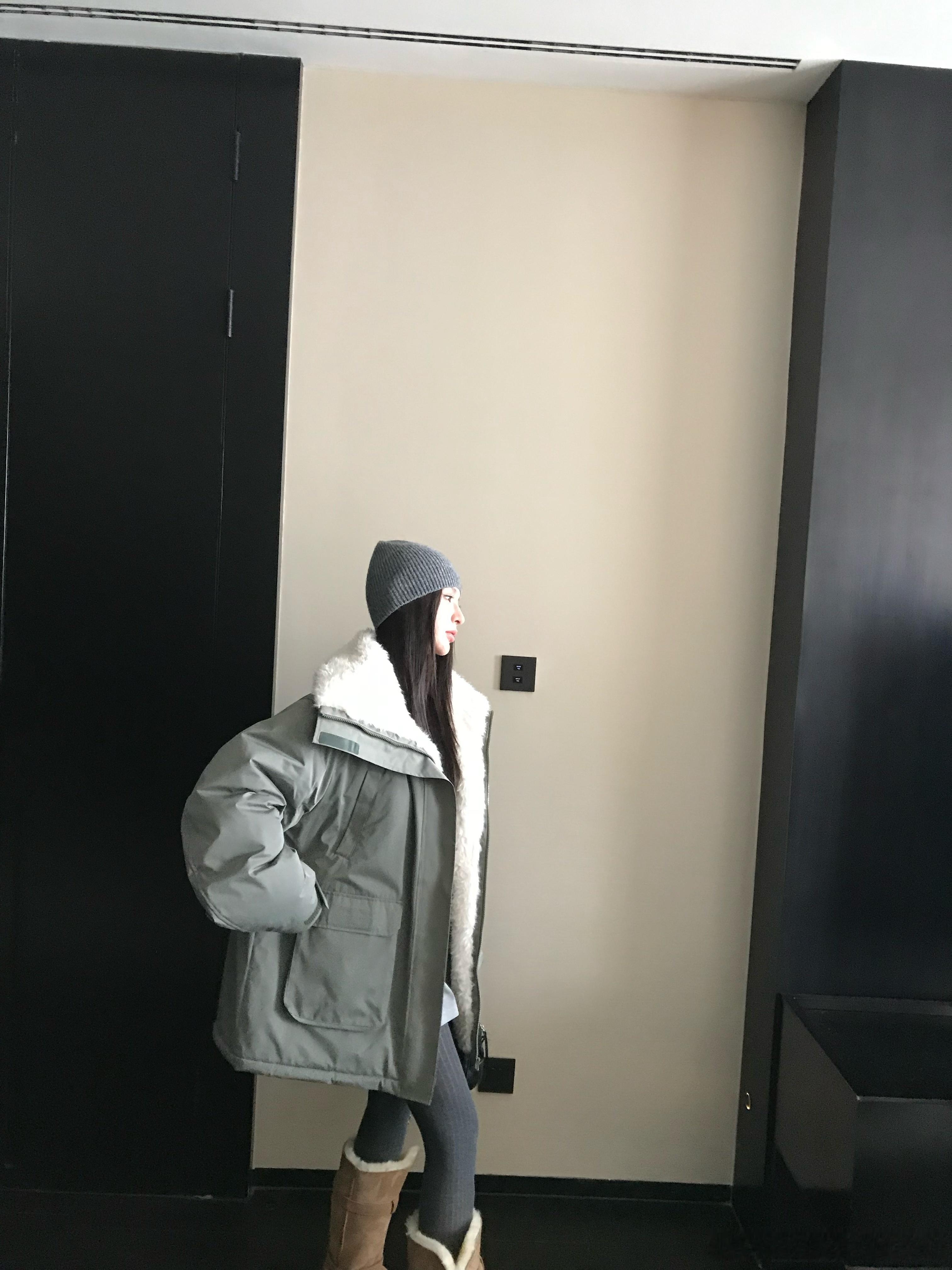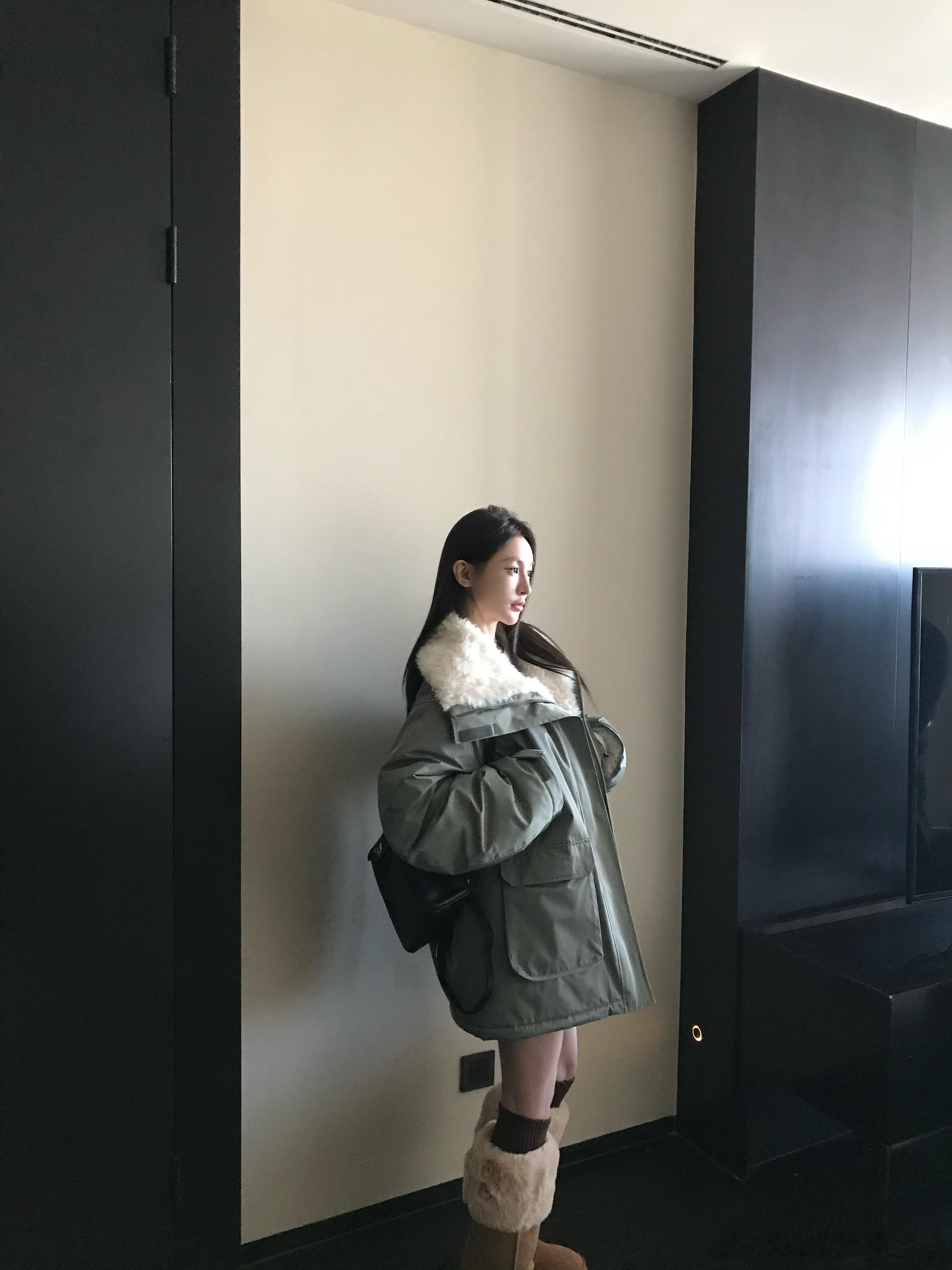 再来一款超有氛围感的派克单品结合了极简通勤和都市优雅休闲感 相比传统羽绒服更为减