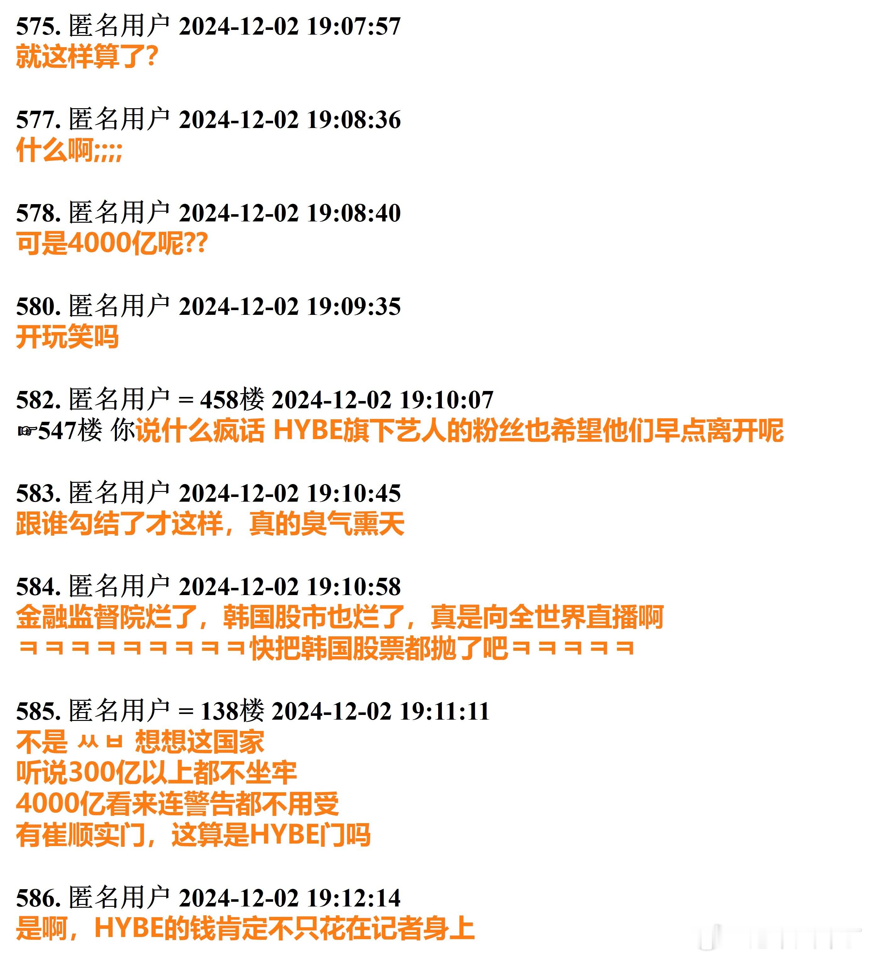 again,the korean economic daily报道,韩国交易所表示上市审查存在“漏洞”,并决定强化审查文件,完善相关制度。决定不对HYBE进行单独制裁。