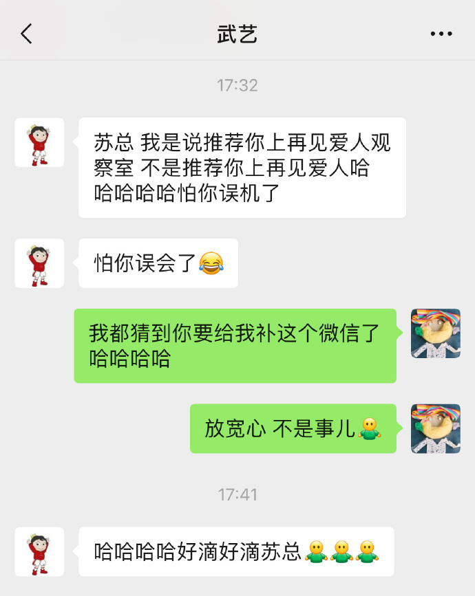 苏醒晒与武艺聊天记录 一生谨慎的我们小武艺...武艺你这么谨慎做什么都会成功的