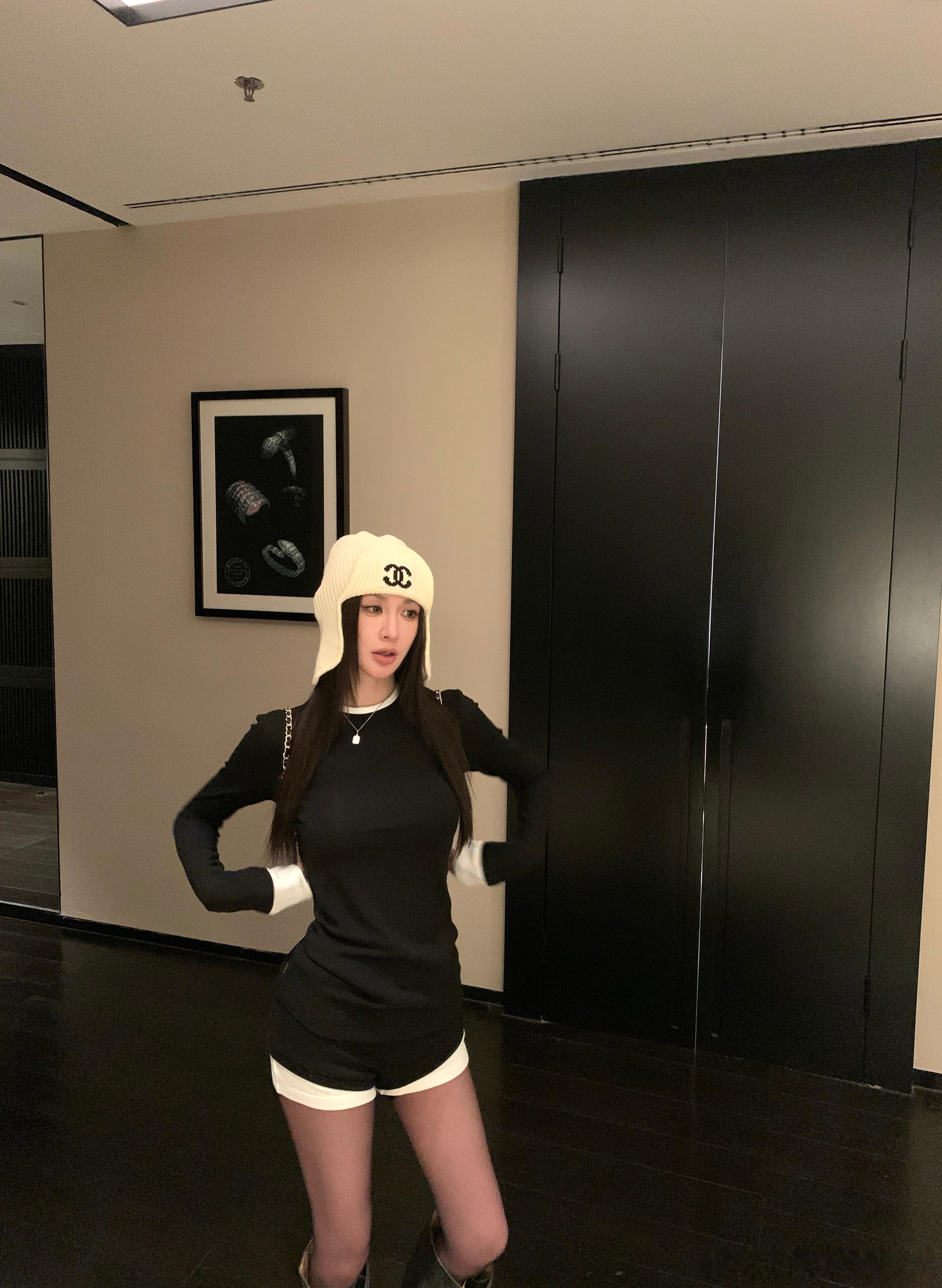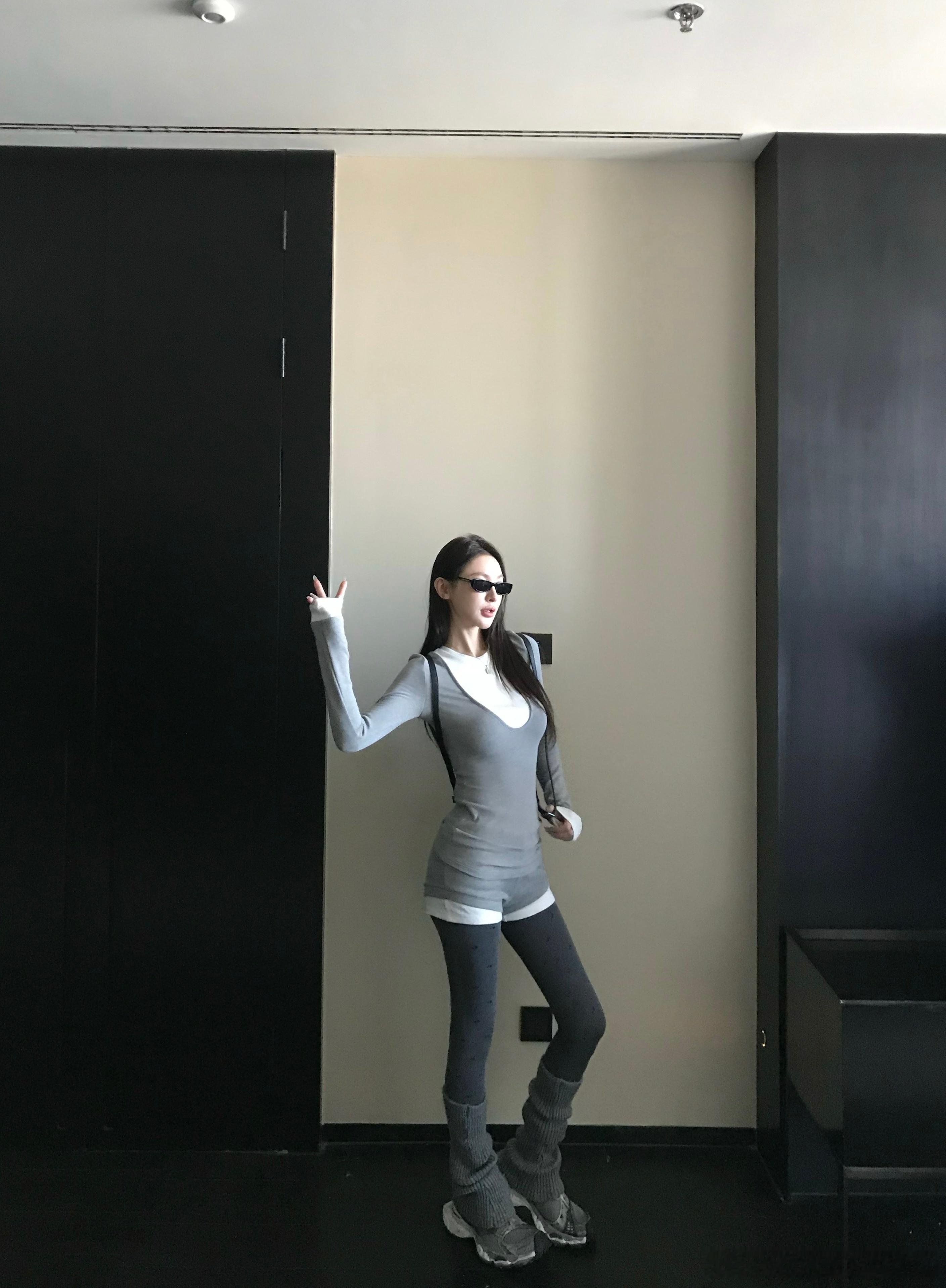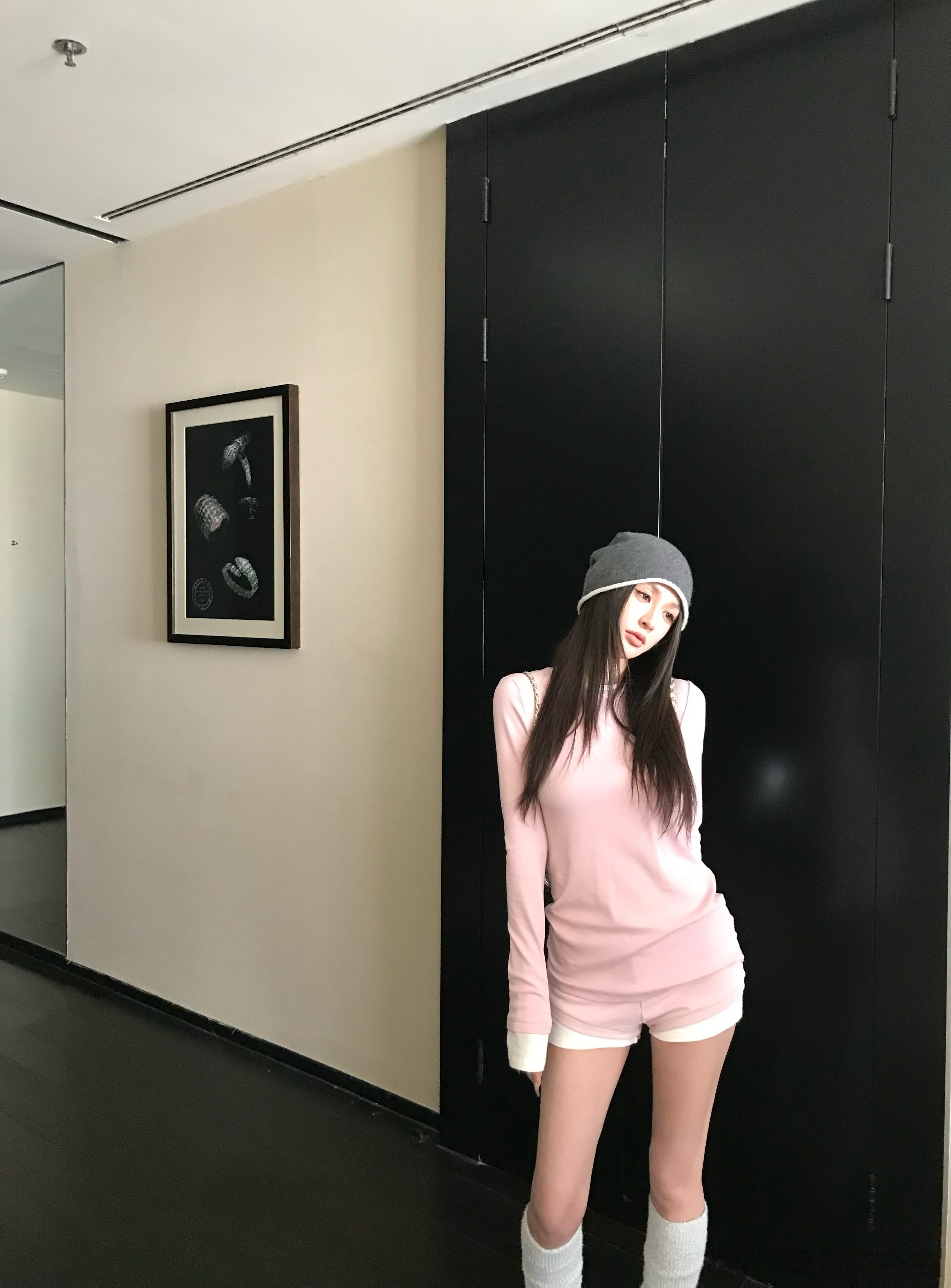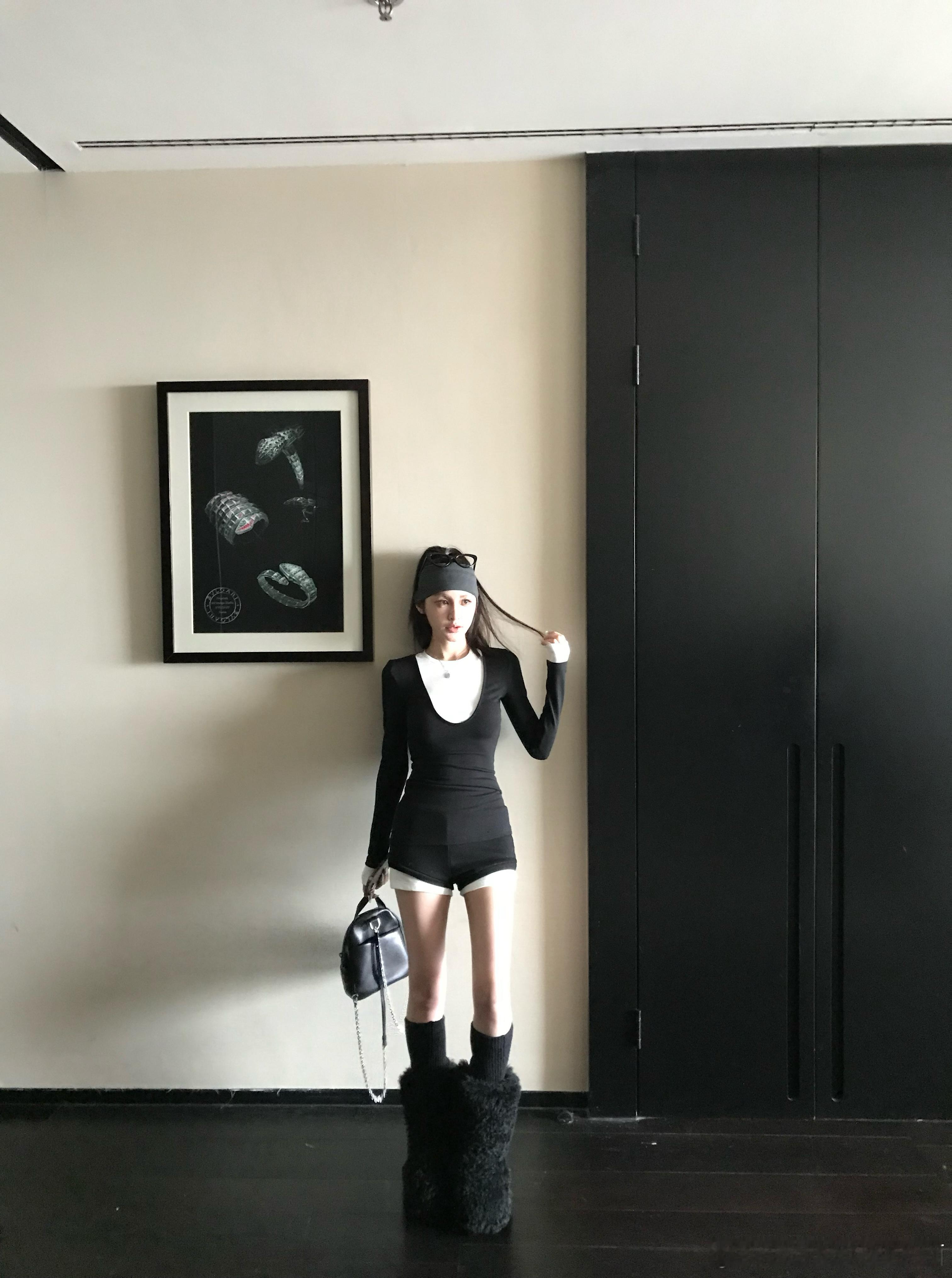 人手一件的假两件拼接打底衫短裤套装秋冬打底真的是刚需 给大家做了miu系的叠穿思