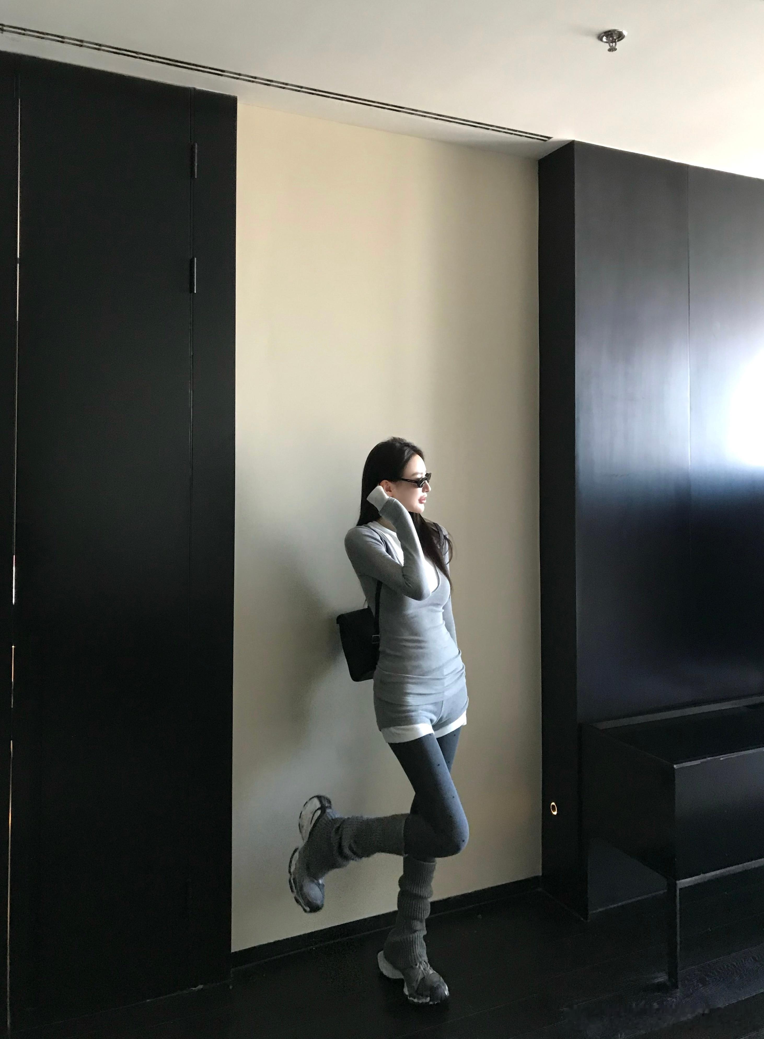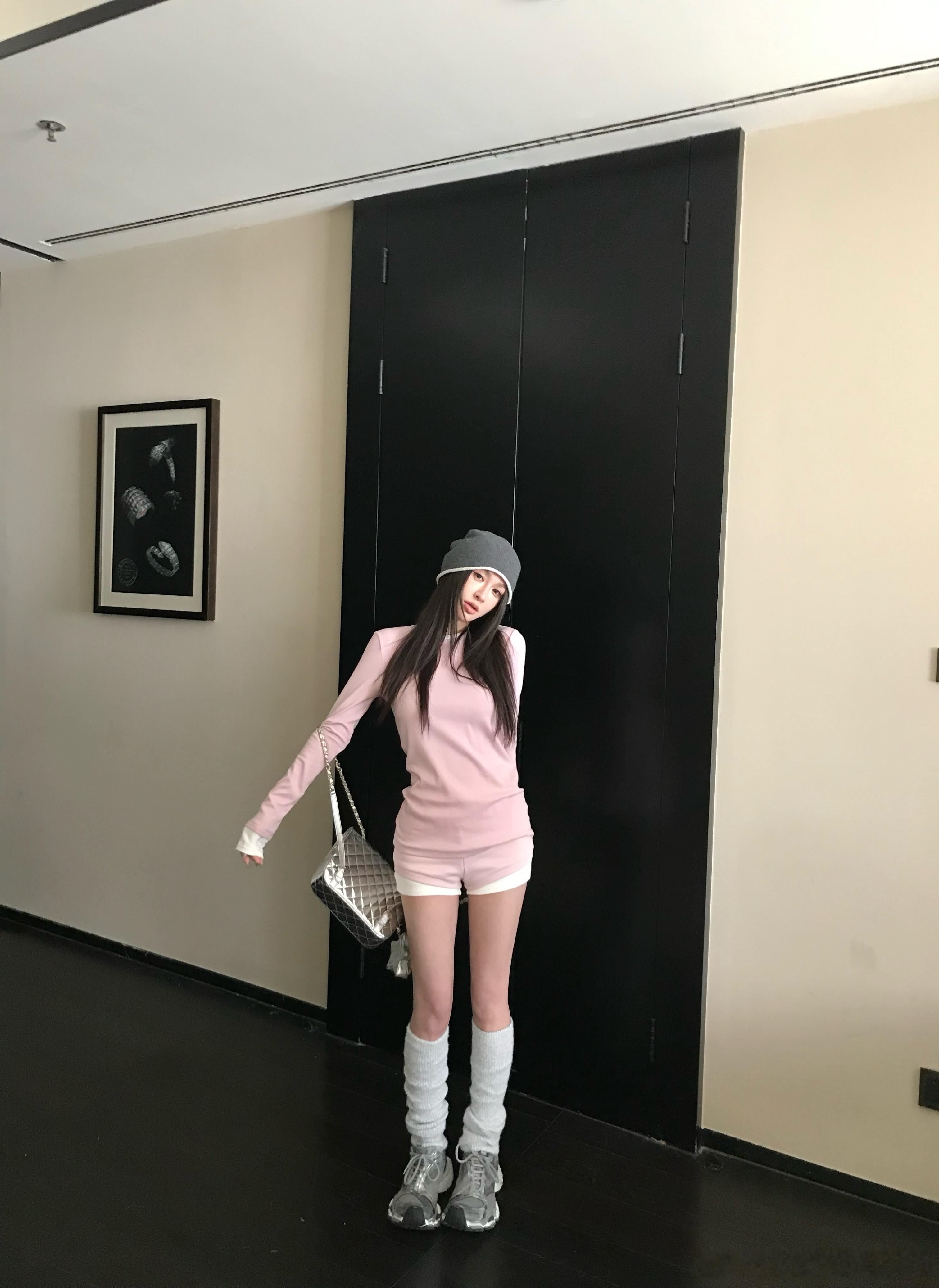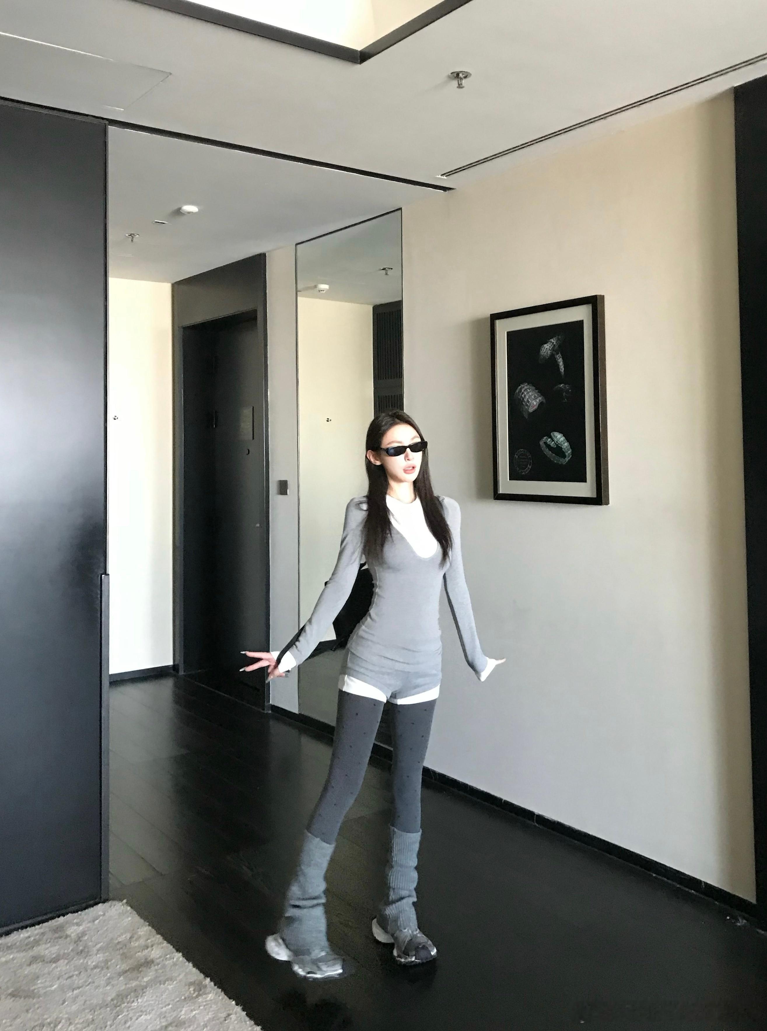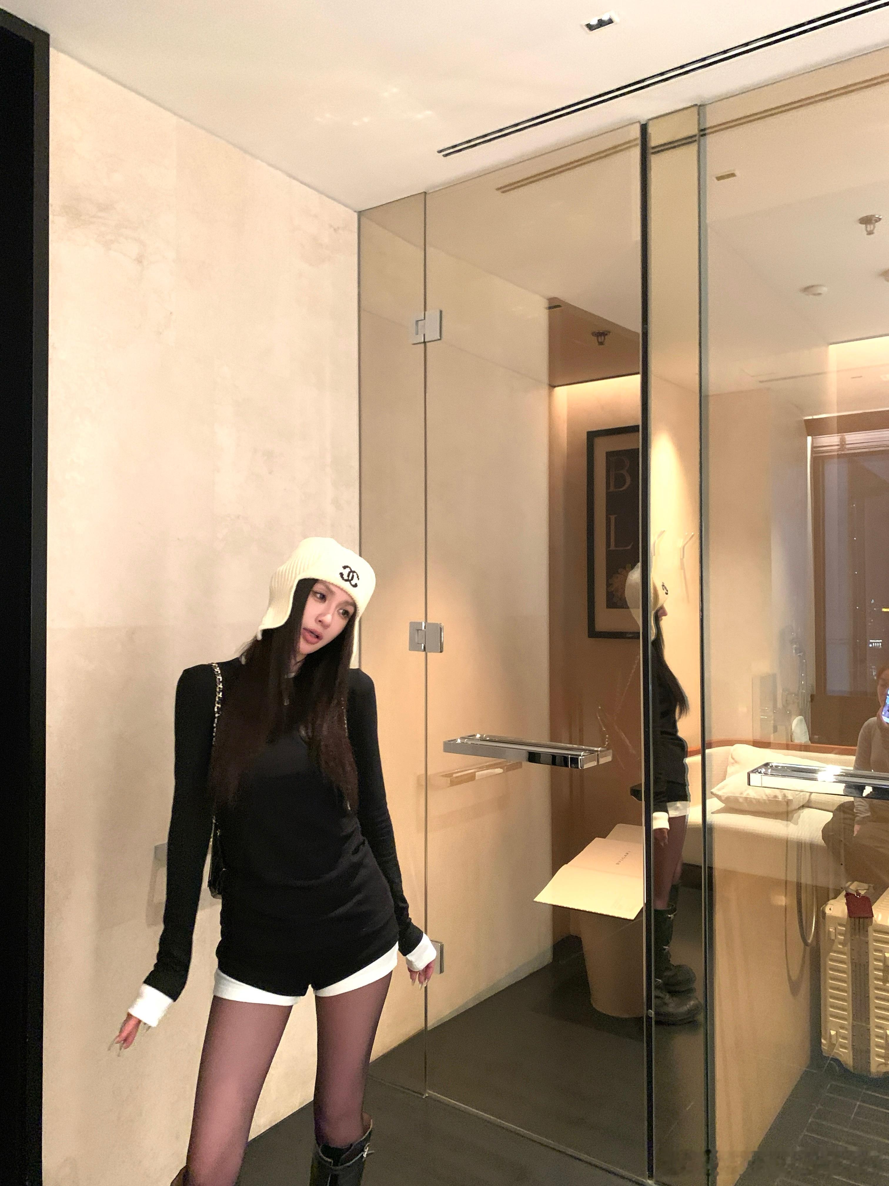 人手一件的假两件拼接打底衫短裤套装秋冬打底真的是刚需 给大家做了miu系的叠穿思