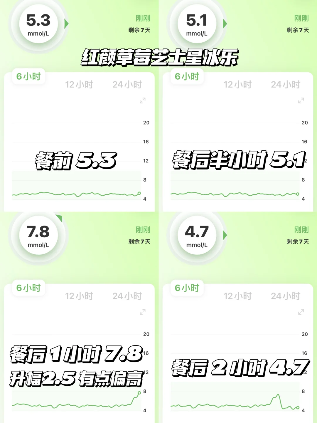 🍬餐后一小时7.8→升幅2.5,有点偏高哦↑