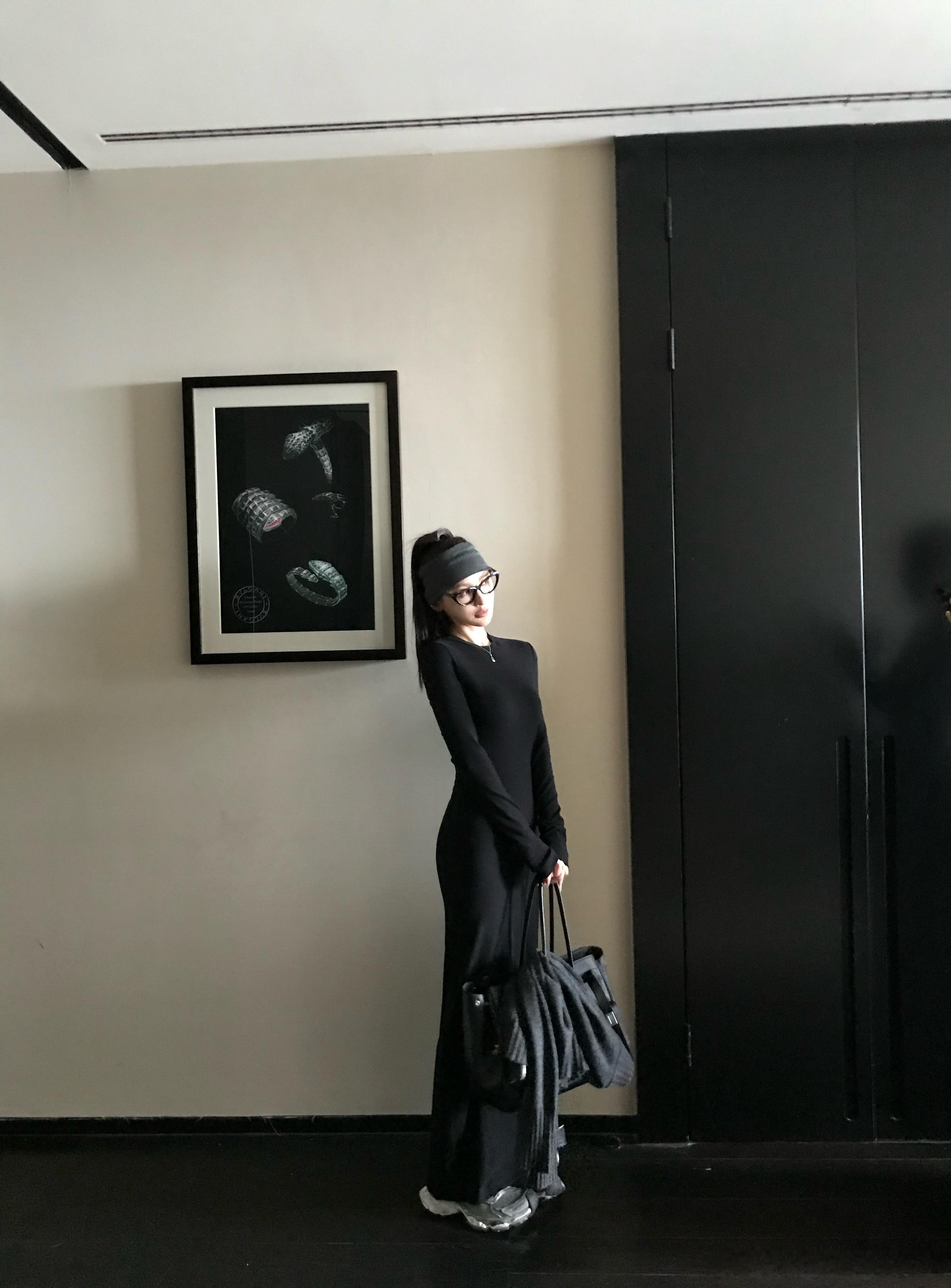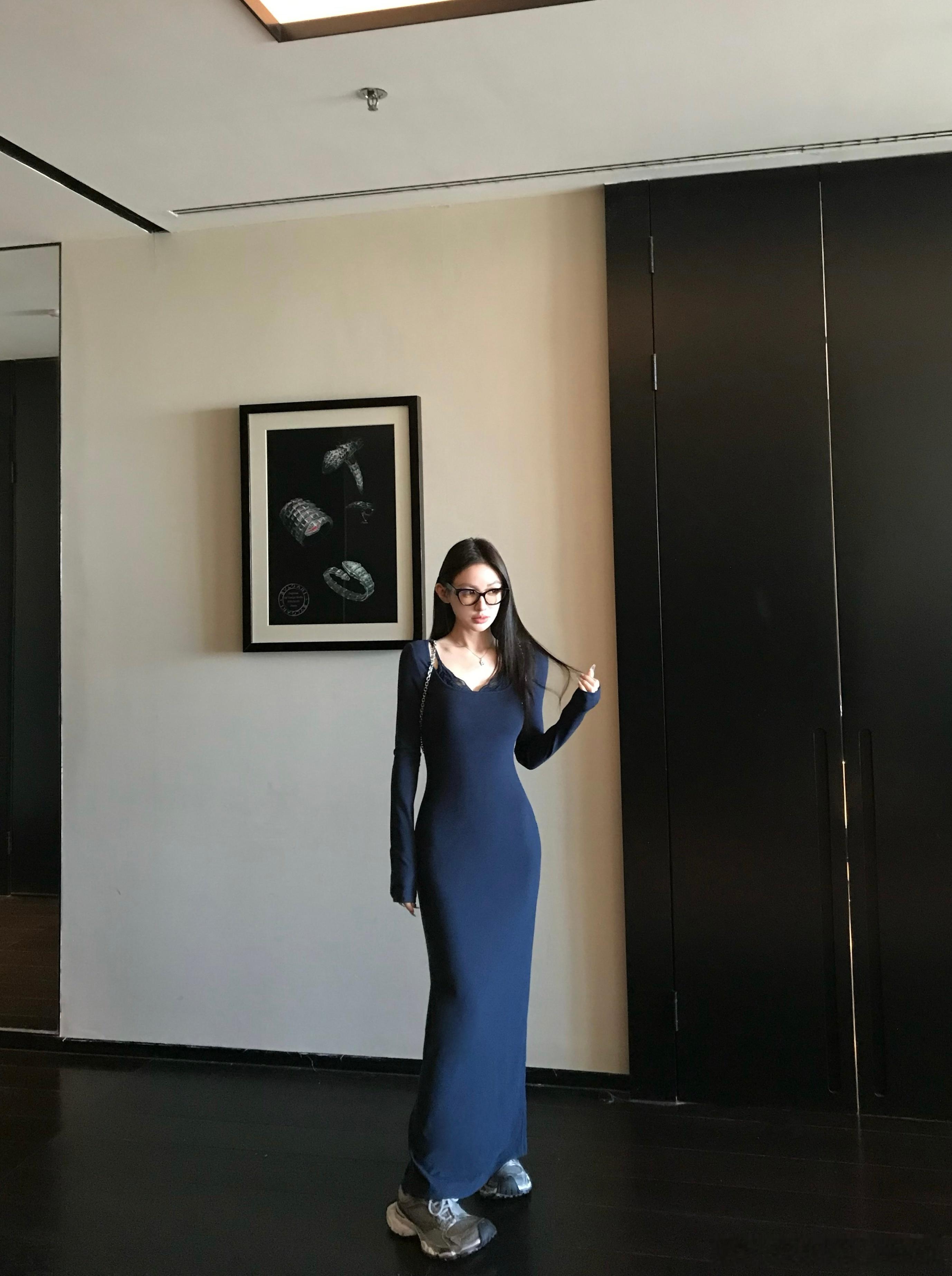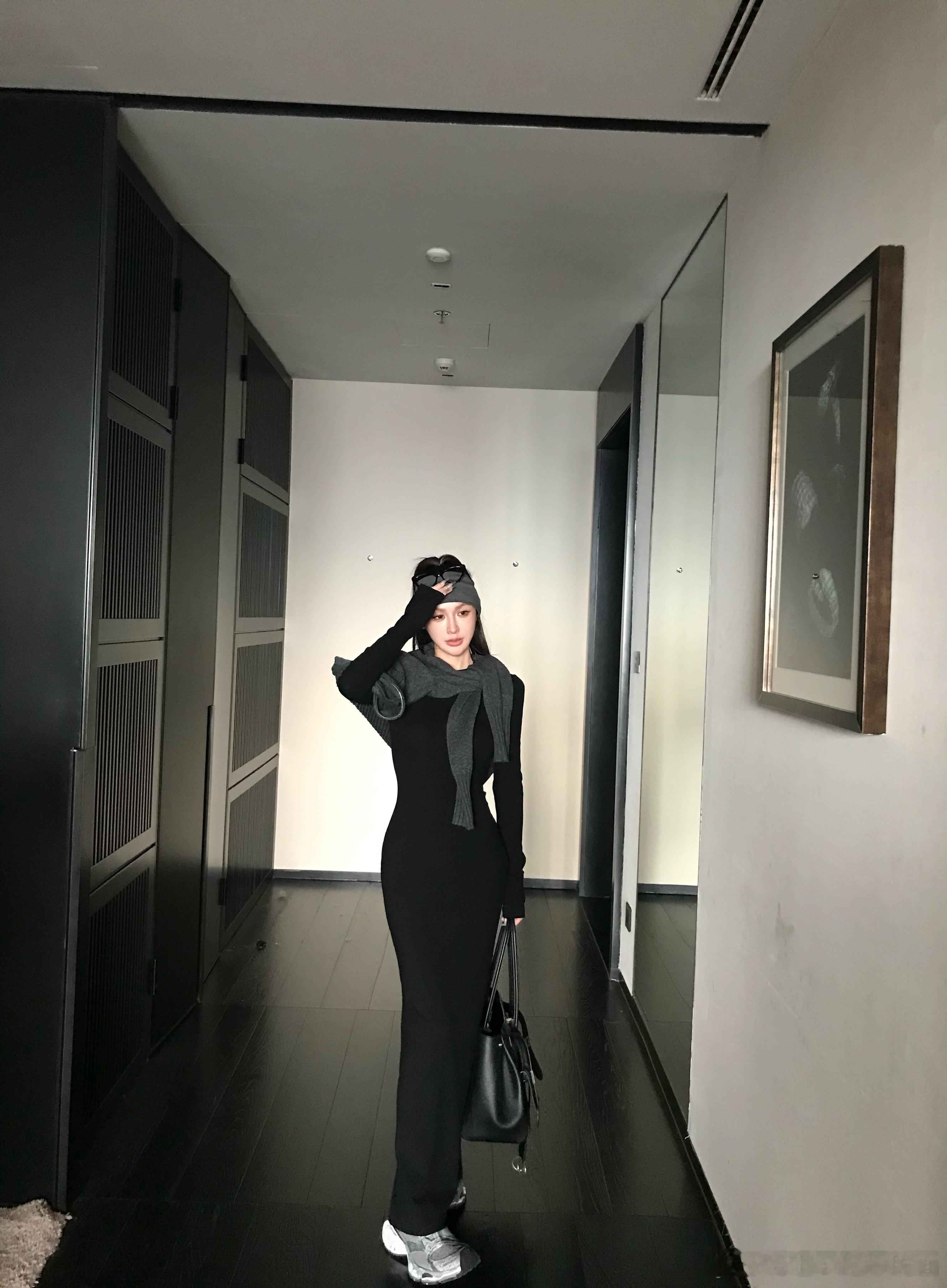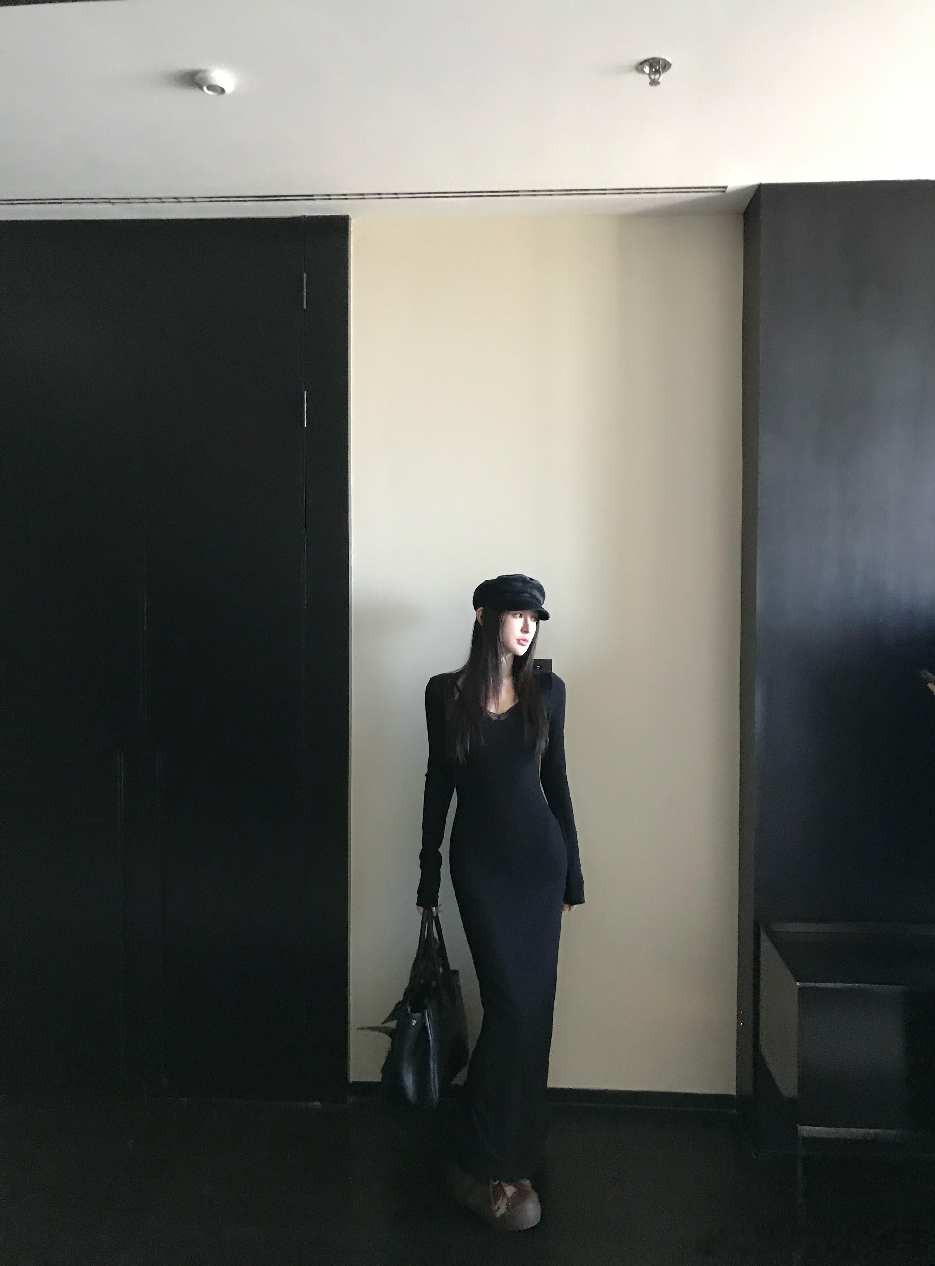 这条基础长裙真的美得很有氛围感 可纯欲可姐系 修身版型超显身材