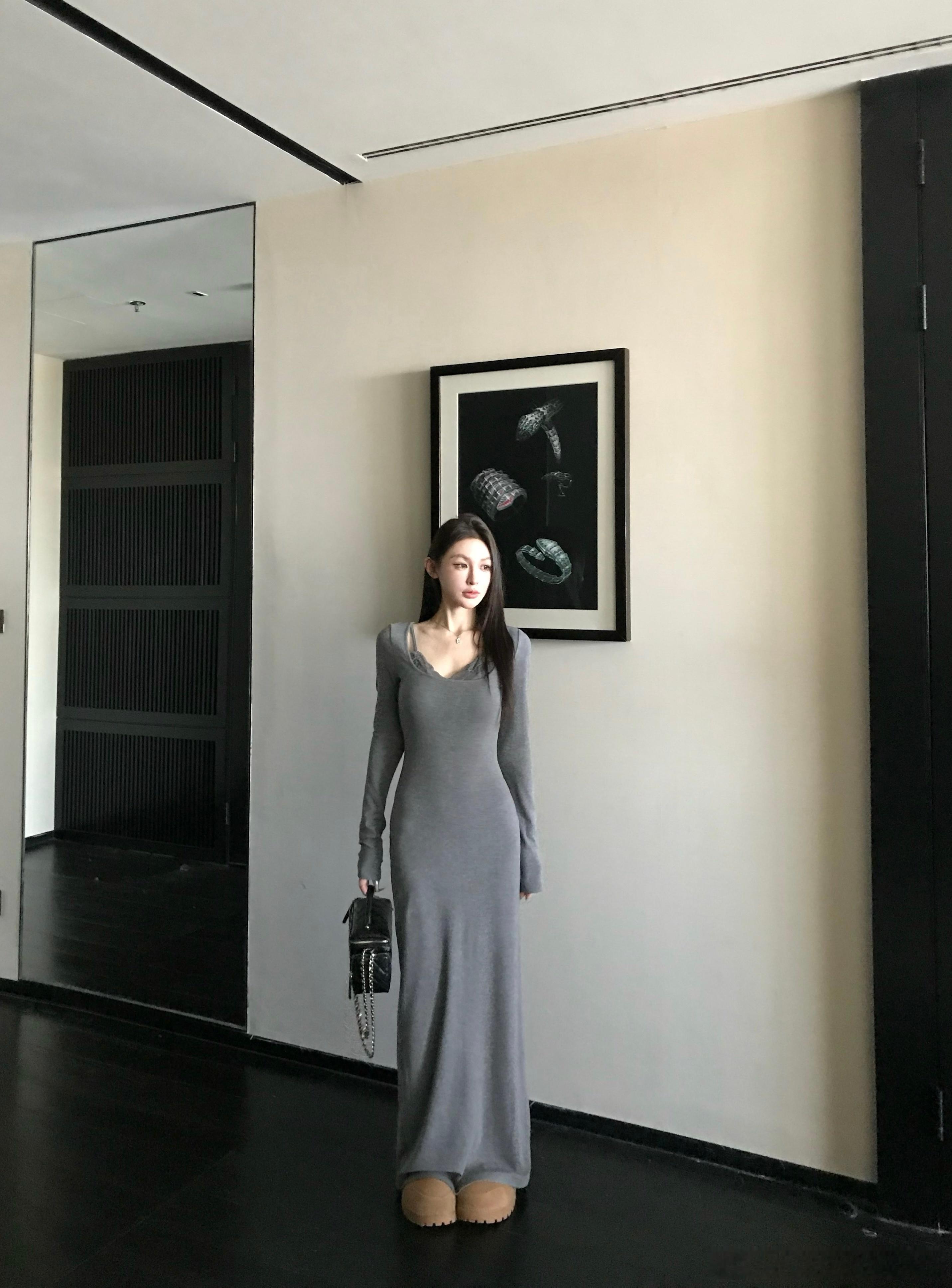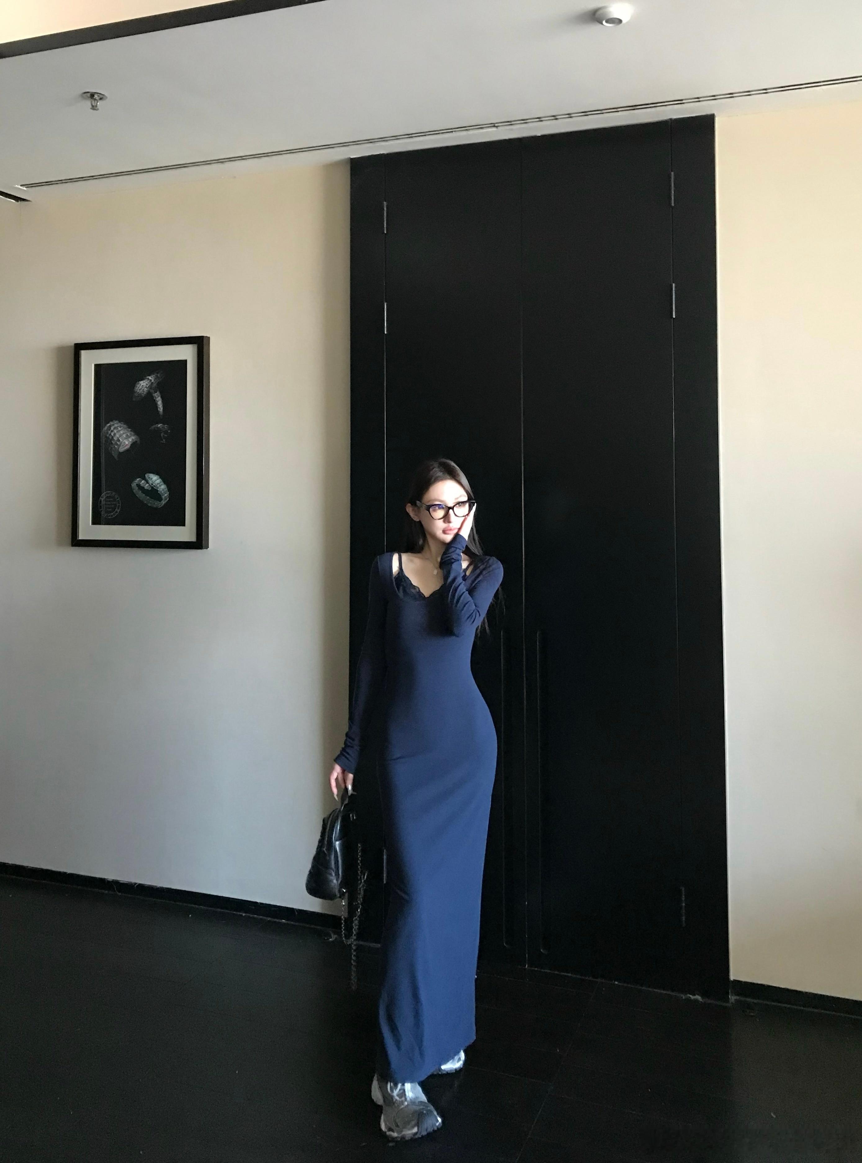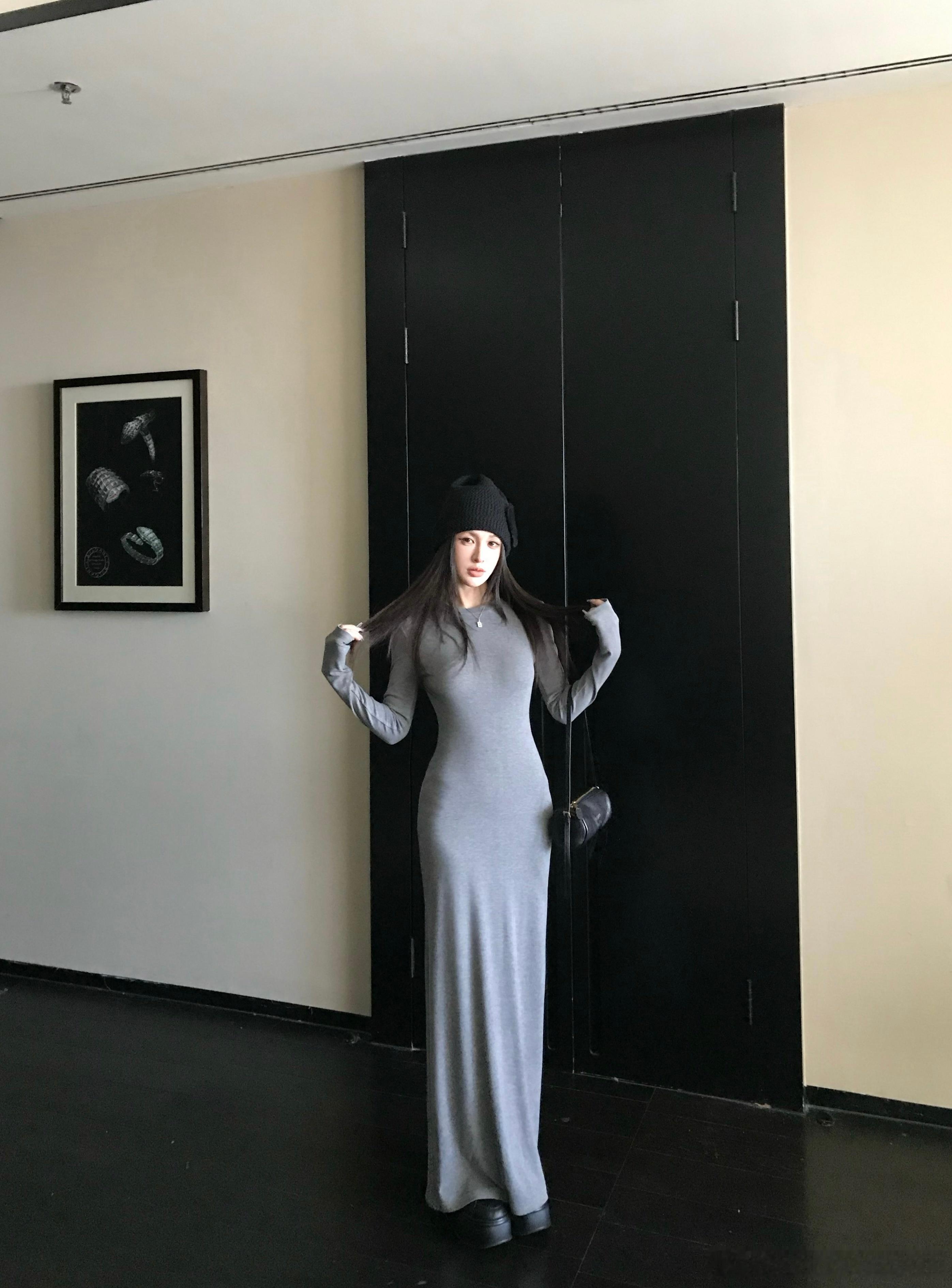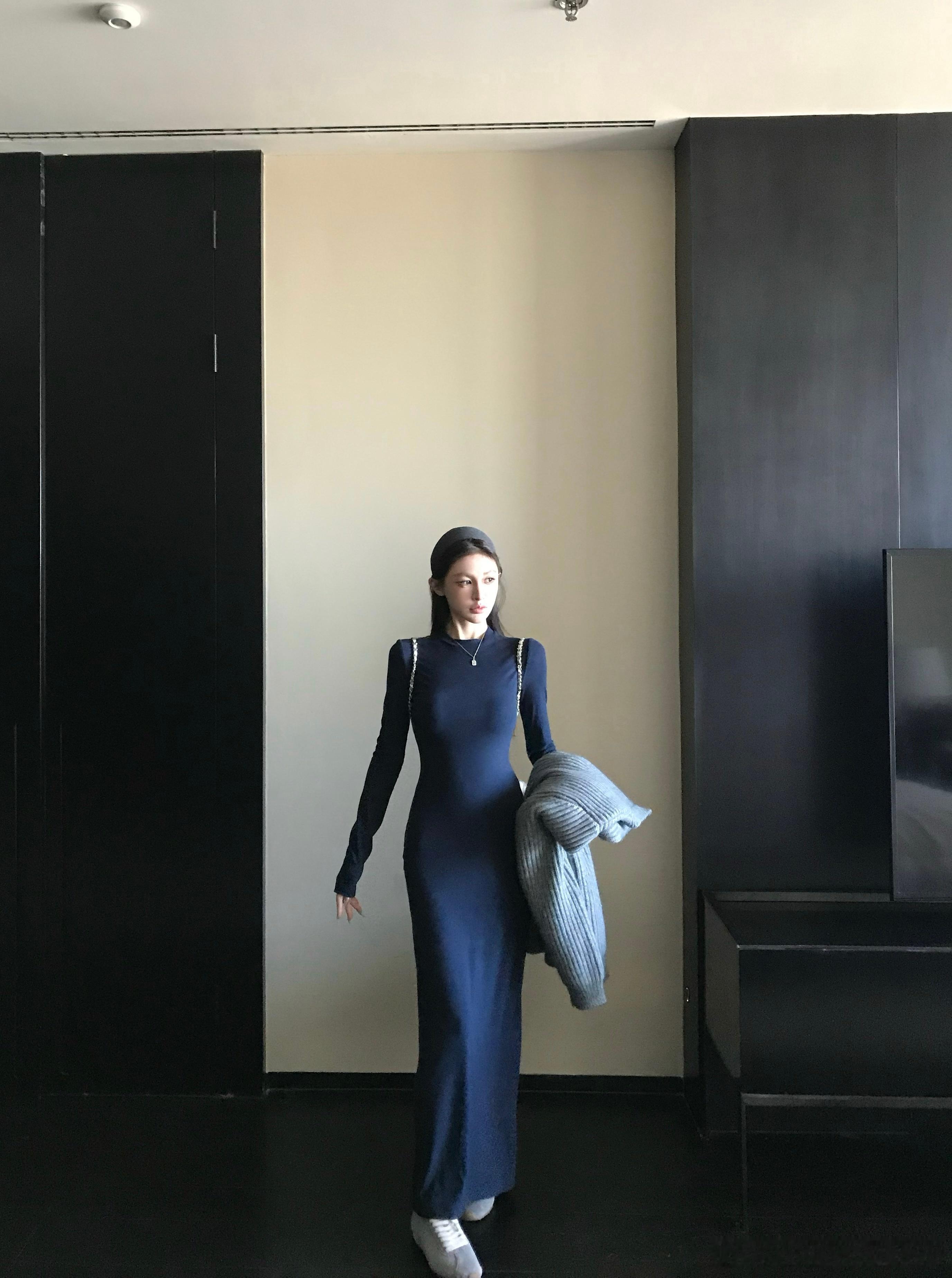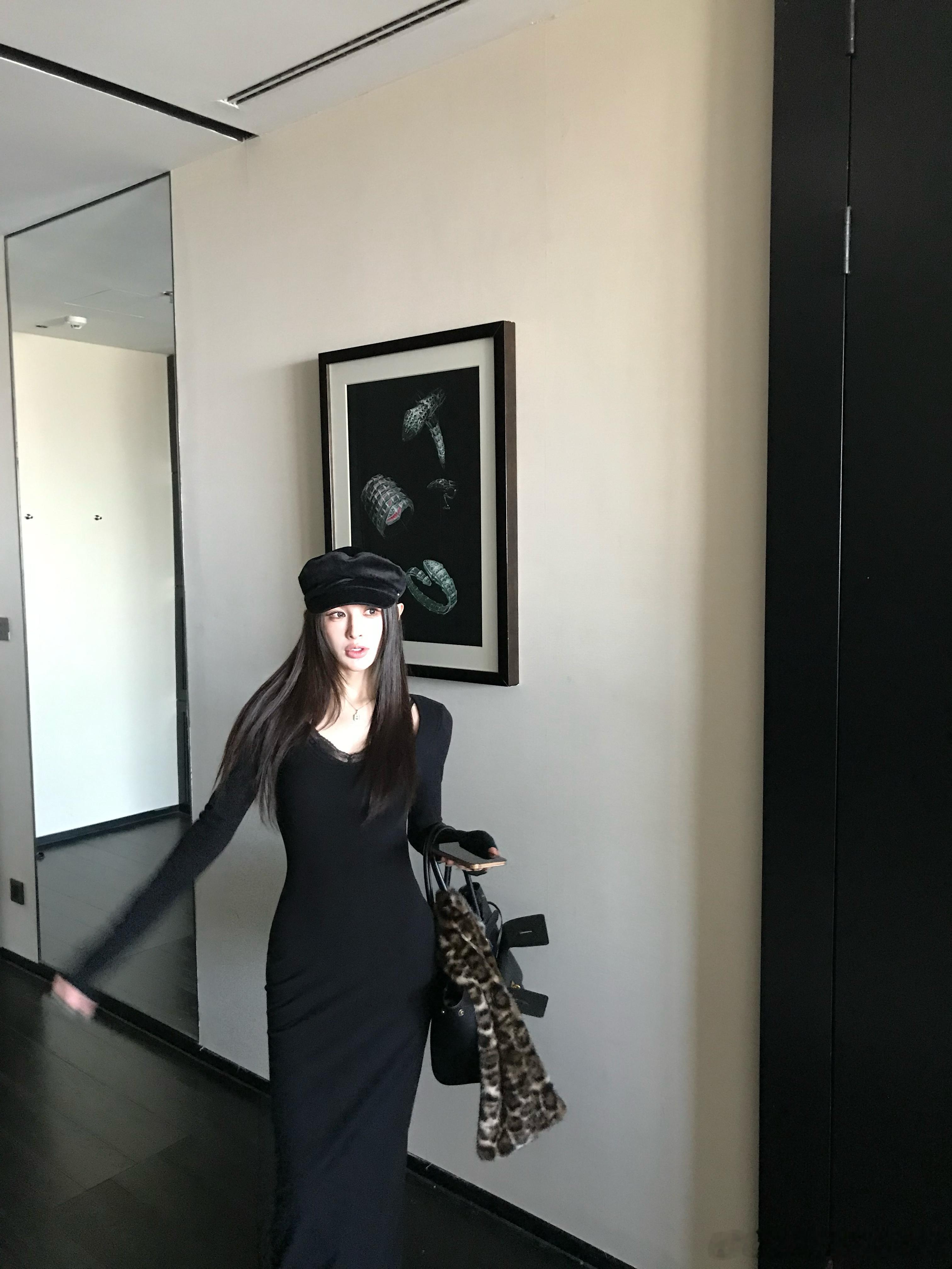 这条基础长裙真的美得很有氛围感 可纯欲可姐系 修身版型超显身材