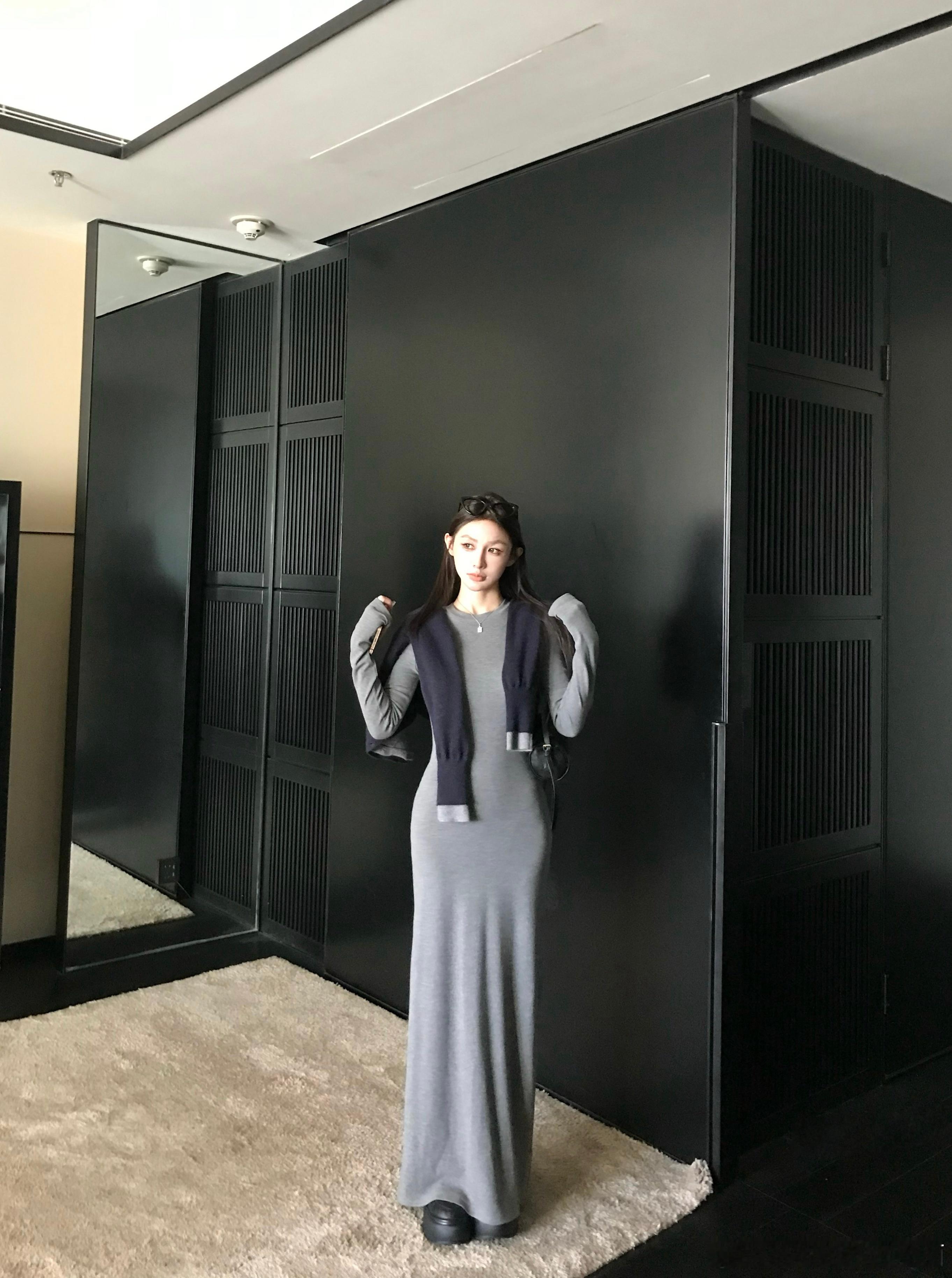 恰到好处的裙长很有垂感 日常慵懒有着低调的魅力感 来当作秋冬内搭再合适不过了
