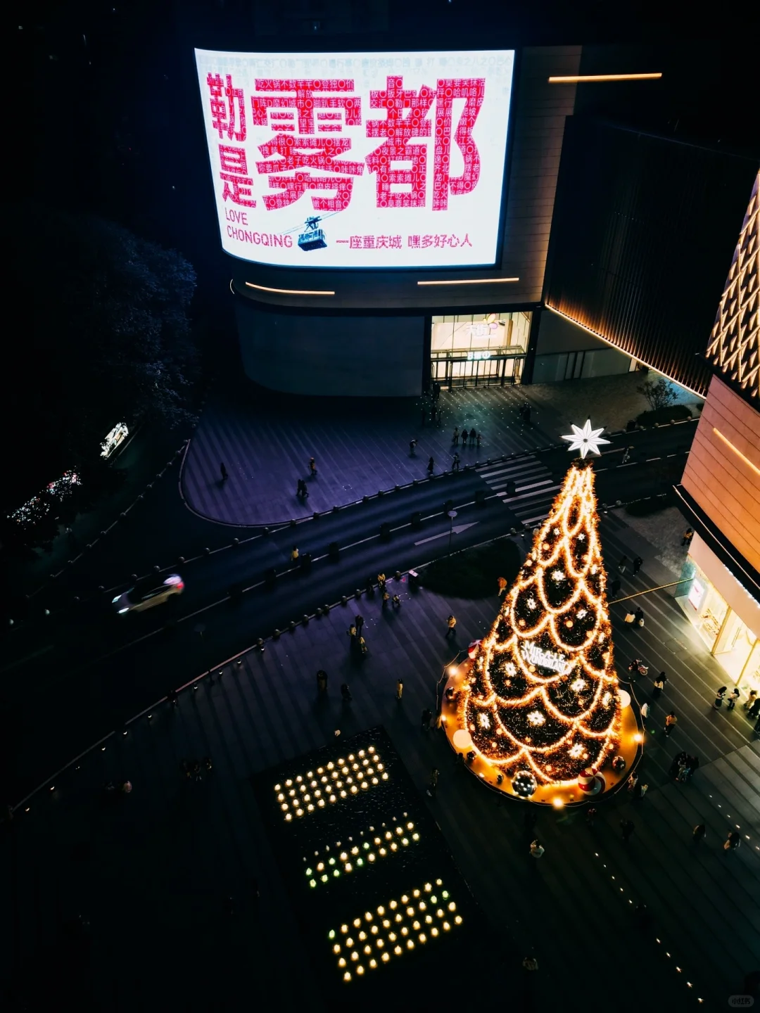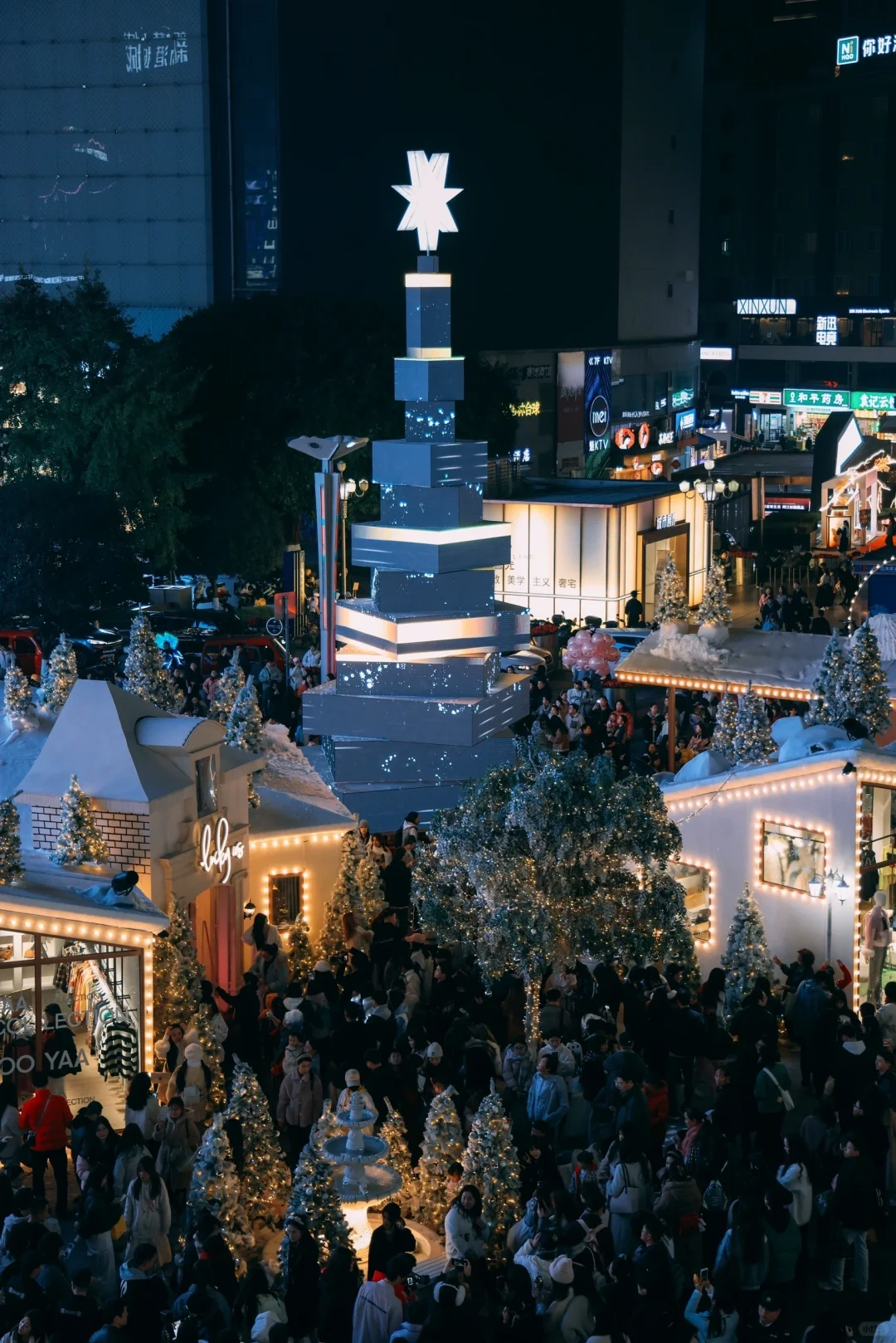 这里的圣诞树晚上开灯后超美