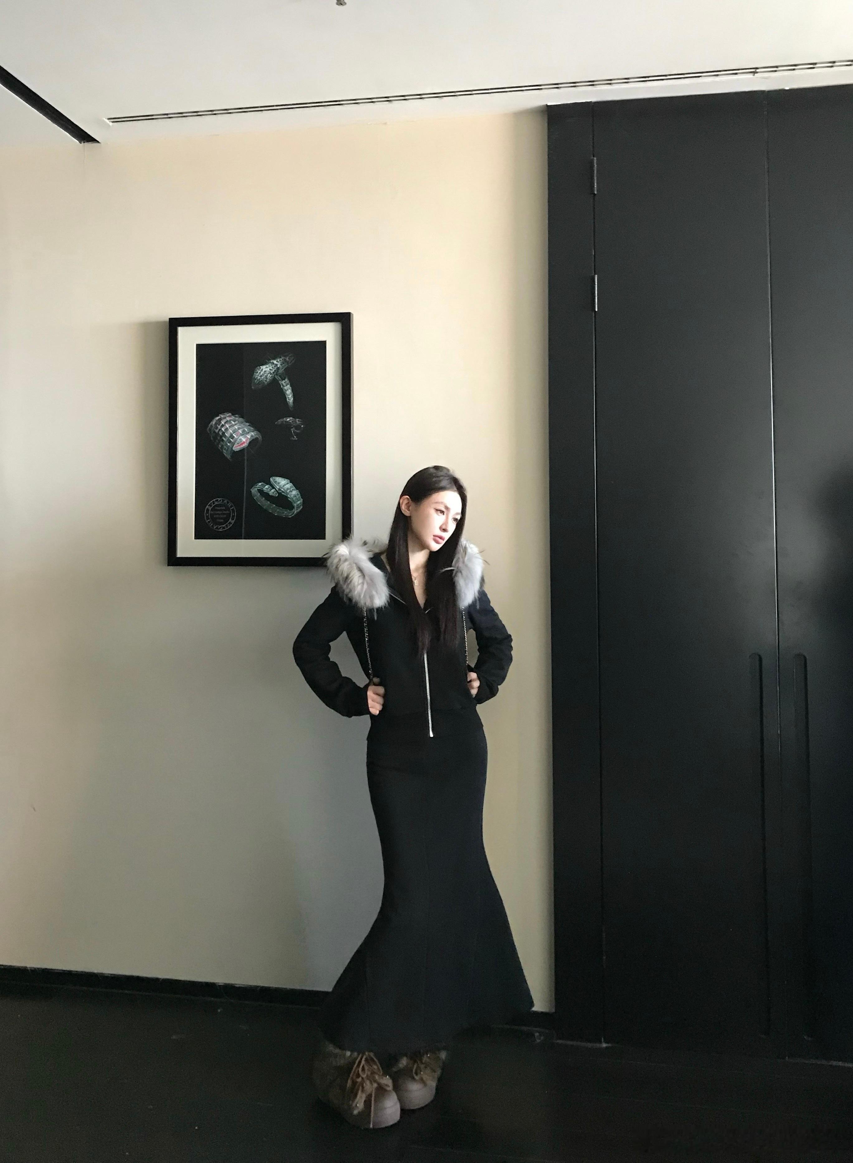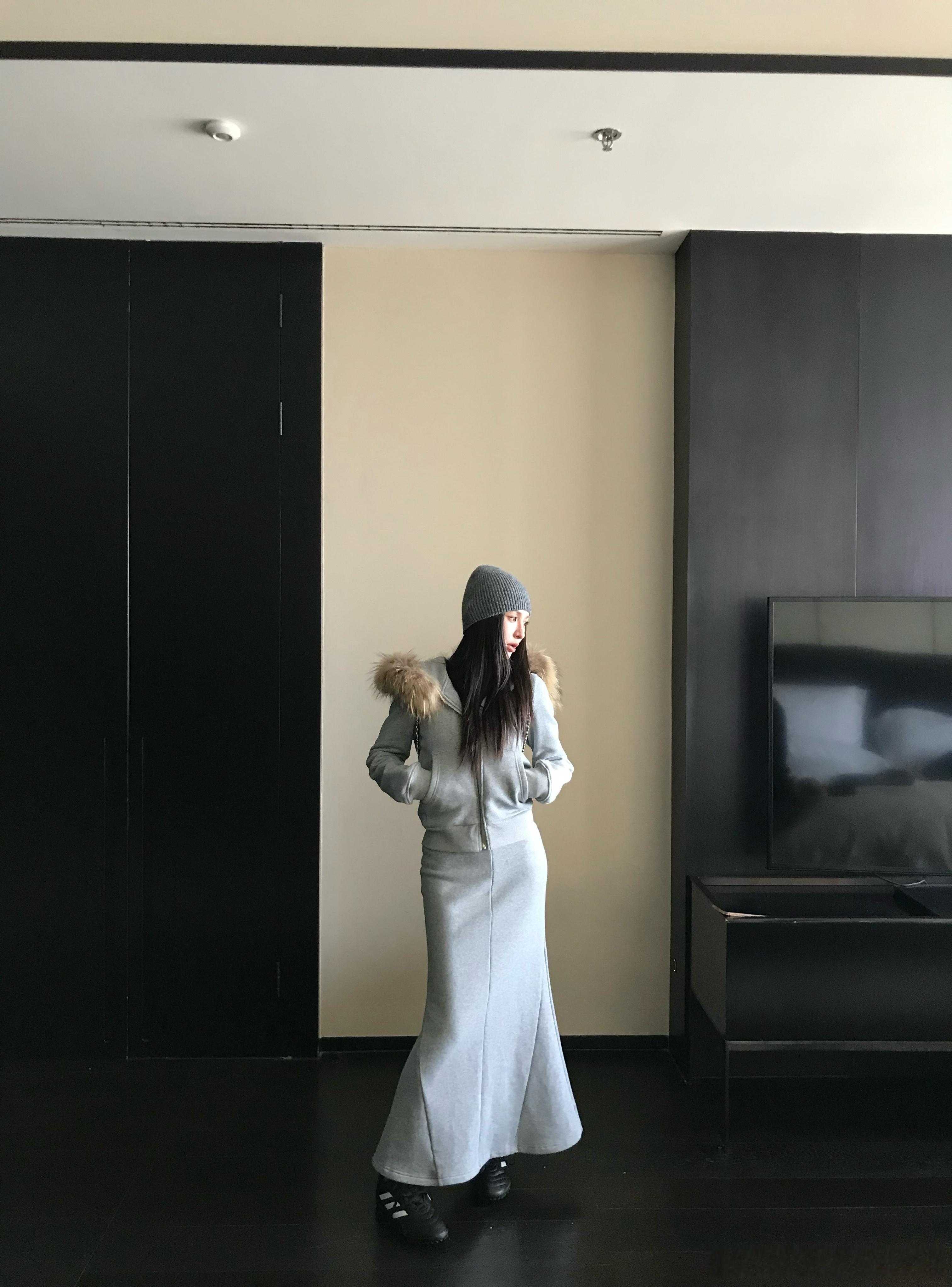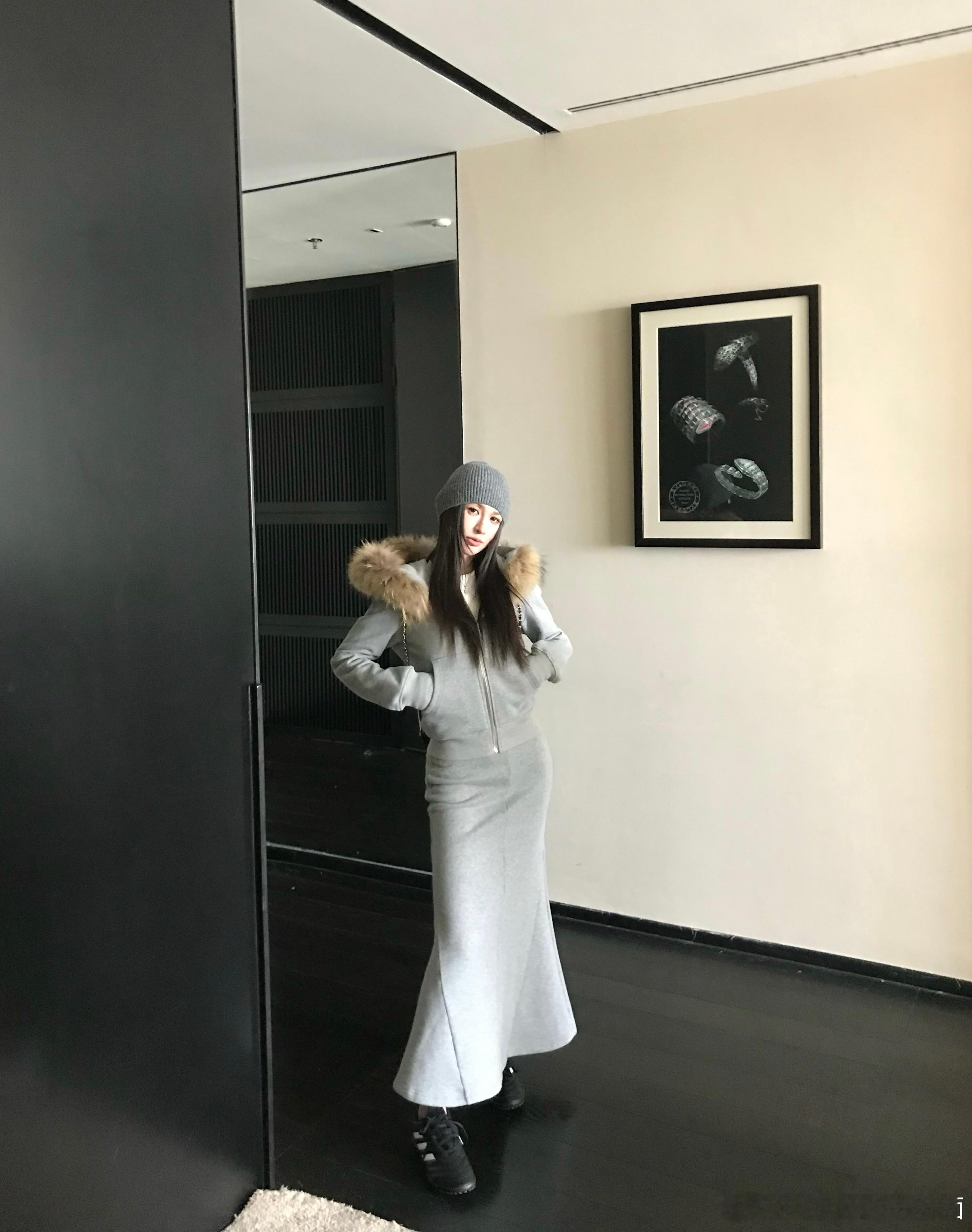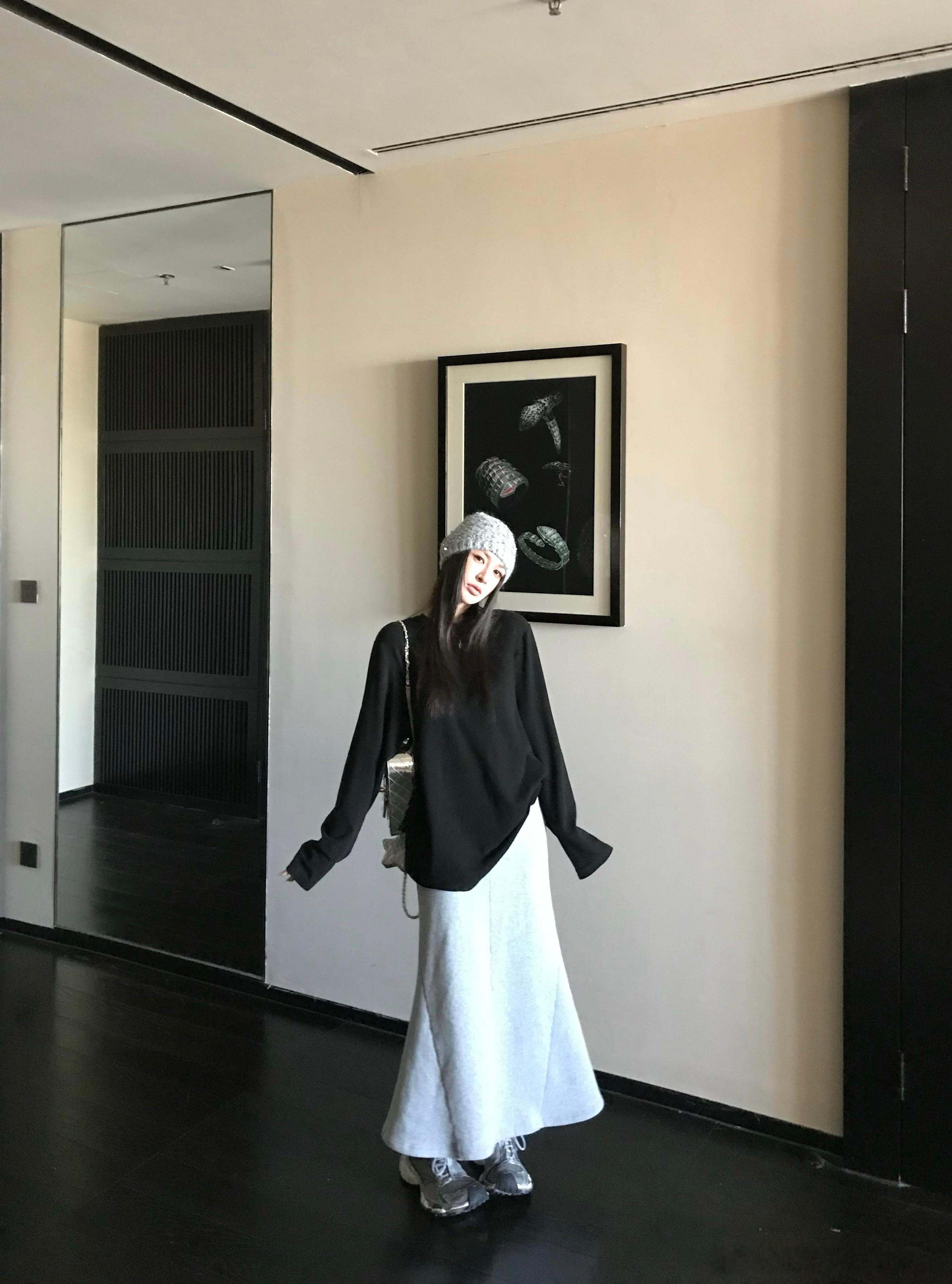 搭配超级显瘦的半身裙 整体就是很休闲的look 不用费心搭配 日常出街随意一套就ok