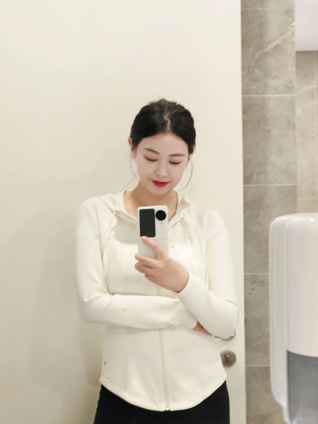 背奶老母亲回归职场啦! 身高:172 体重:65kg 时隔半年还有20斤在身上没瘦下去,但还是想精神抖擞的重拾牛马🐴状态 今天的班味儿是运动风给的! 公司母婴室真好,消过柜冰箱奶瓶专用洗涤剂一应俱全,还想给公司打工100年!