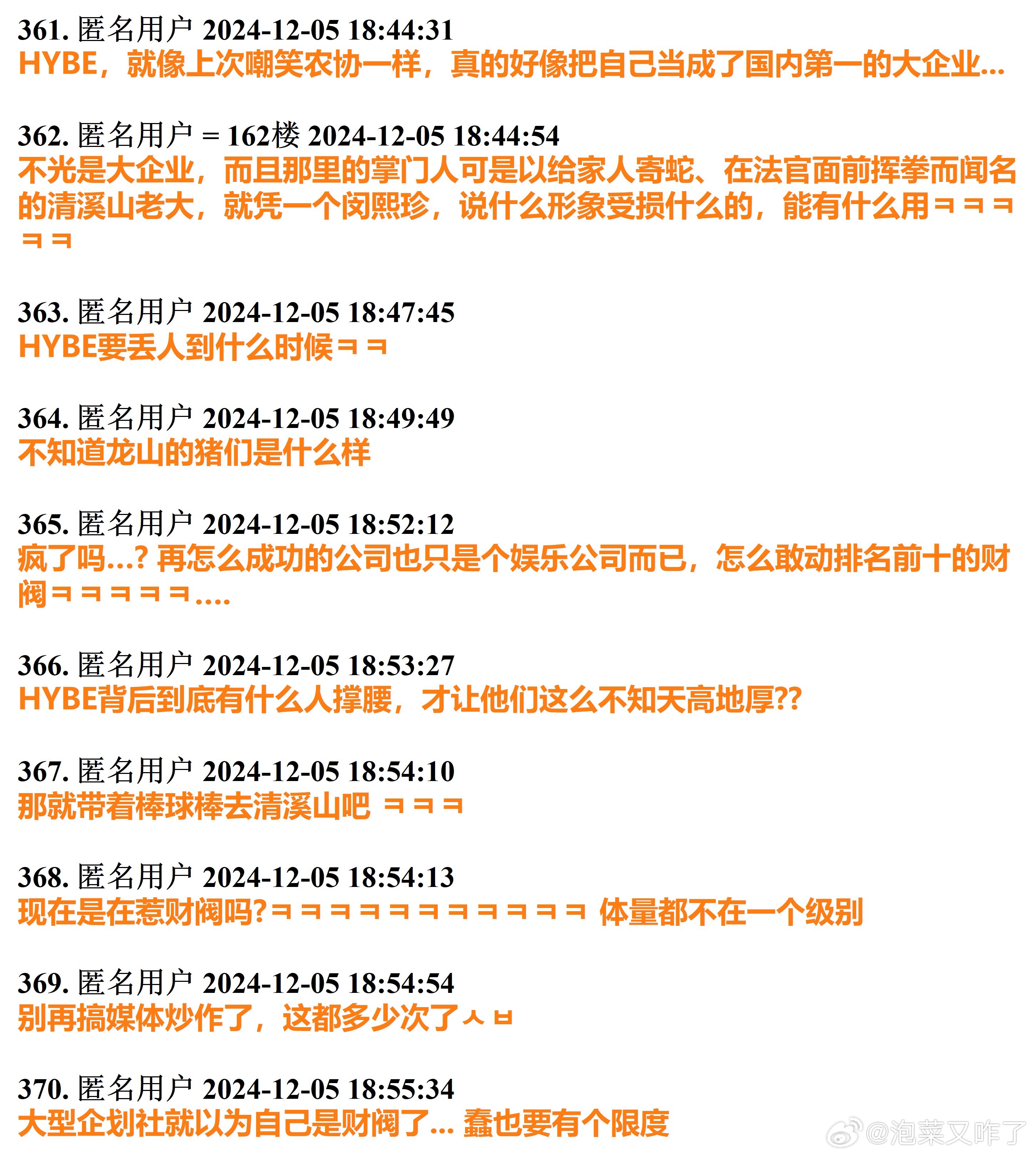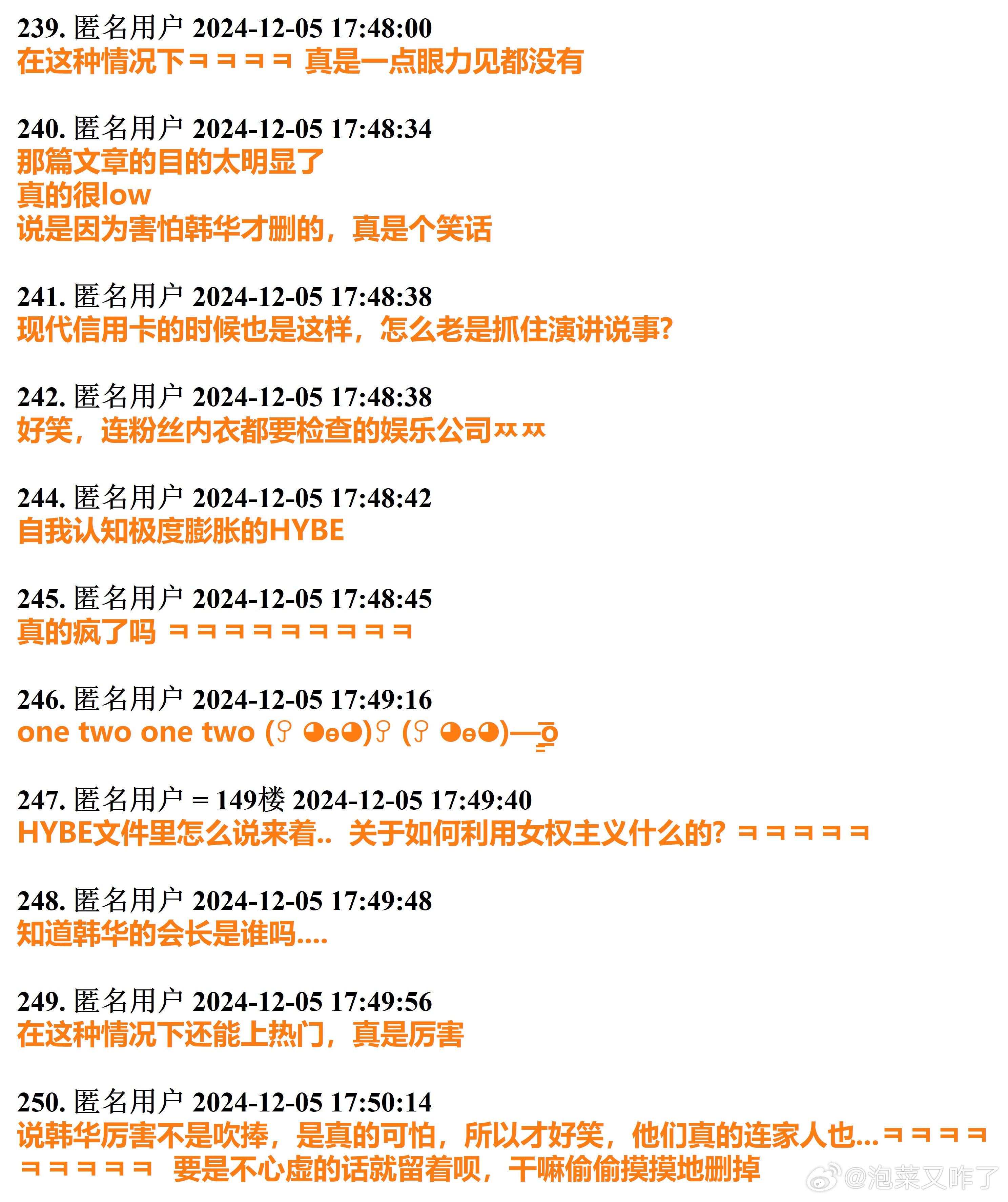 有人说”HYBE疯了吗,竟然敢动韩华“后1小时就被删除了